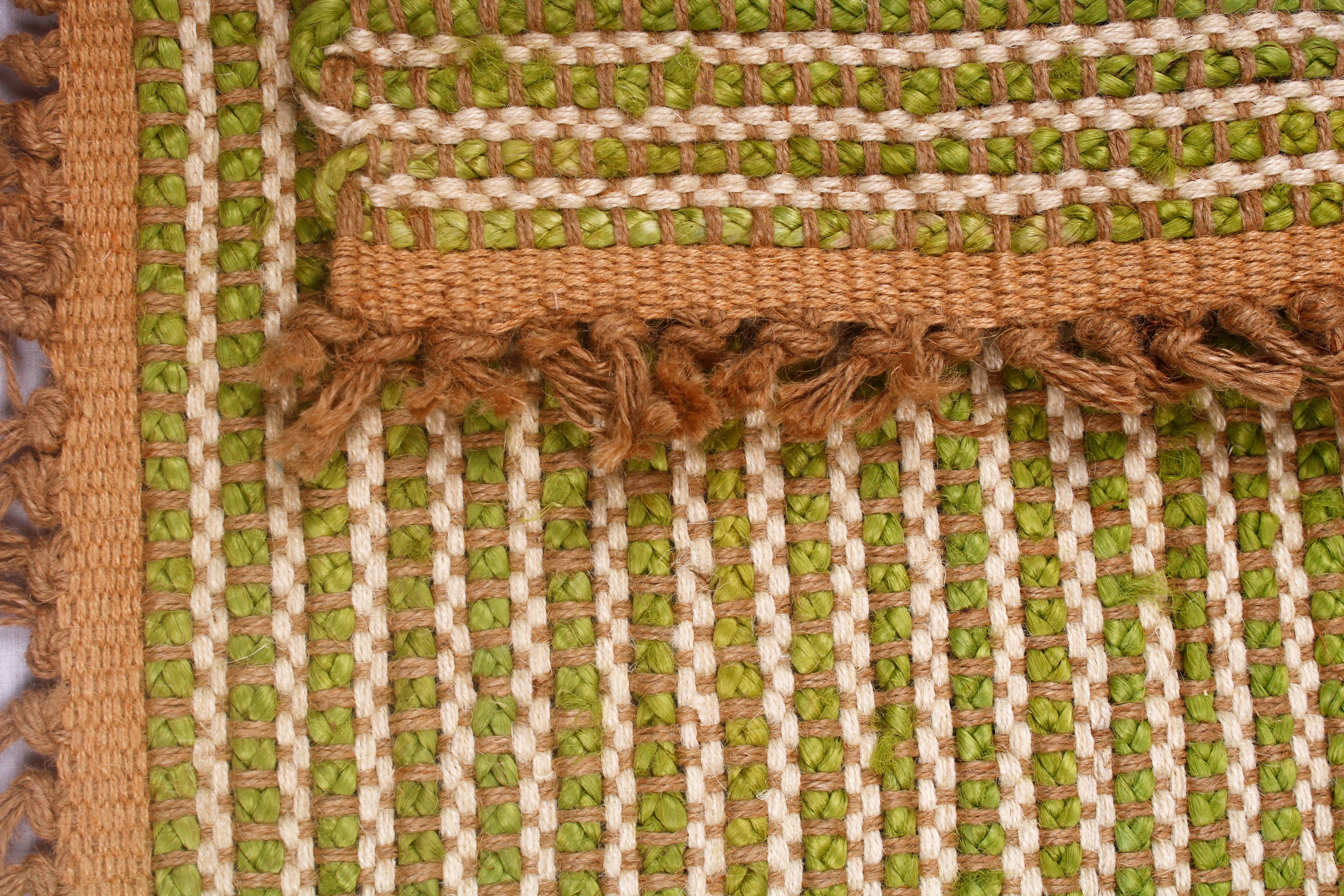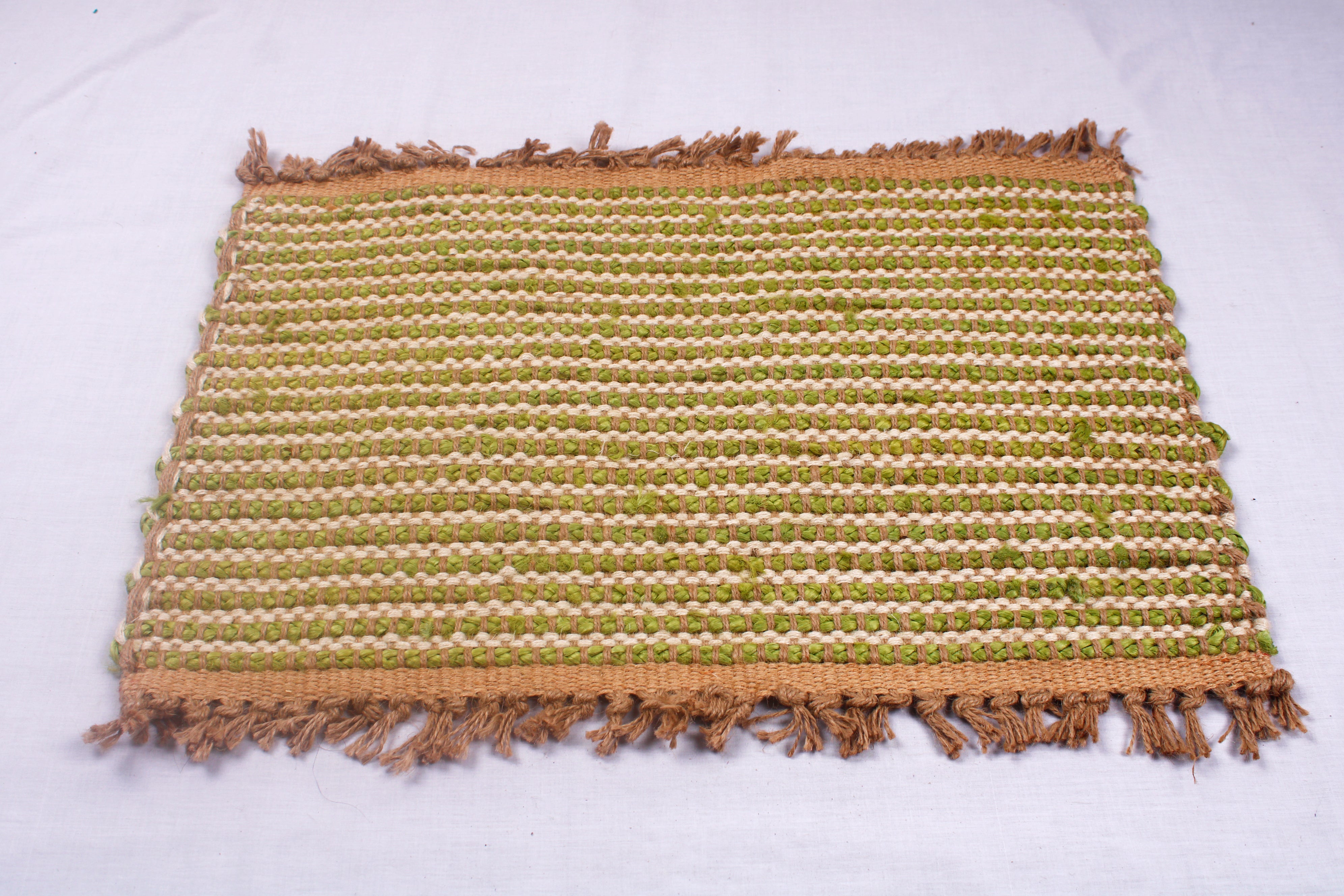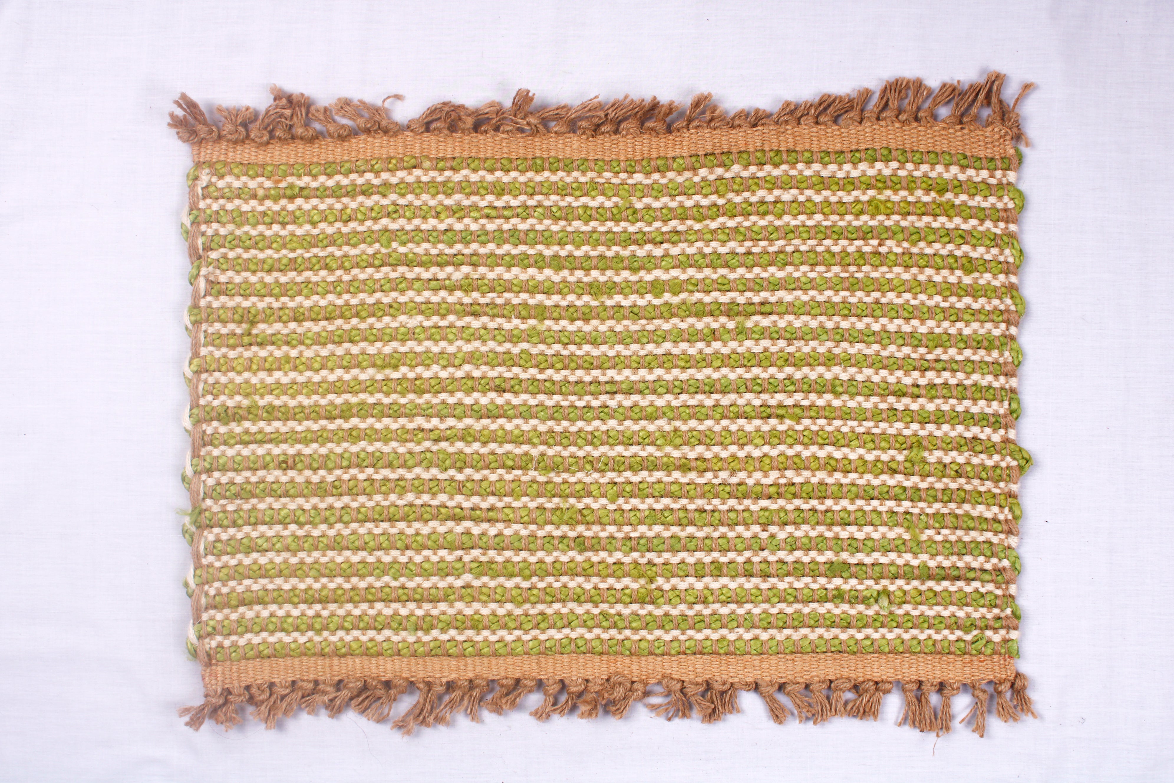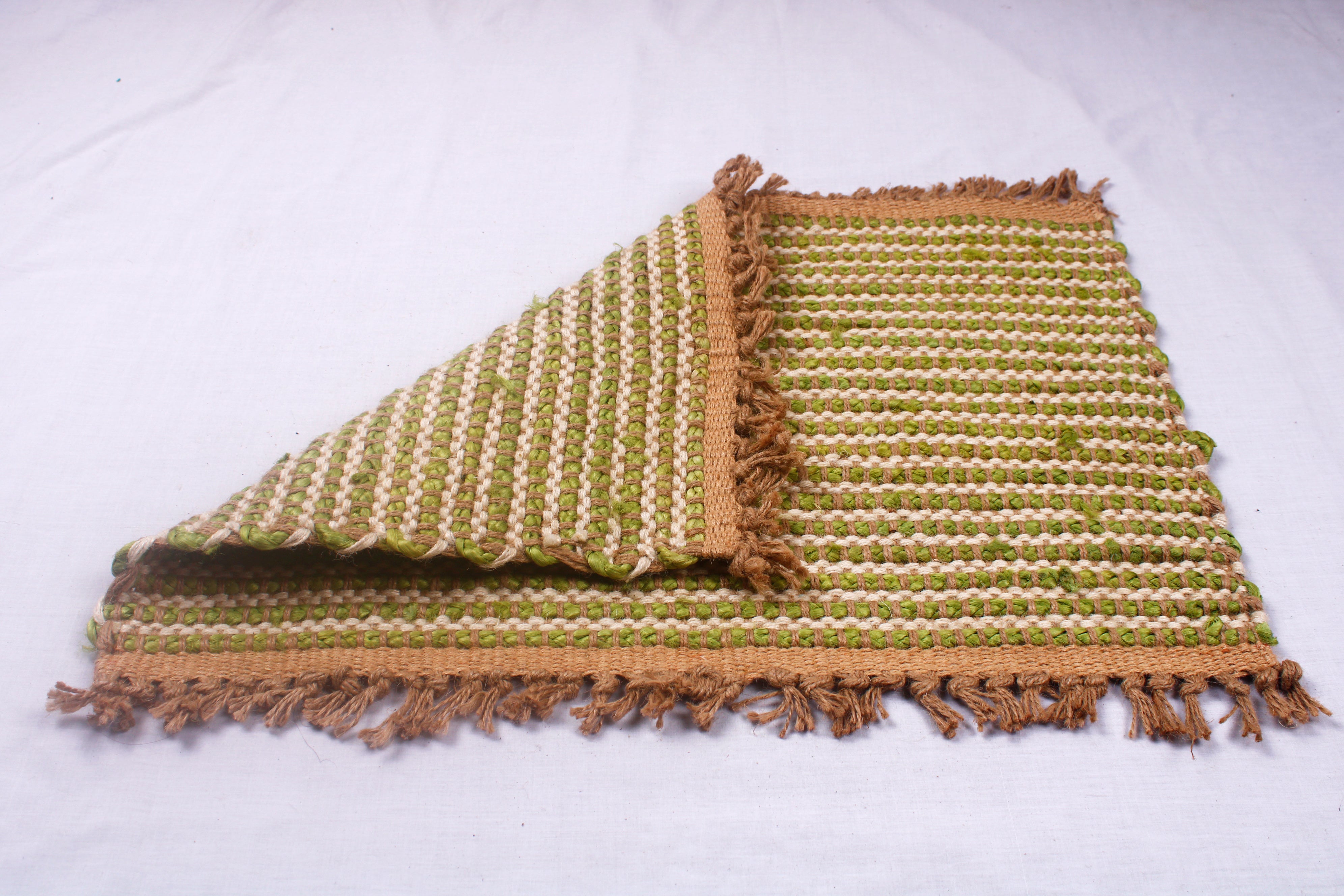 Off White and Green Jute Door Mat