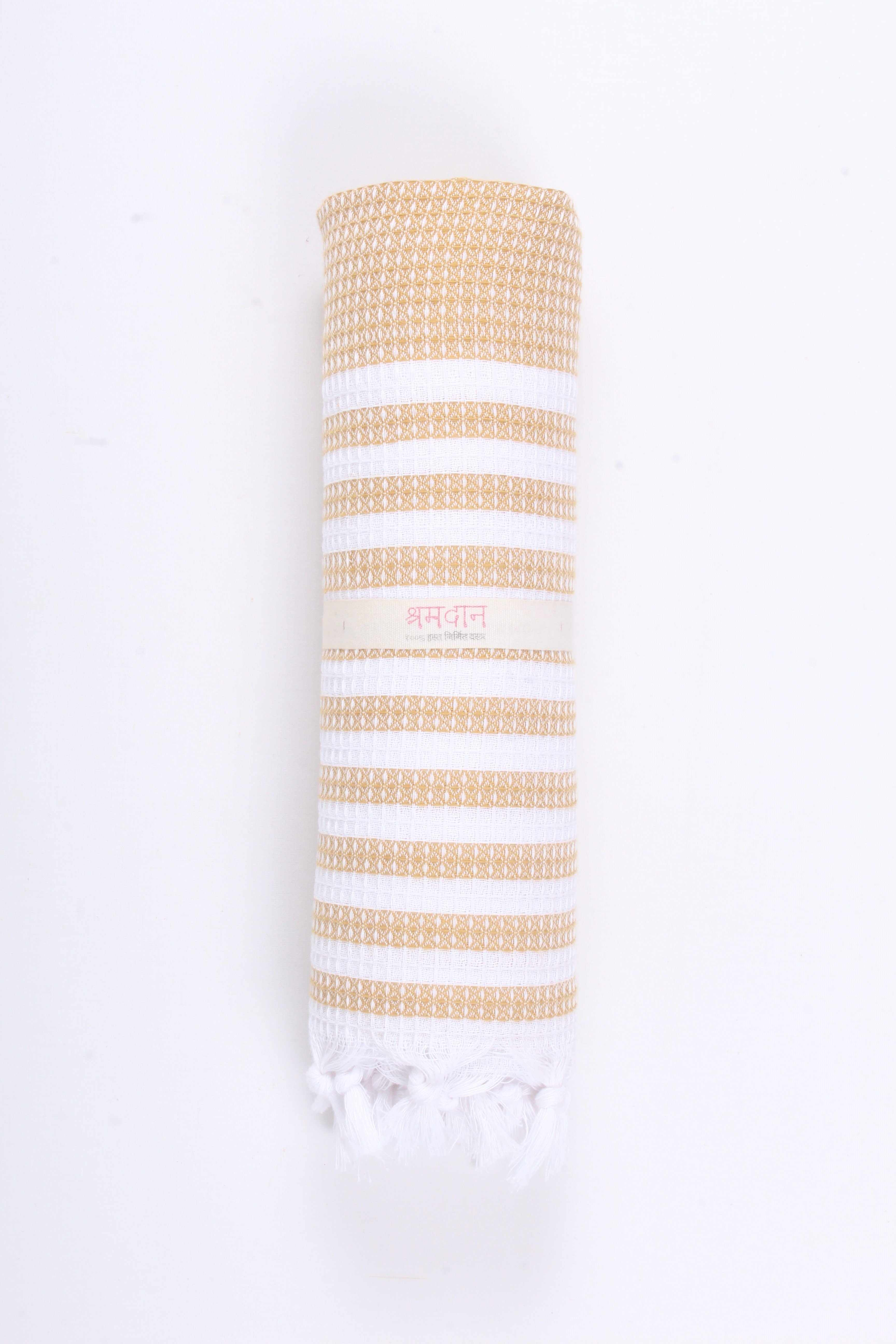 Mustard Yellow Ultra Soft Bath Towel with White Stripes