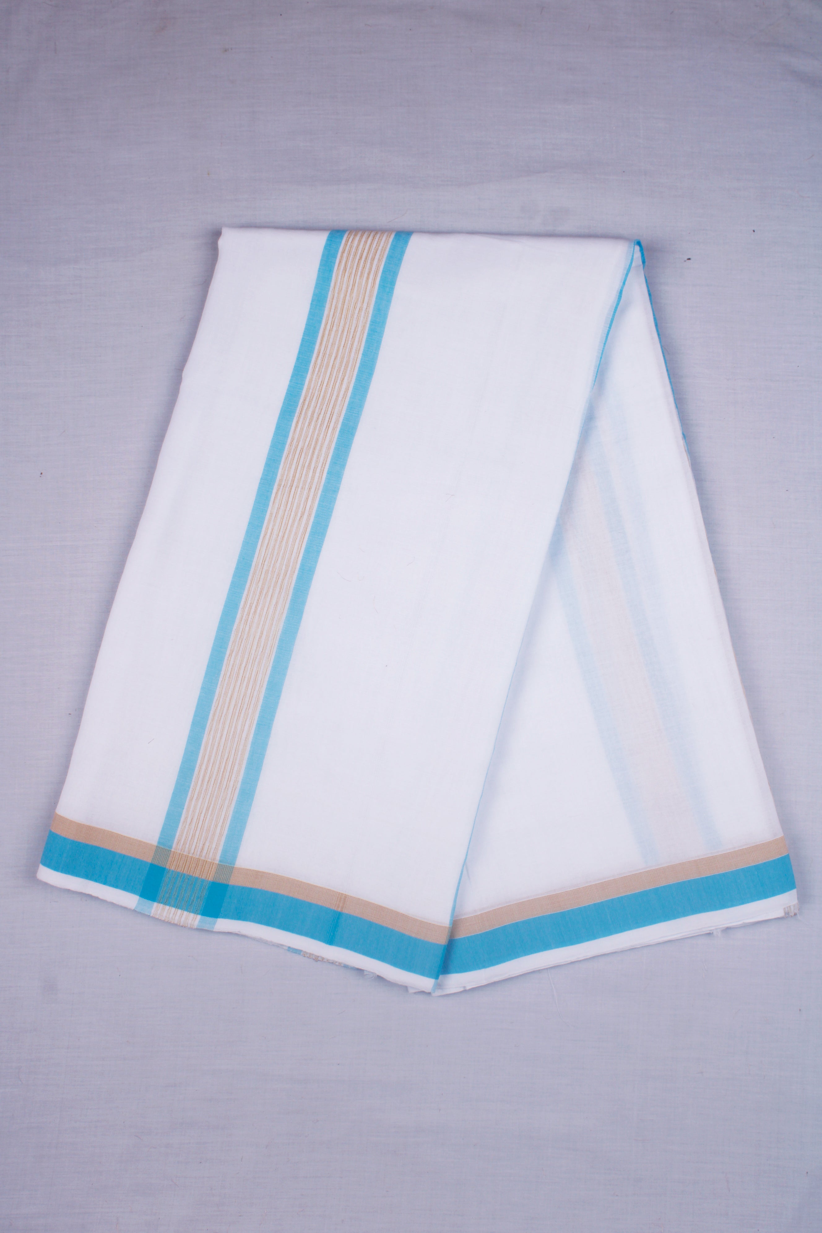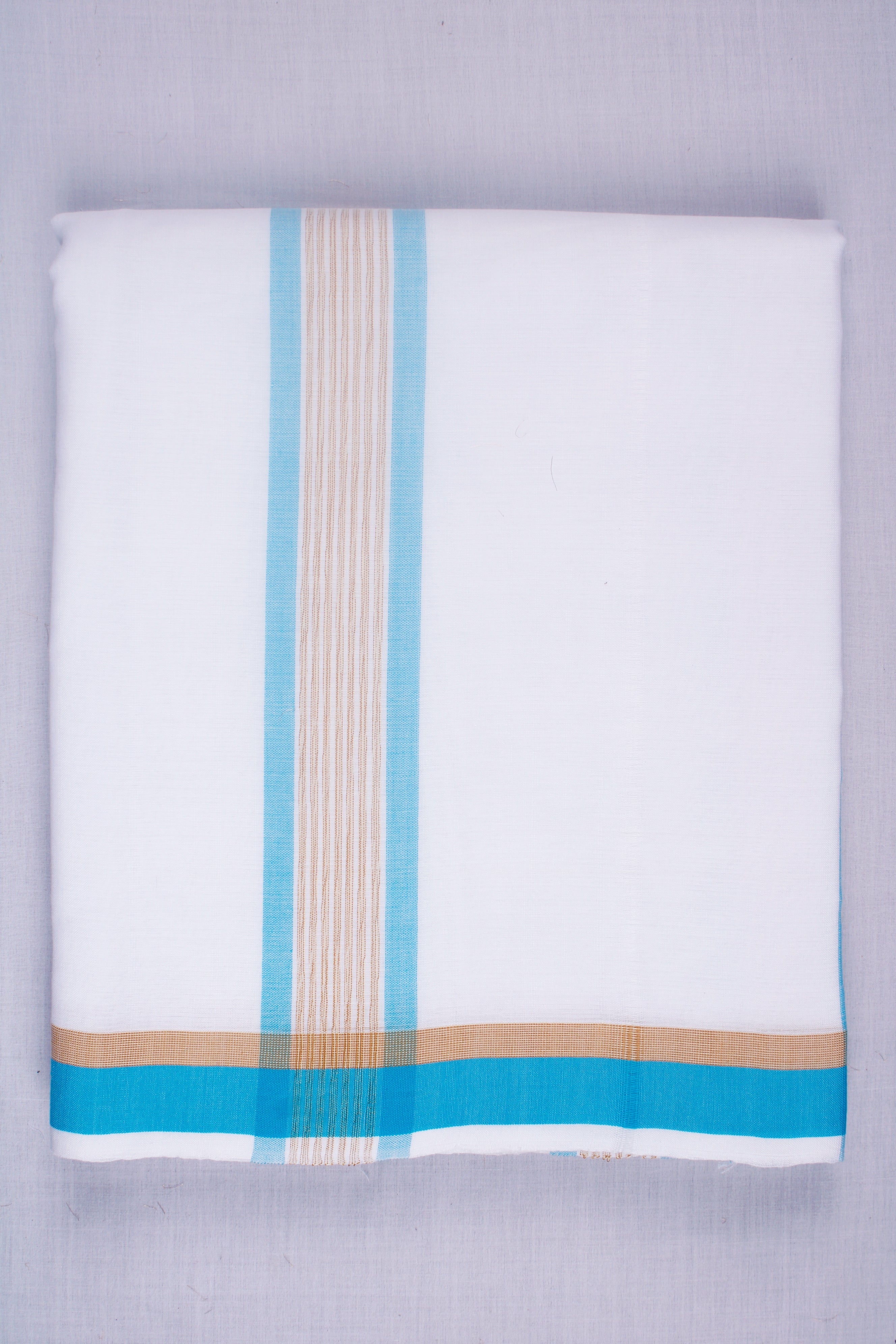 White Kids Dhoti Dupatta with Brown and Blue Border