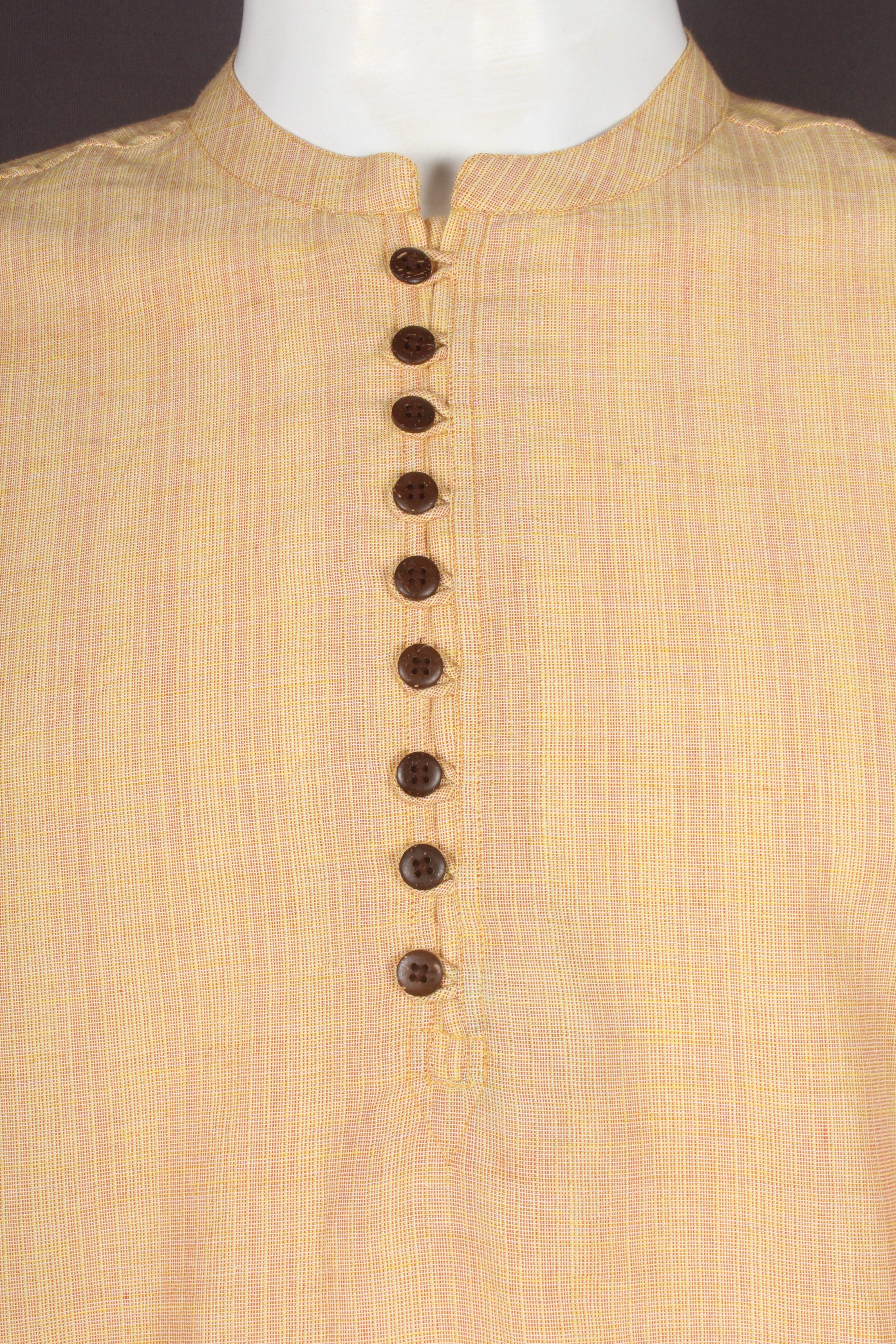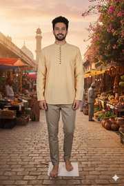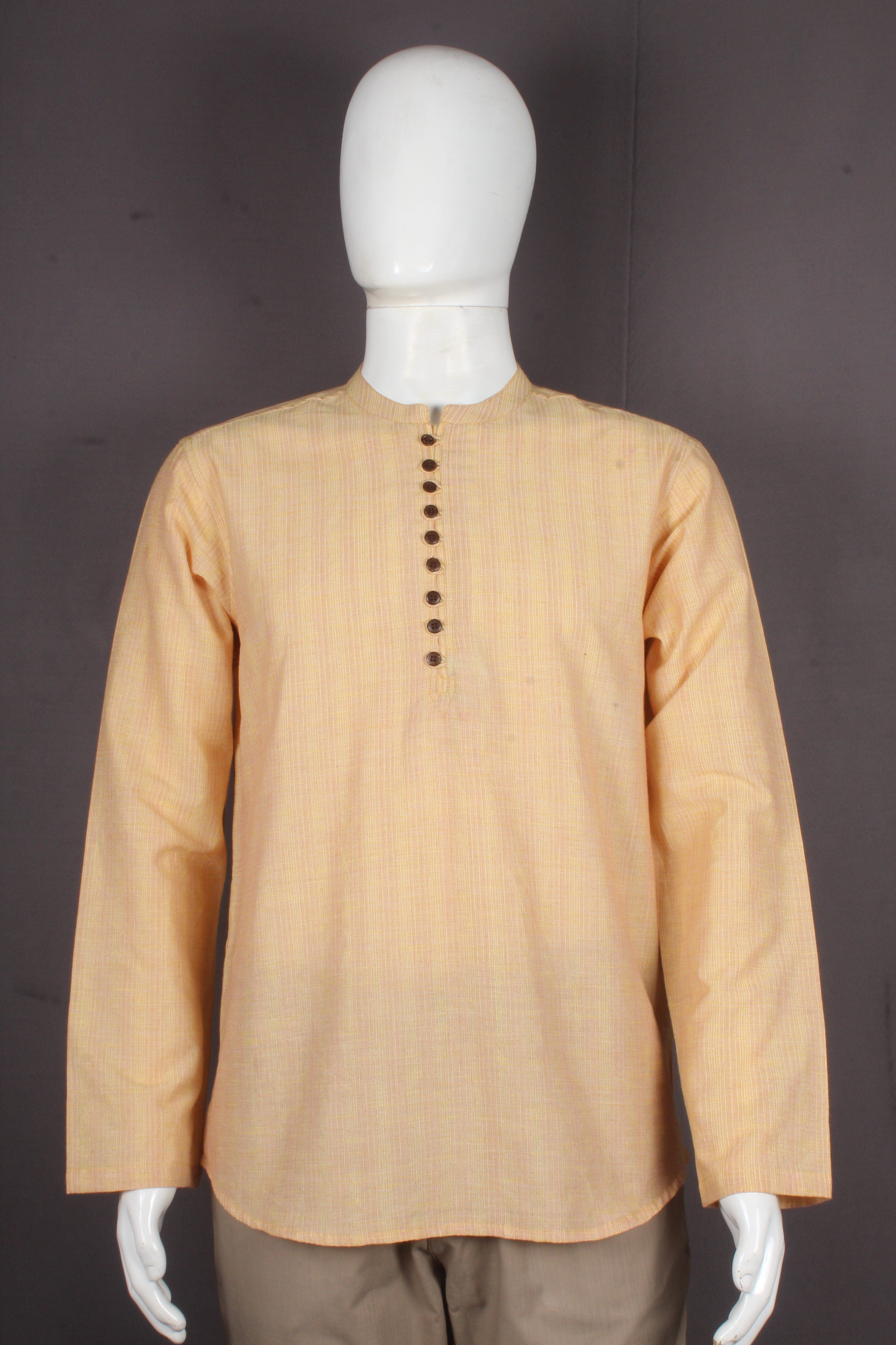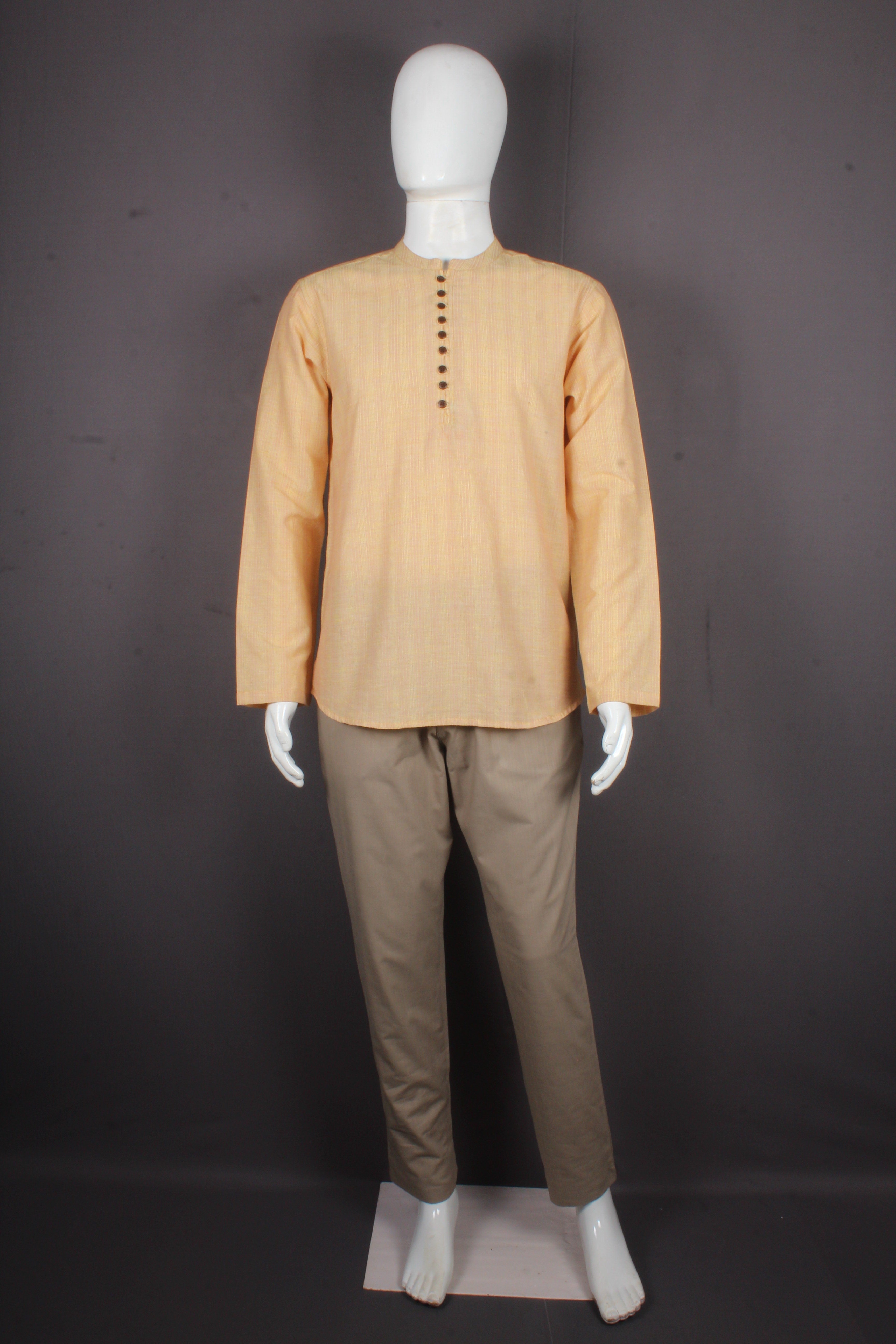 Beautiful Yellow Self Striped Full Sleeves Short Kurta.