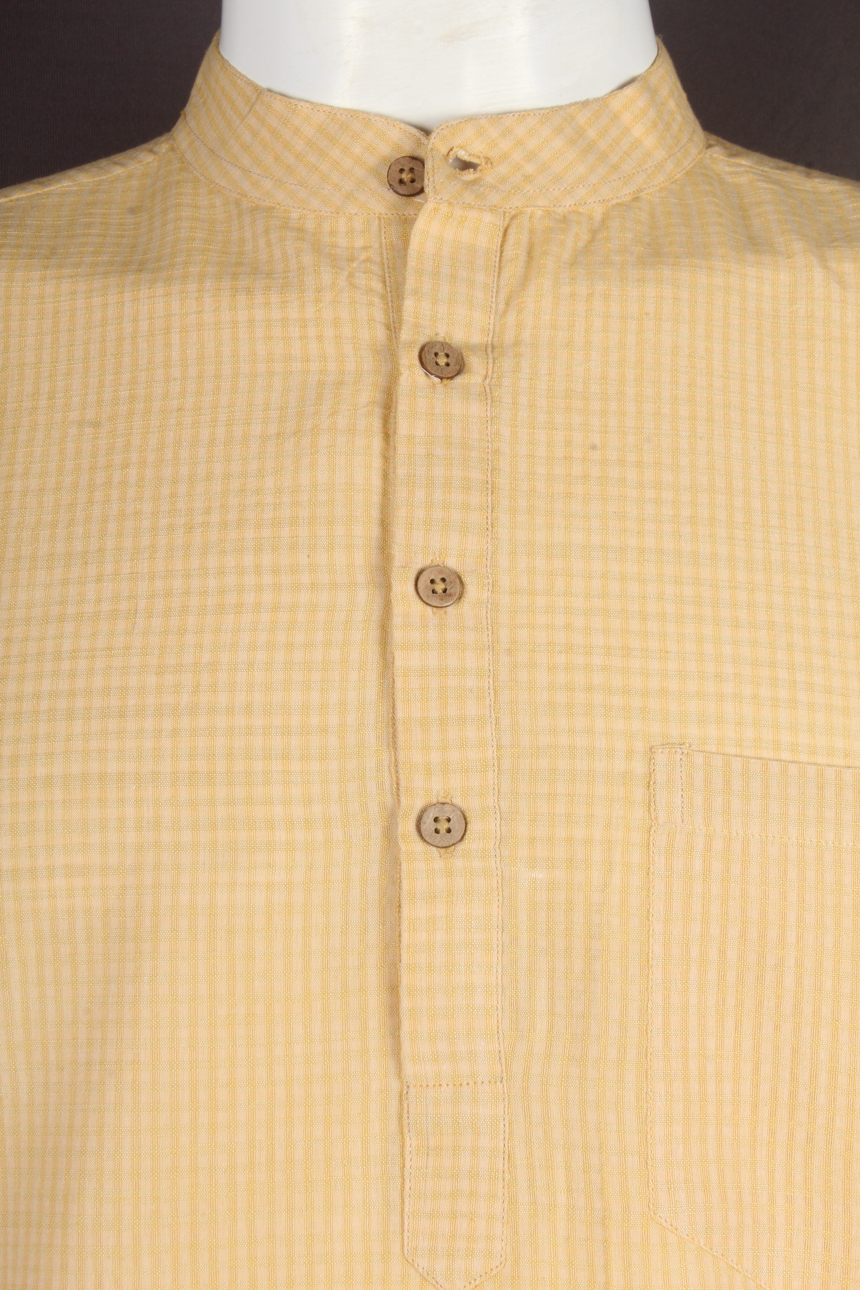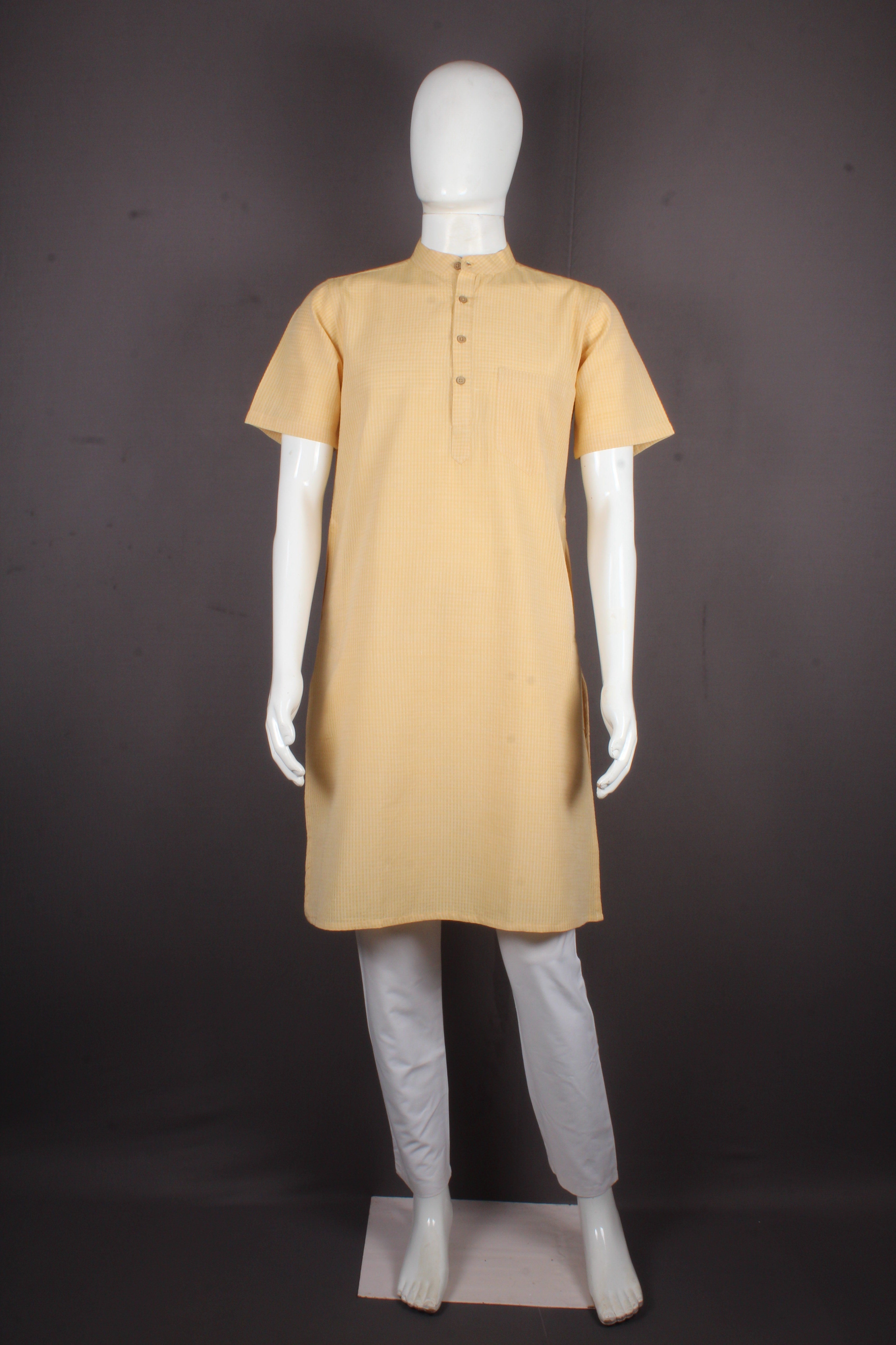 French Yellow Self Striped Half Sleeves Long Kurta.