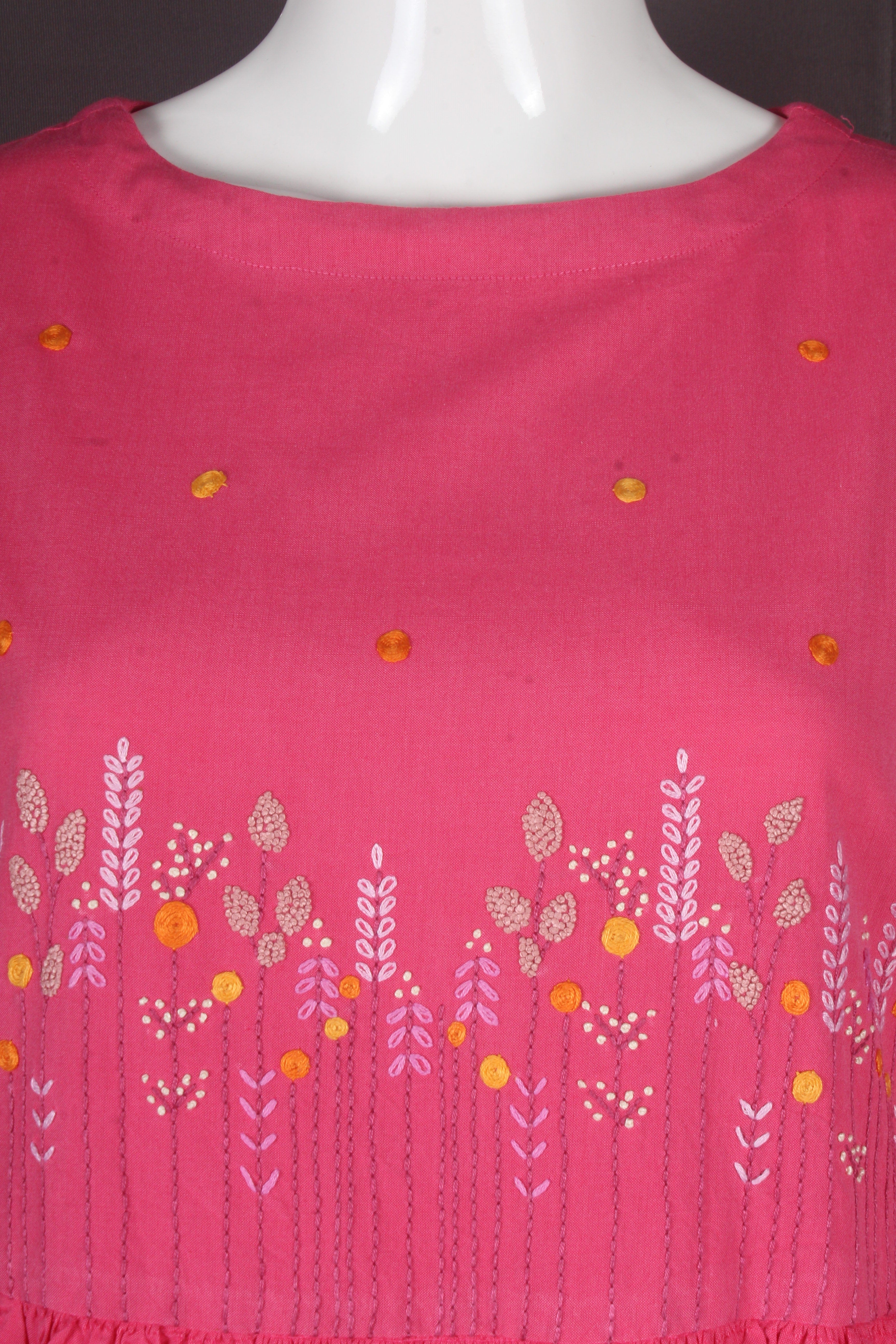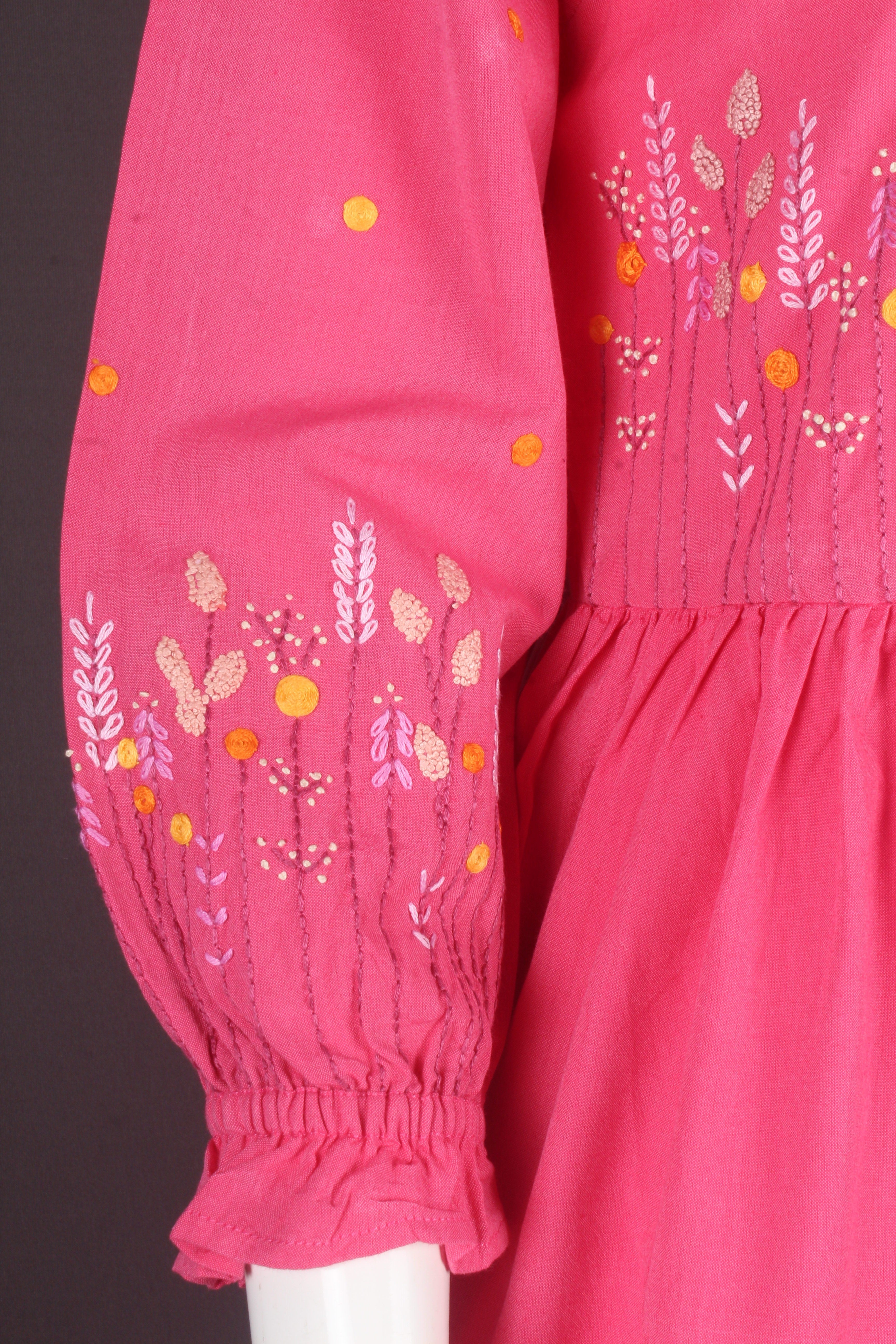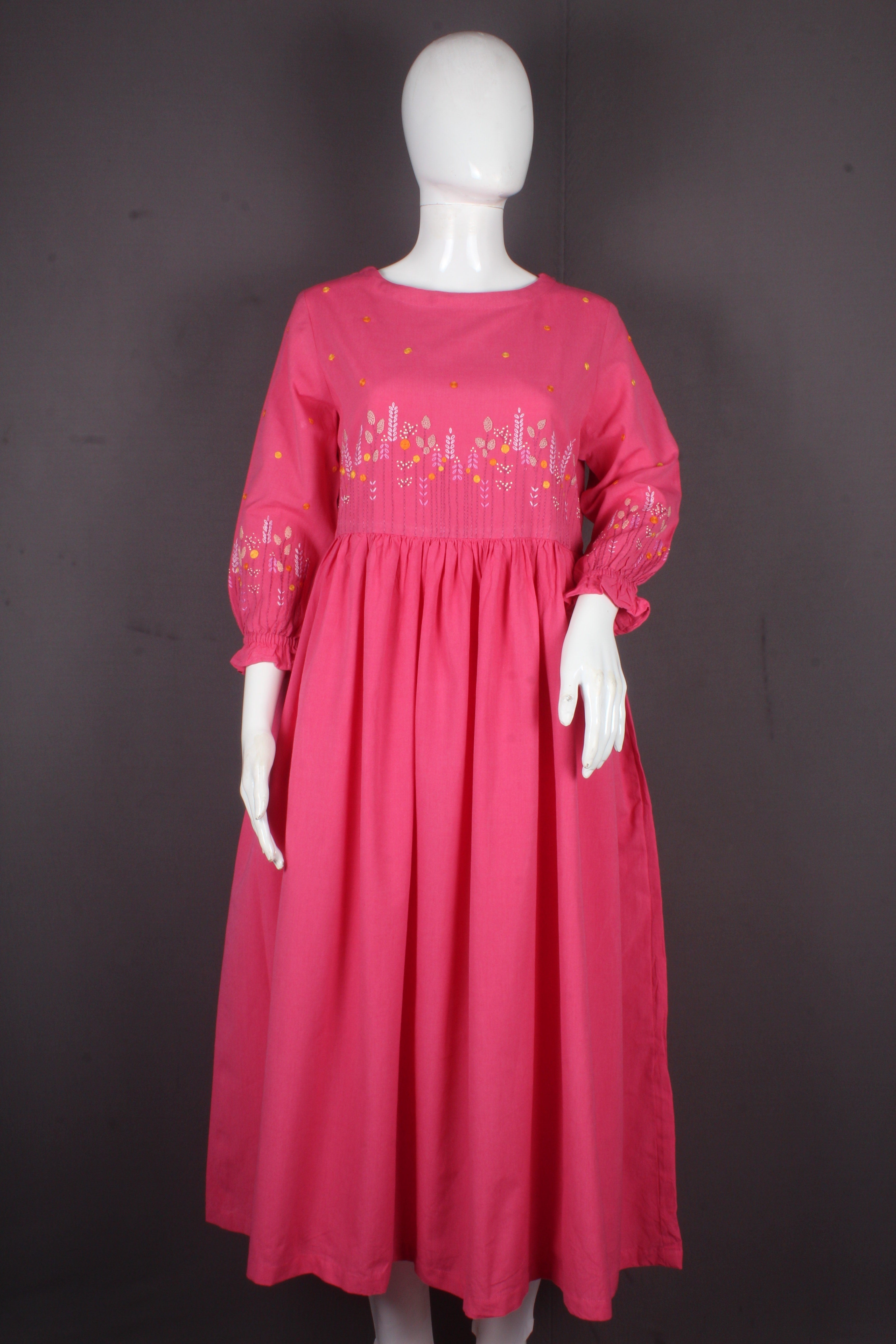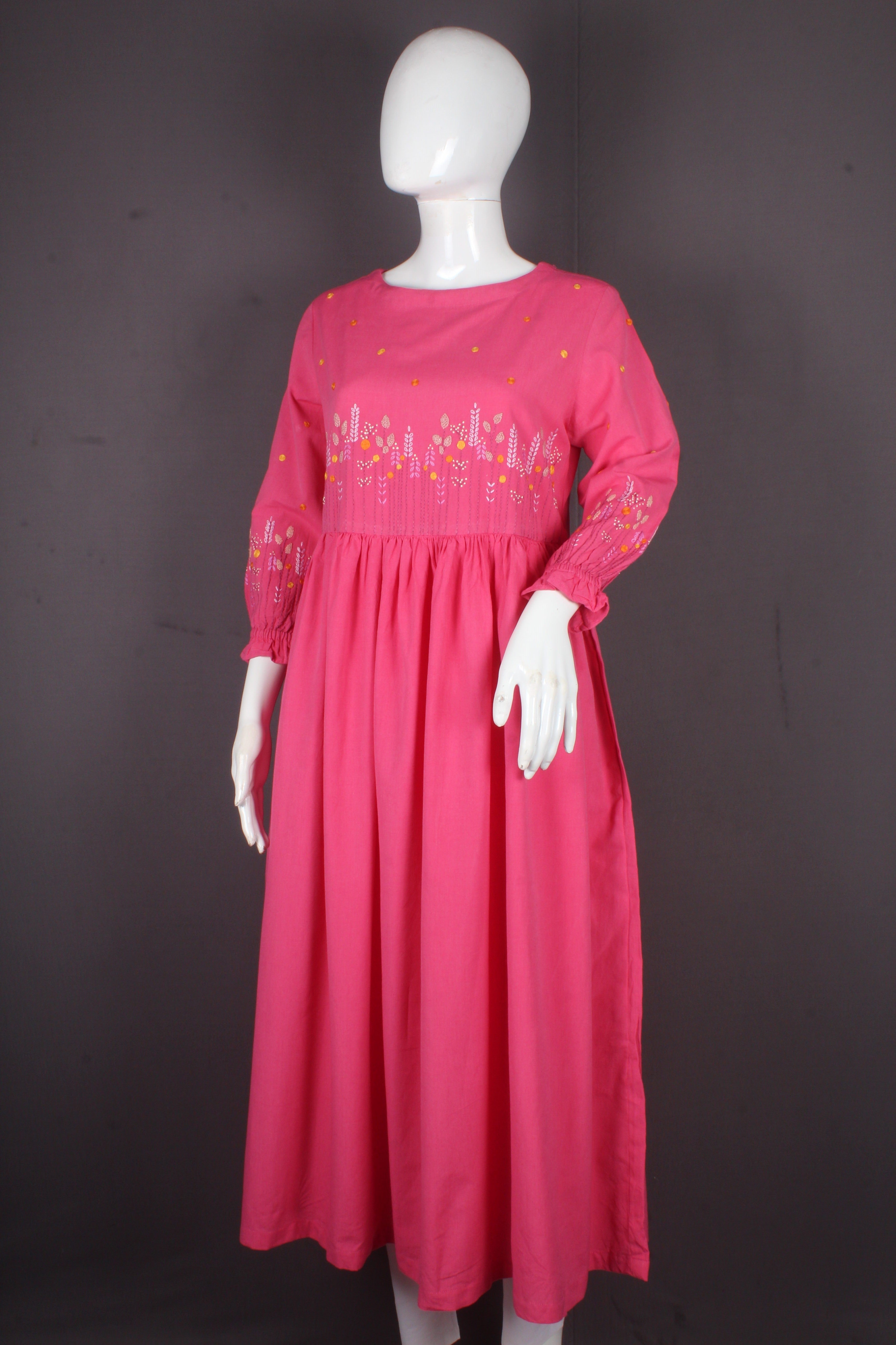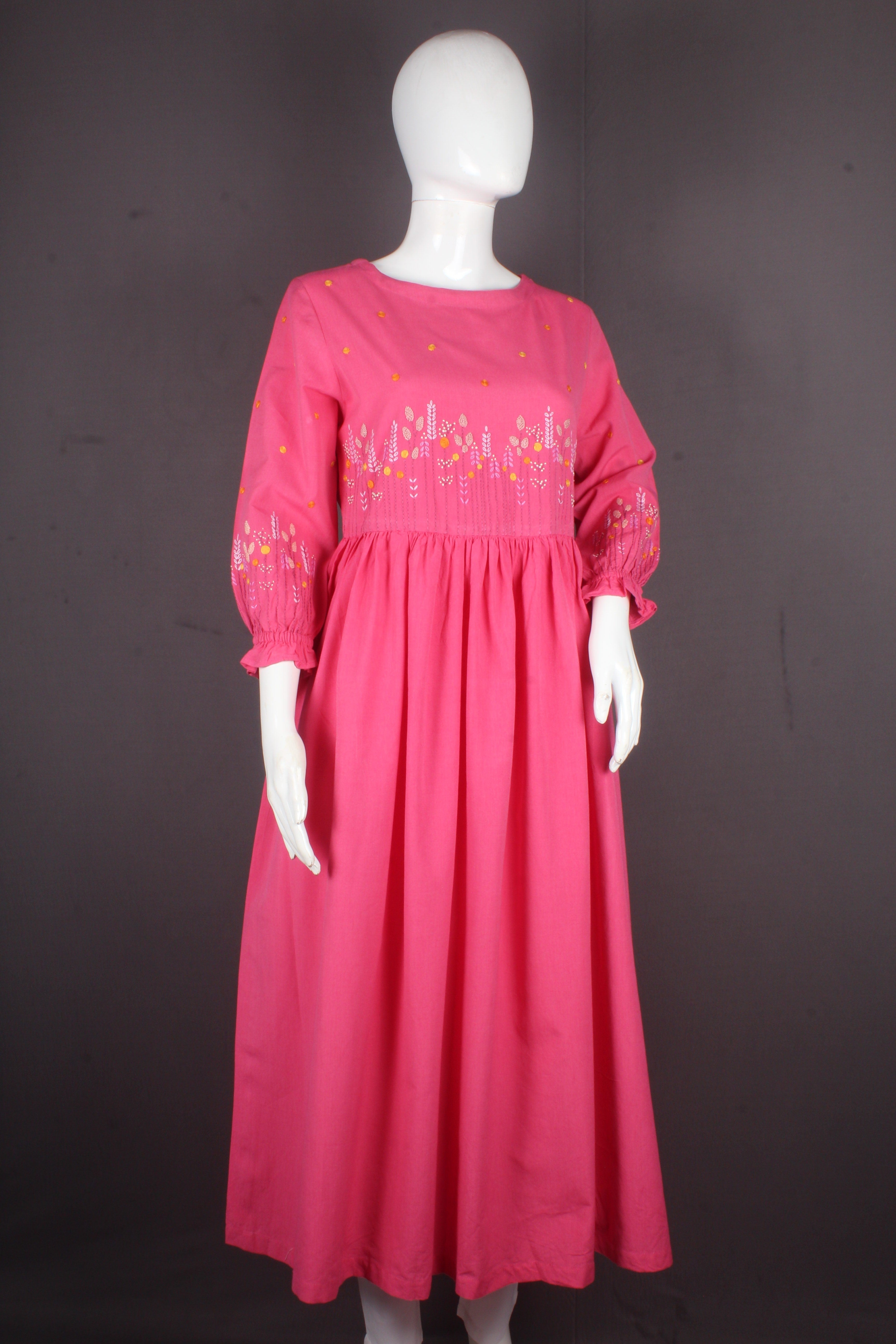Effortlessly feminine and full of charm, our Floral Embroidered Gathered Dress is designed for those who love a touch of whimsical detail. The soft pink hue is complemented by delicate botanical embroidery across the bodice and sleeves, creating a look that is both fresh and timeless. With its breezy gathered waist and comfortable fit, it’s a go-to choice for everything from casual outings to festive gatherings.
