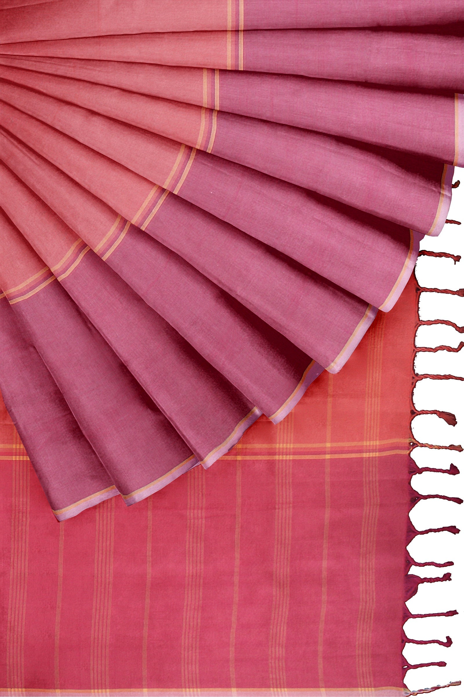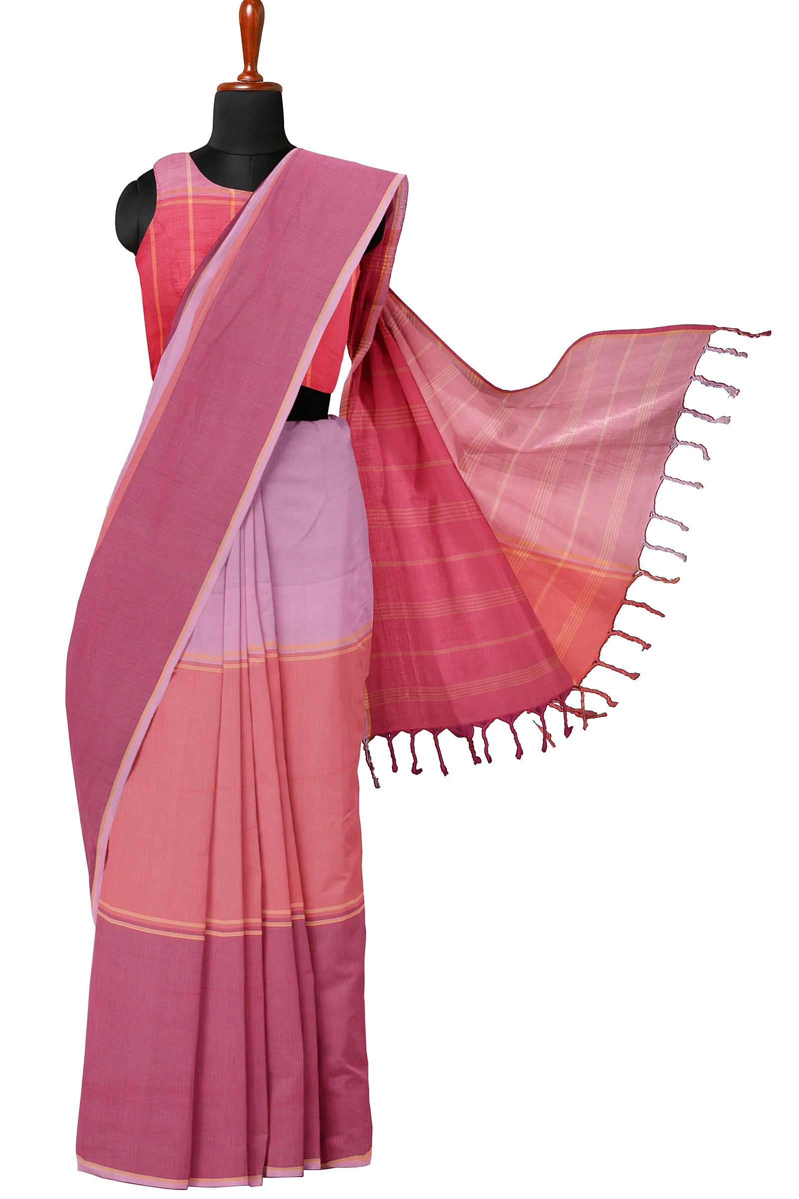 Pearl Pink, Orange and Magenta Saree with Pink, Magenta and Sand Border