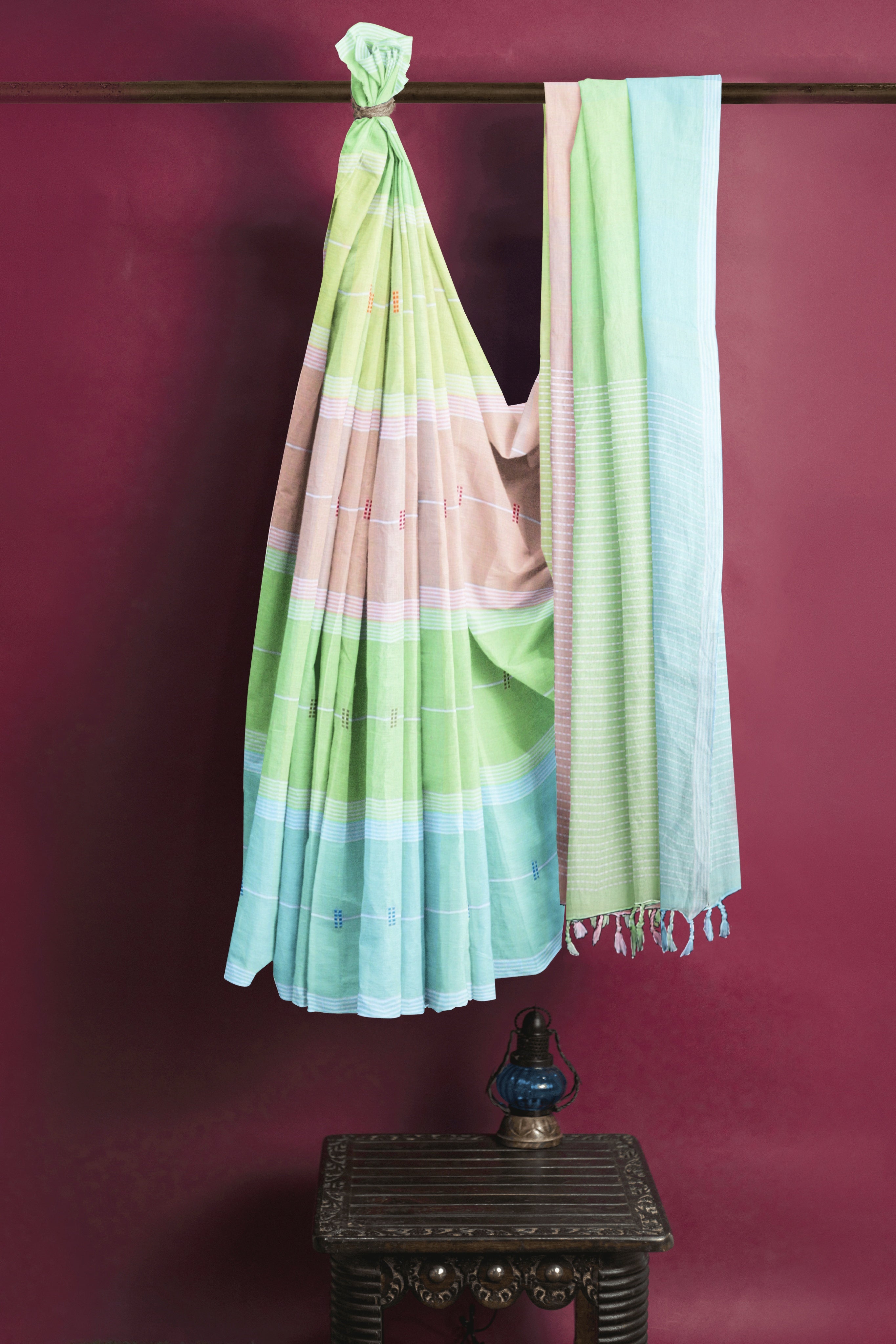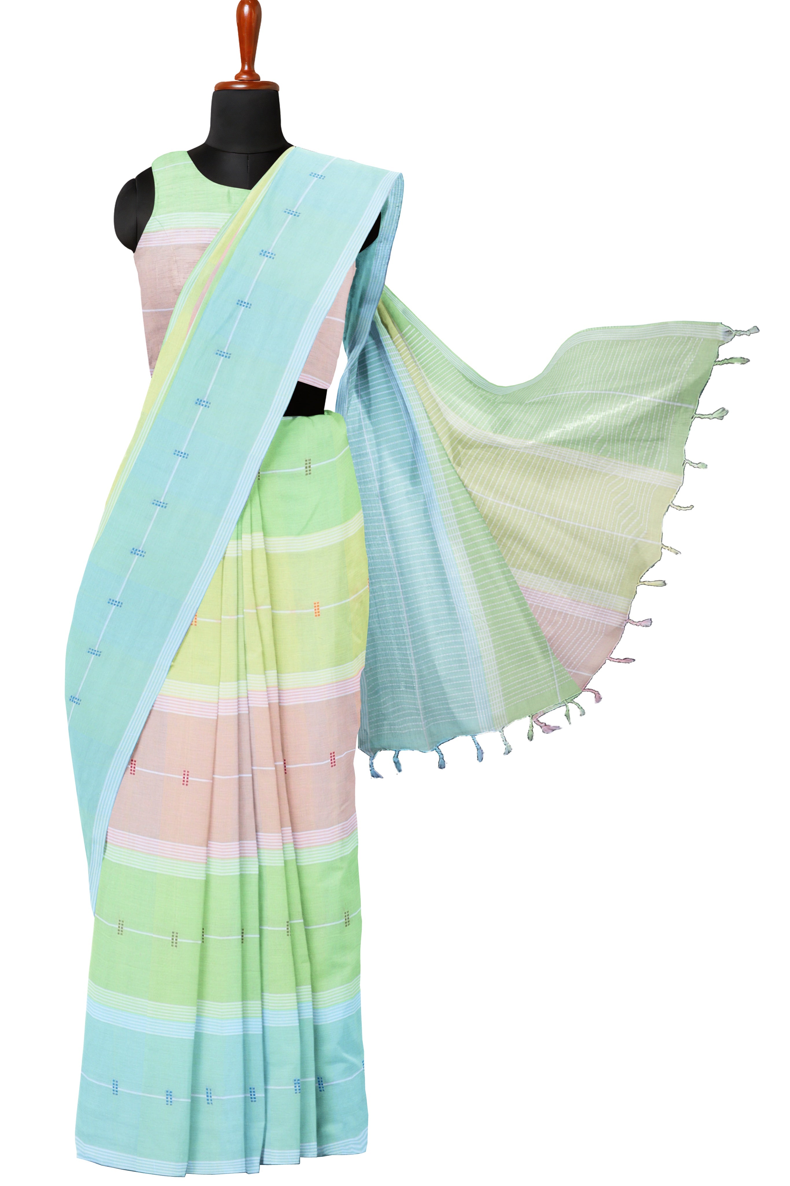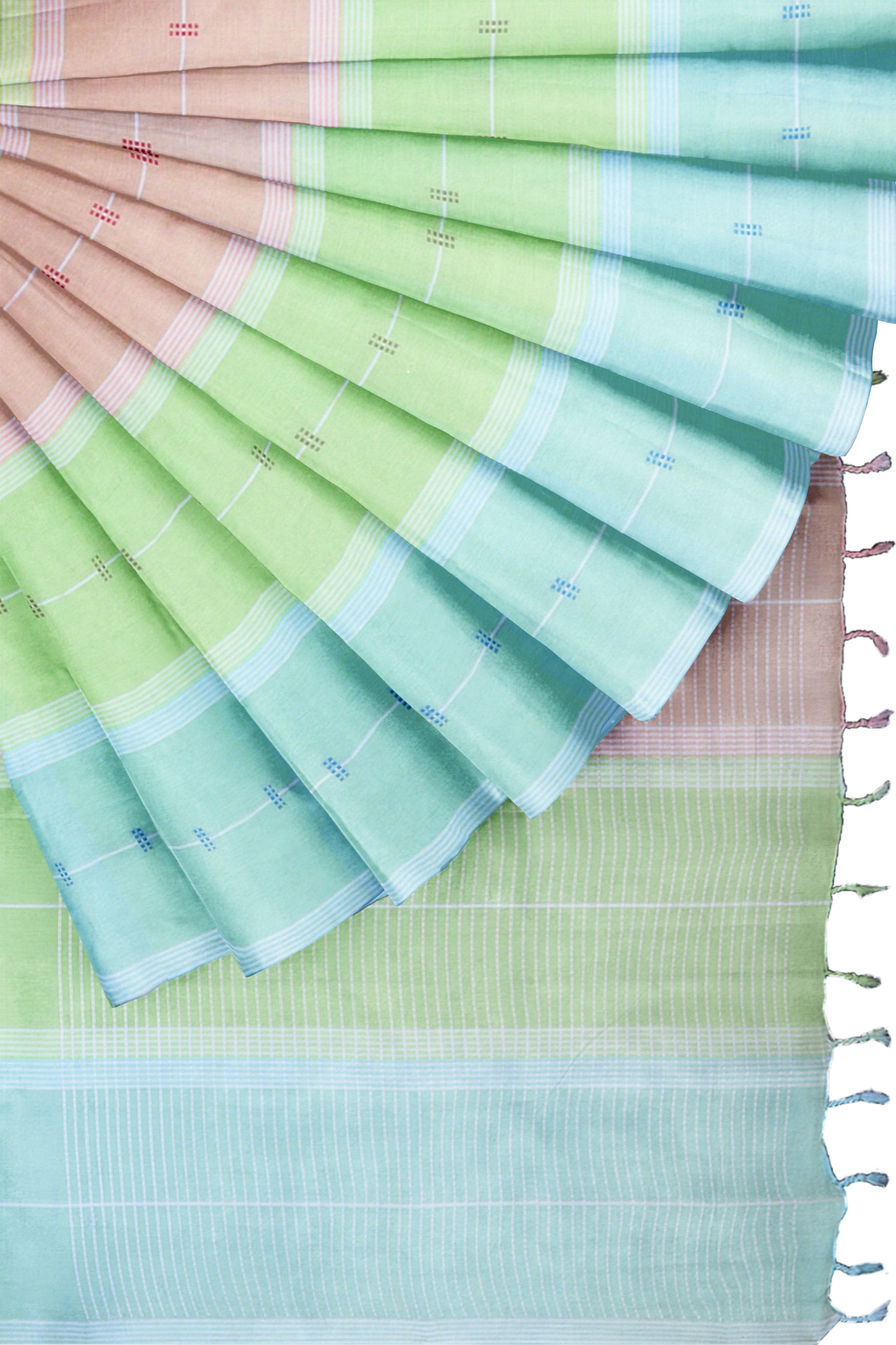 Multi Colour Saree with Butis and White Striped Border