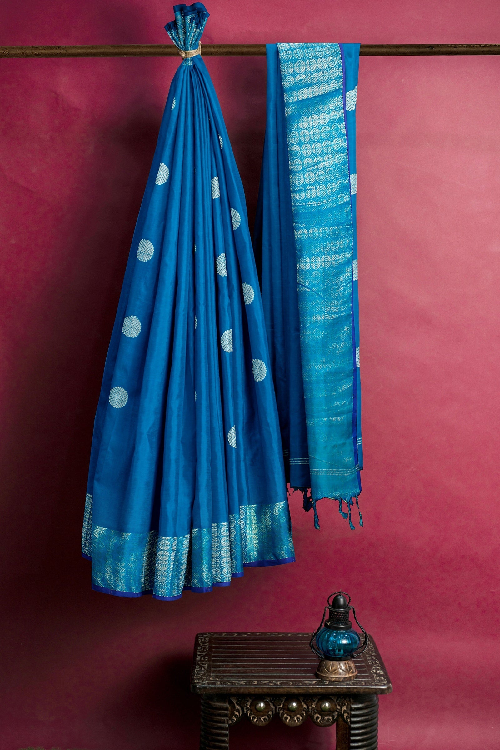 Blue Dobby Saree with Silver Zari Border and Butis