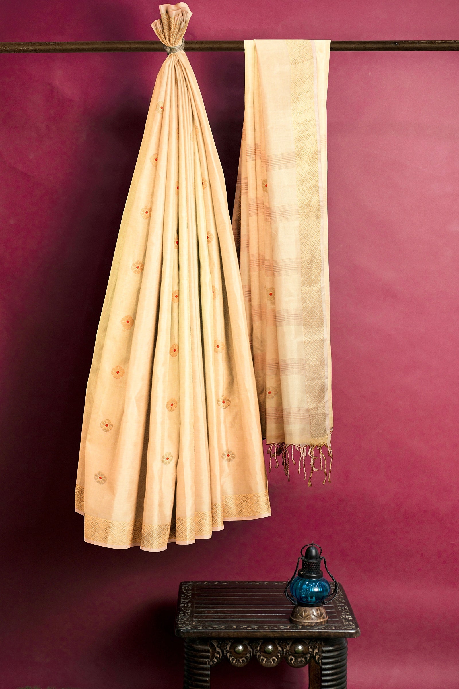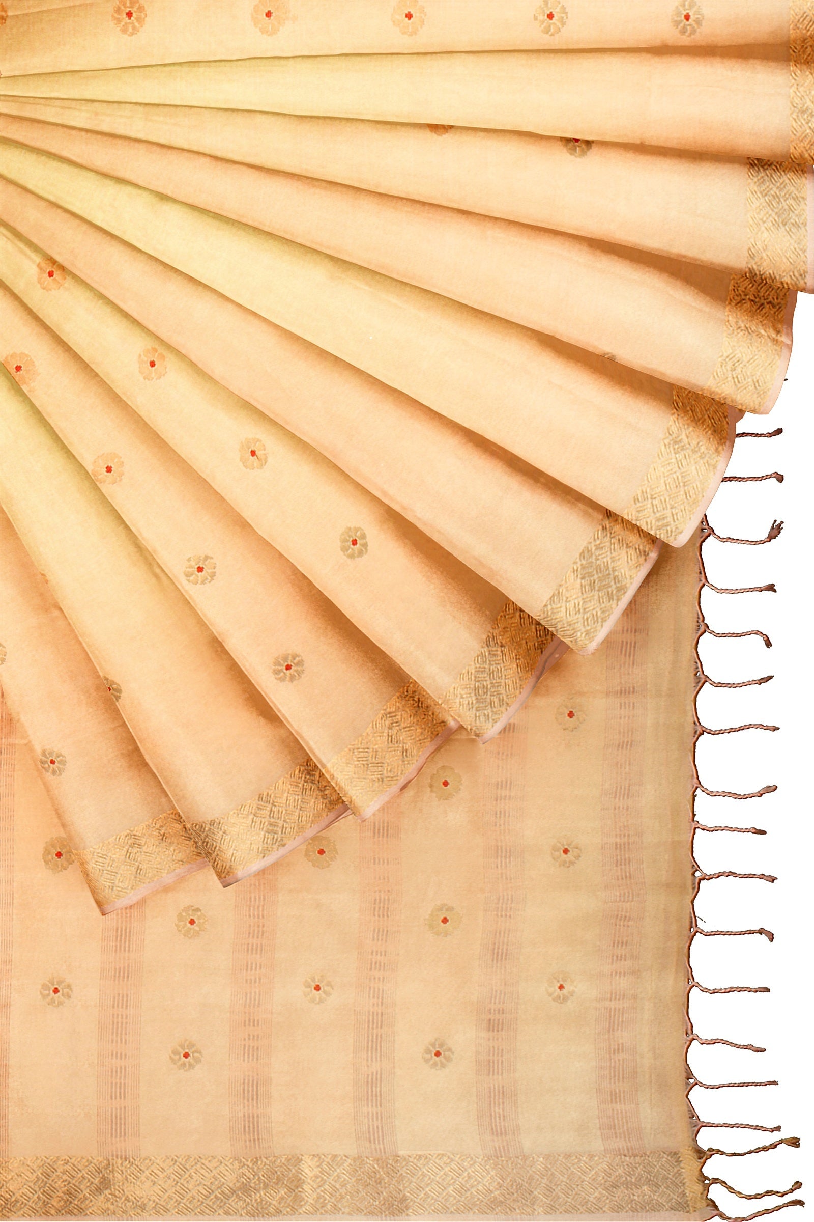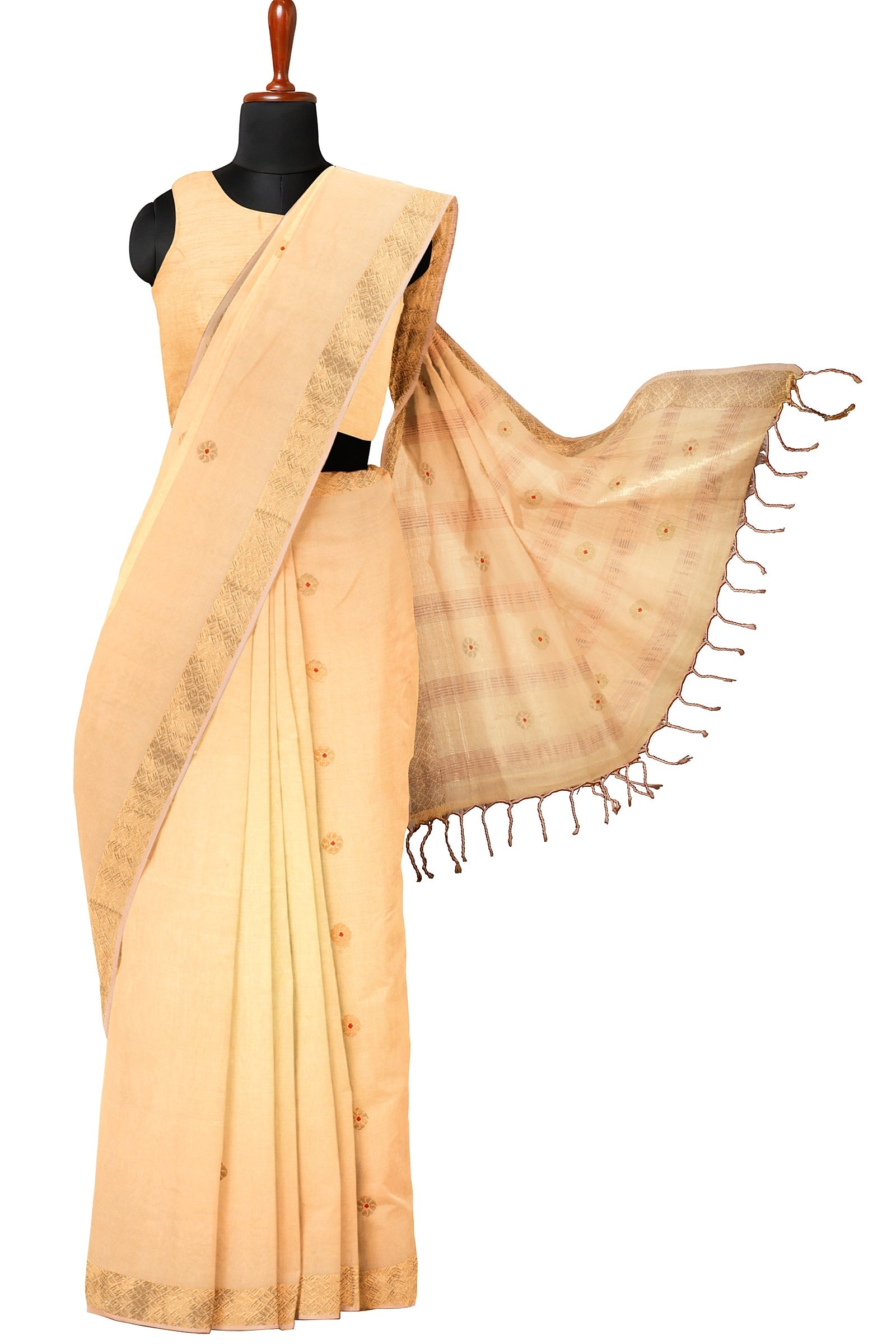 Yellow Dobby Saree with Red and Golden Zari Border and Butis
