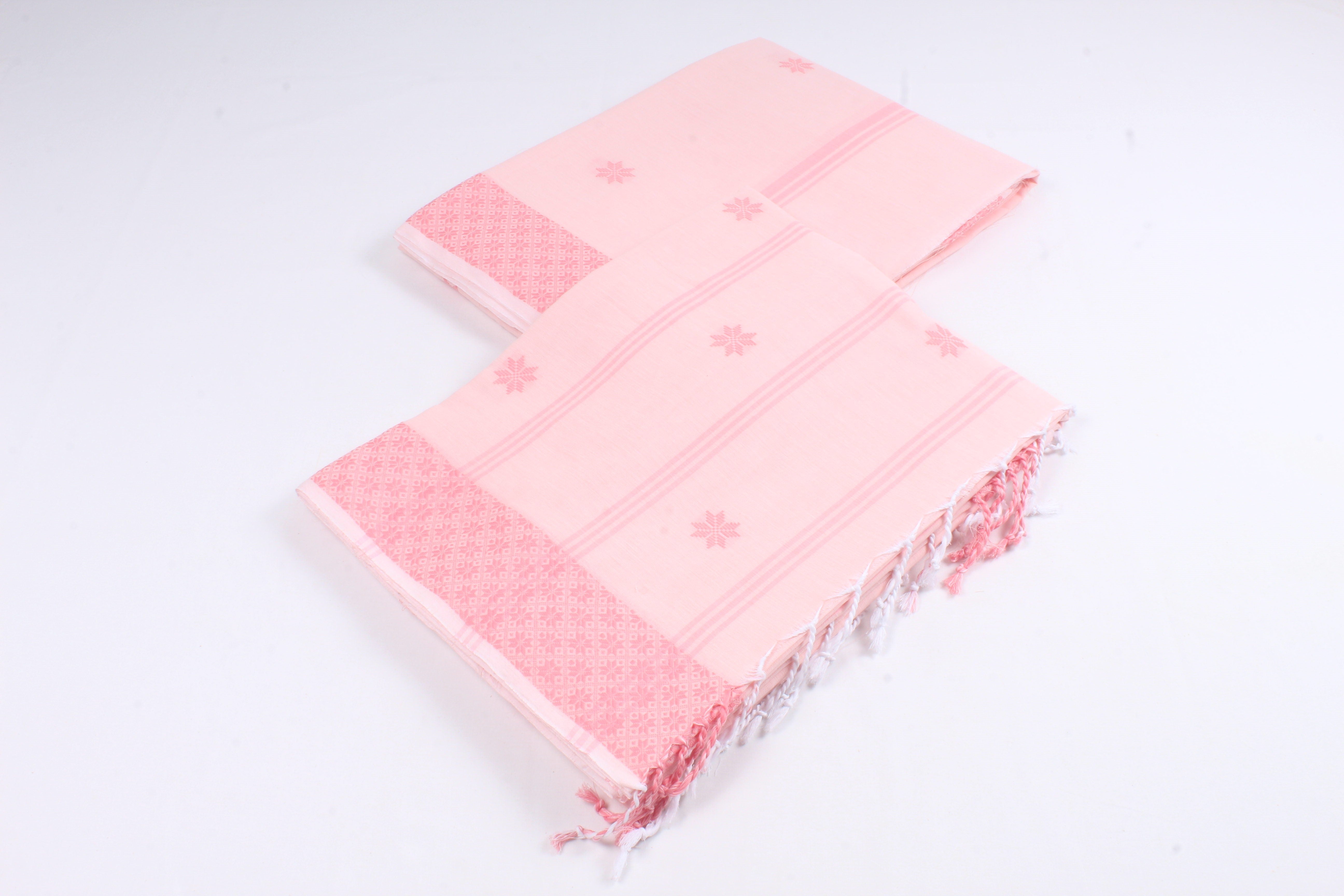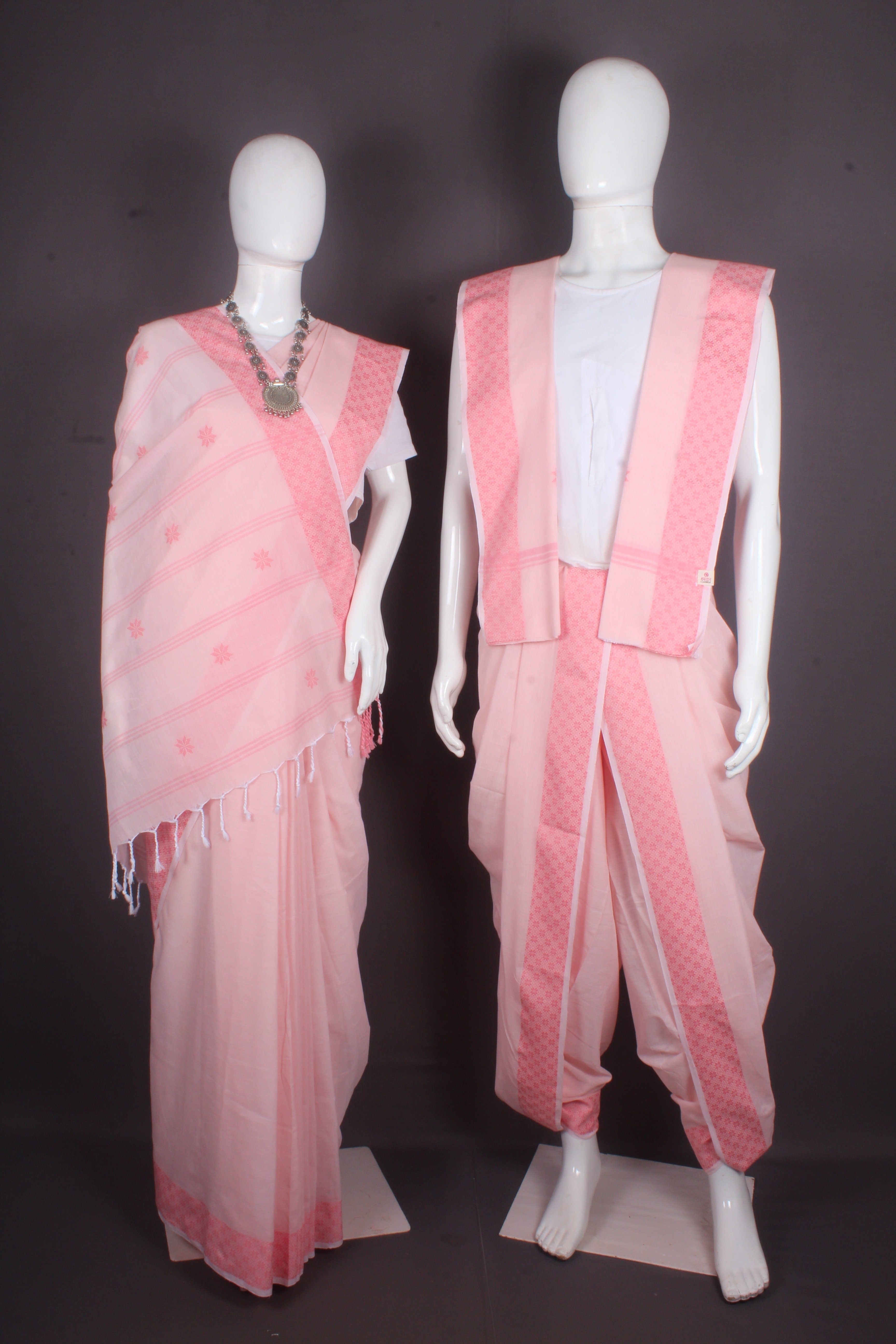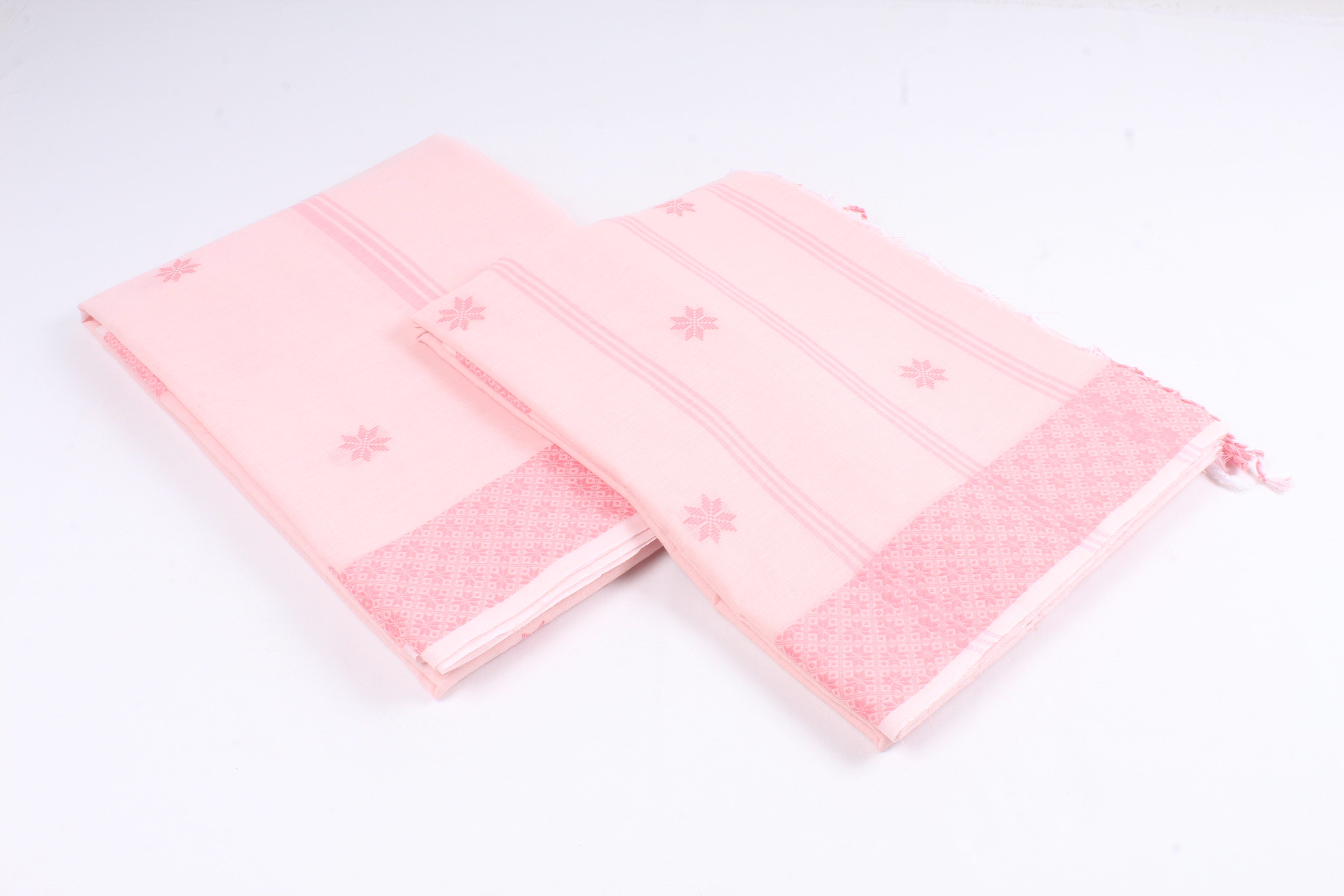 Traditional Handloom Joda Set in Baby Pink with Butis and Rani Pink Dobby Border