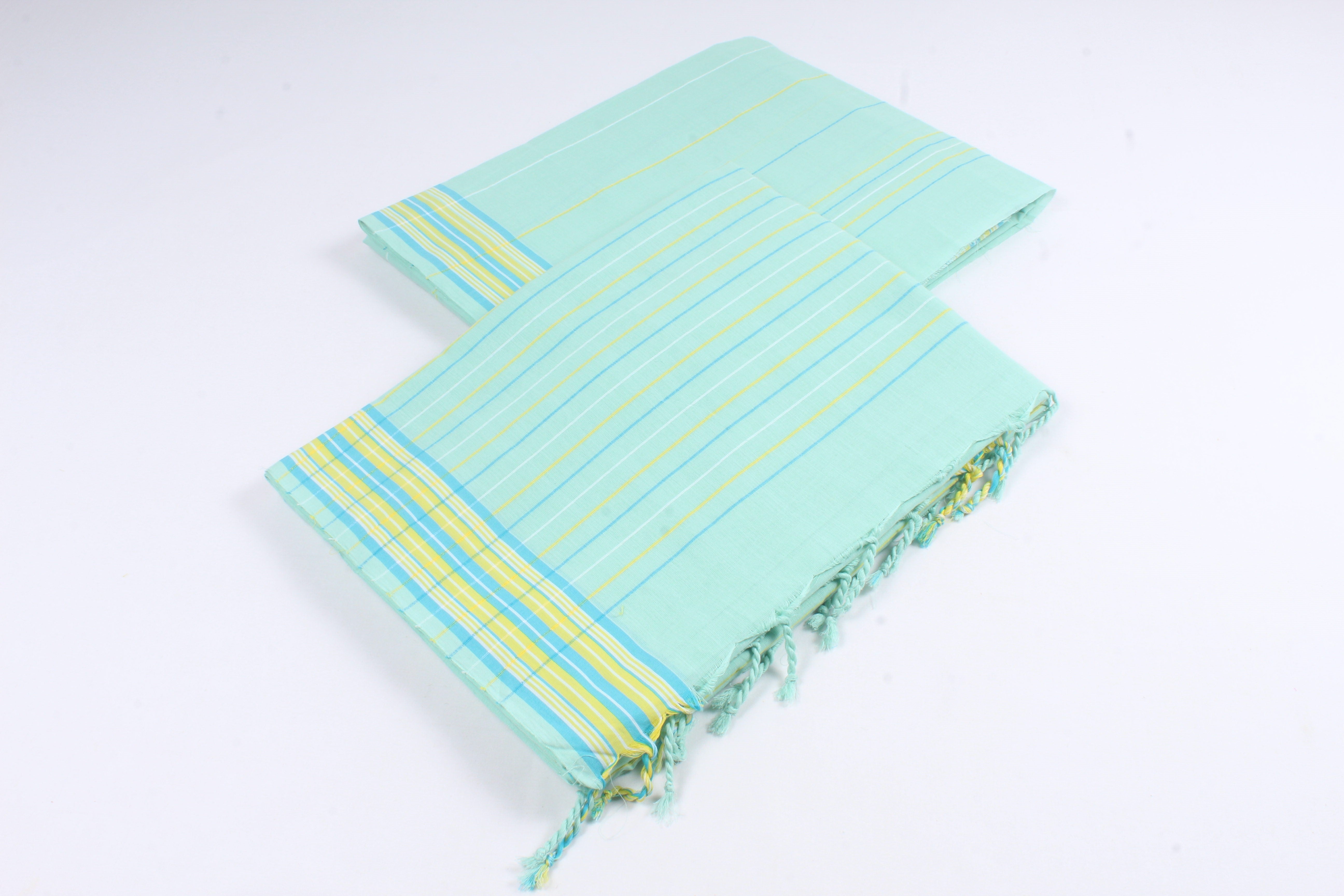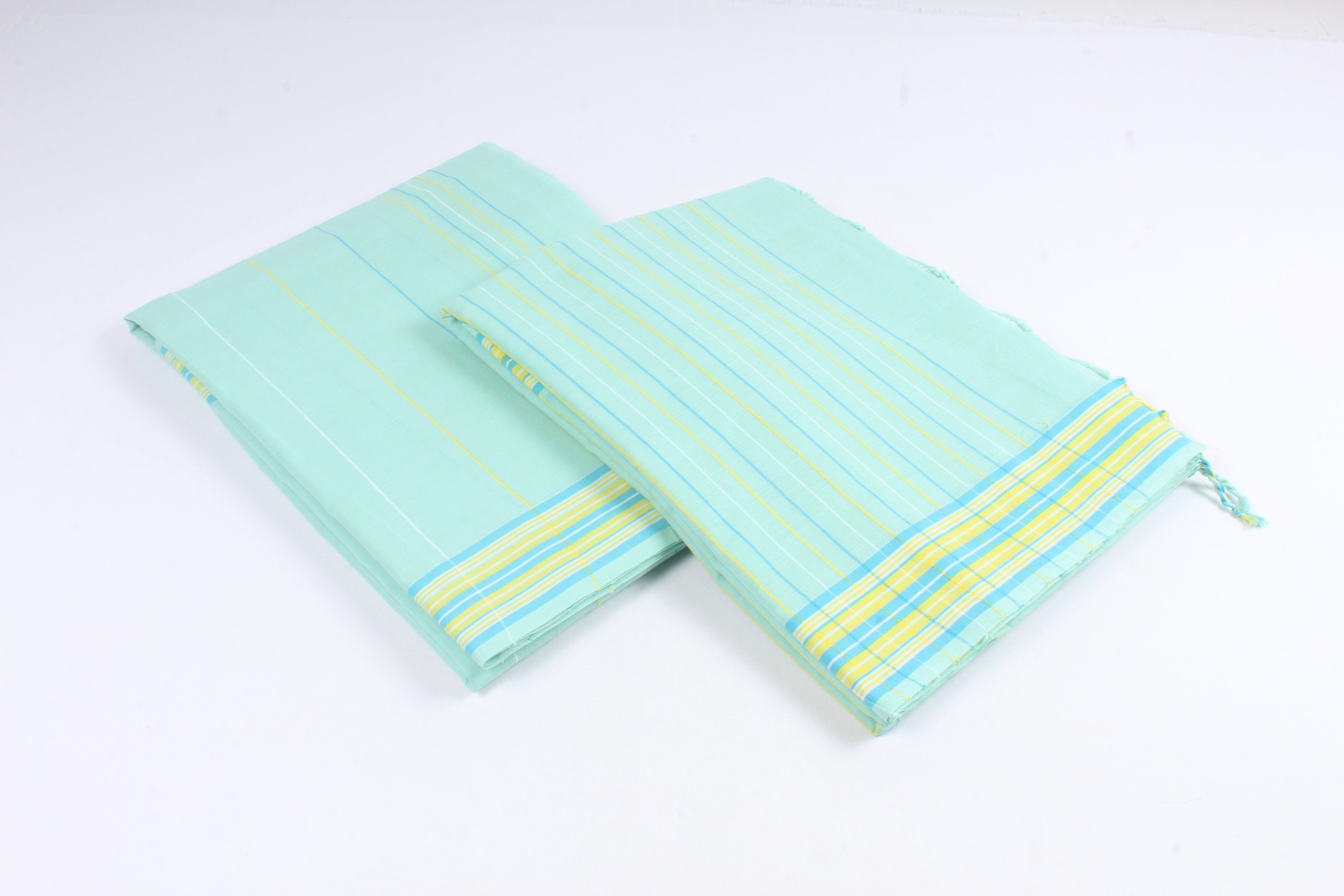 Traditional Handloom Joda Set in Sea Green with Striped and Multi Color Border