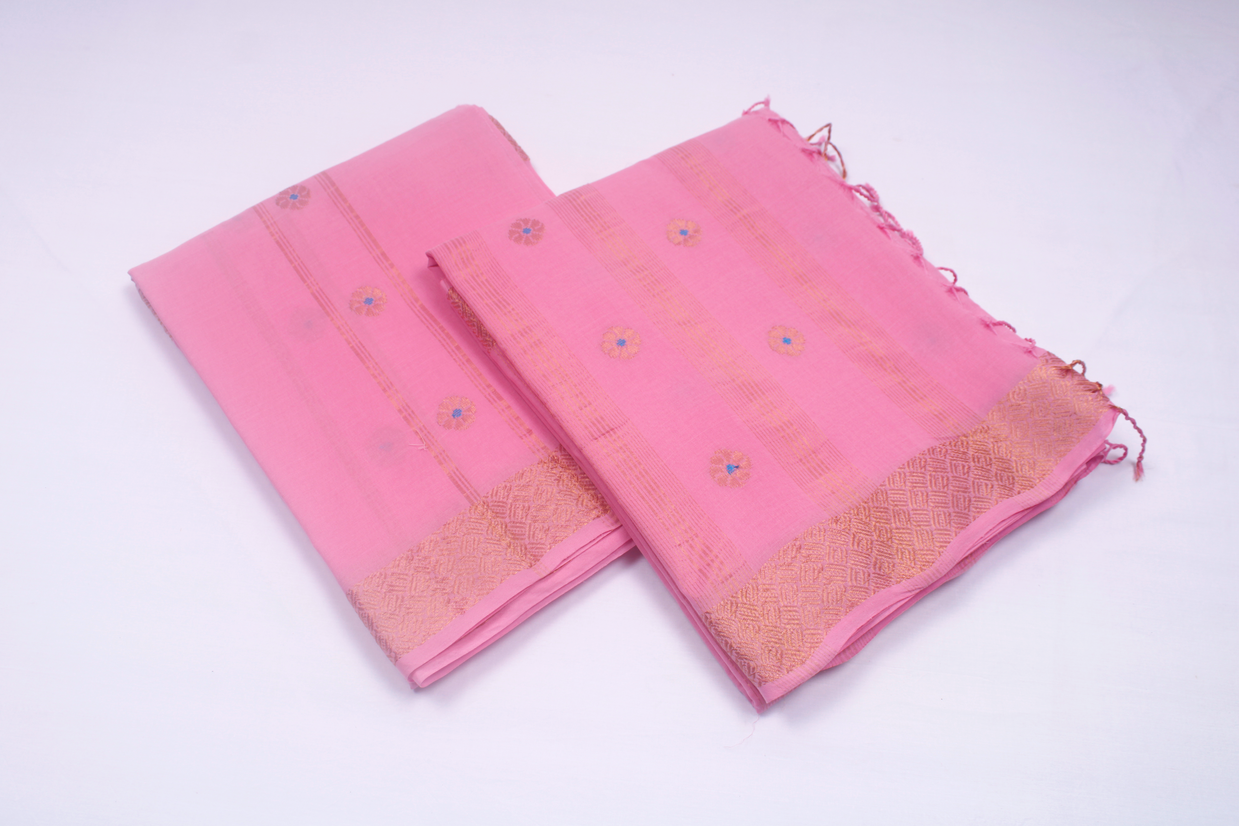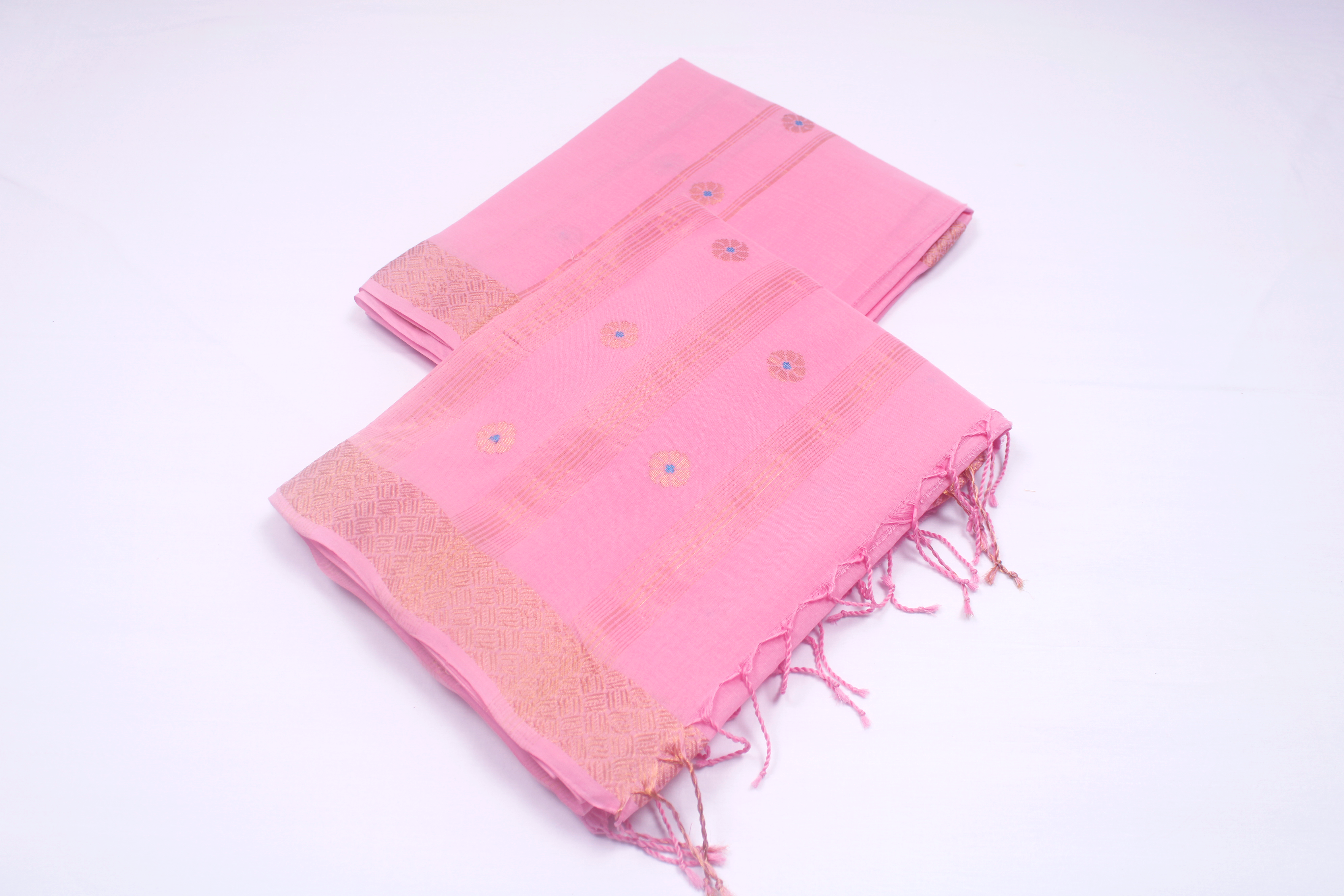 Pink Dobby Couple Set with Golden Zari Border and Butis