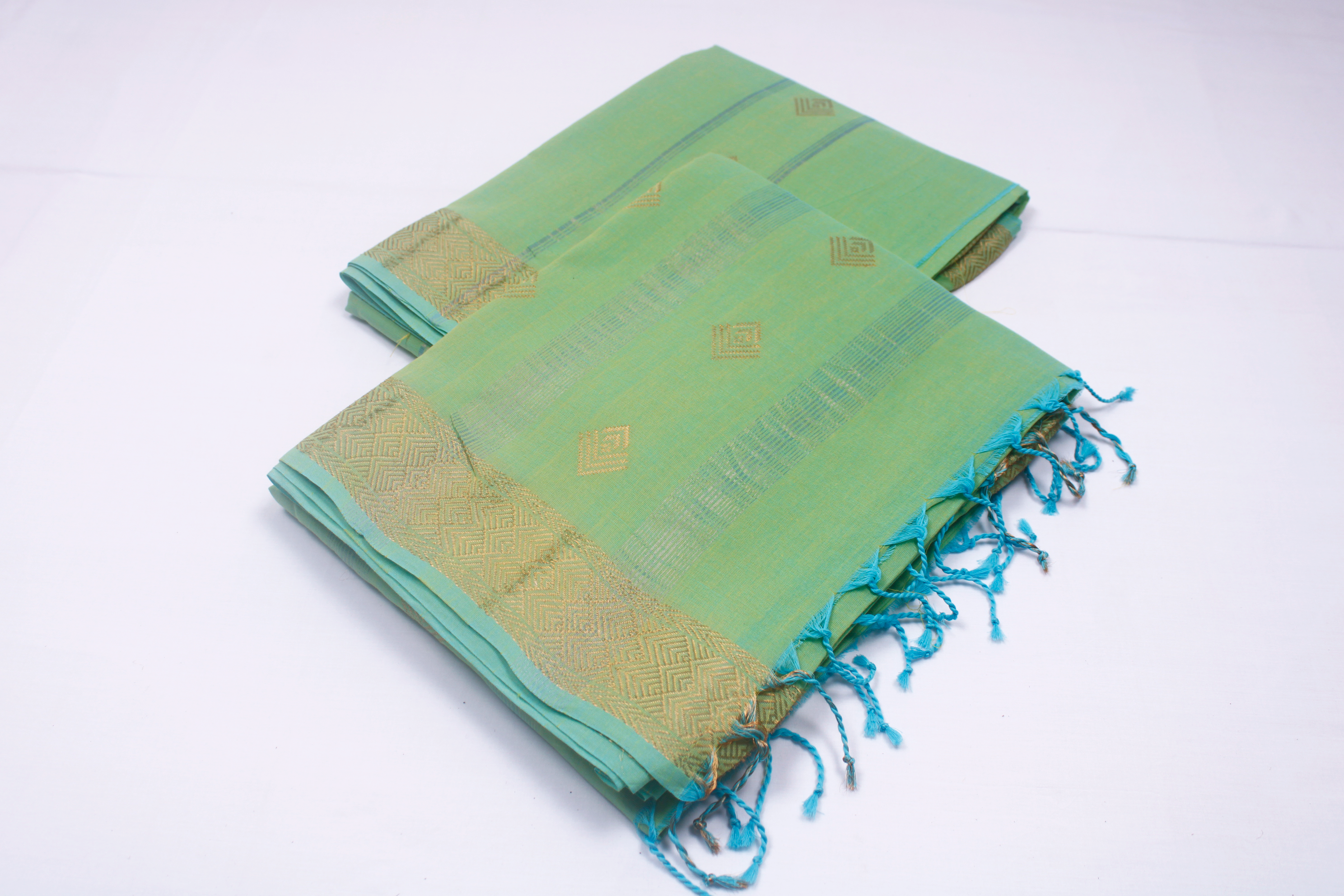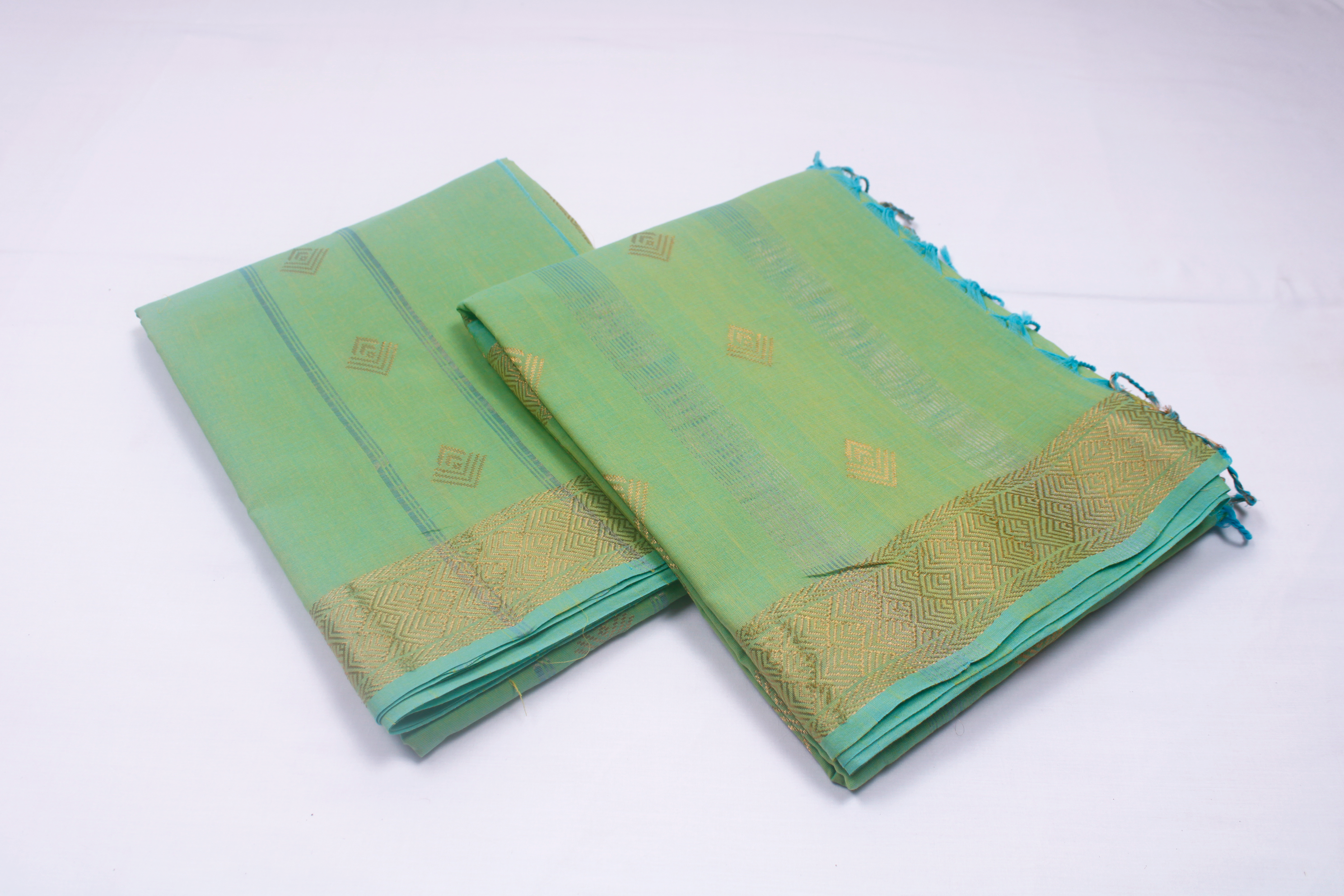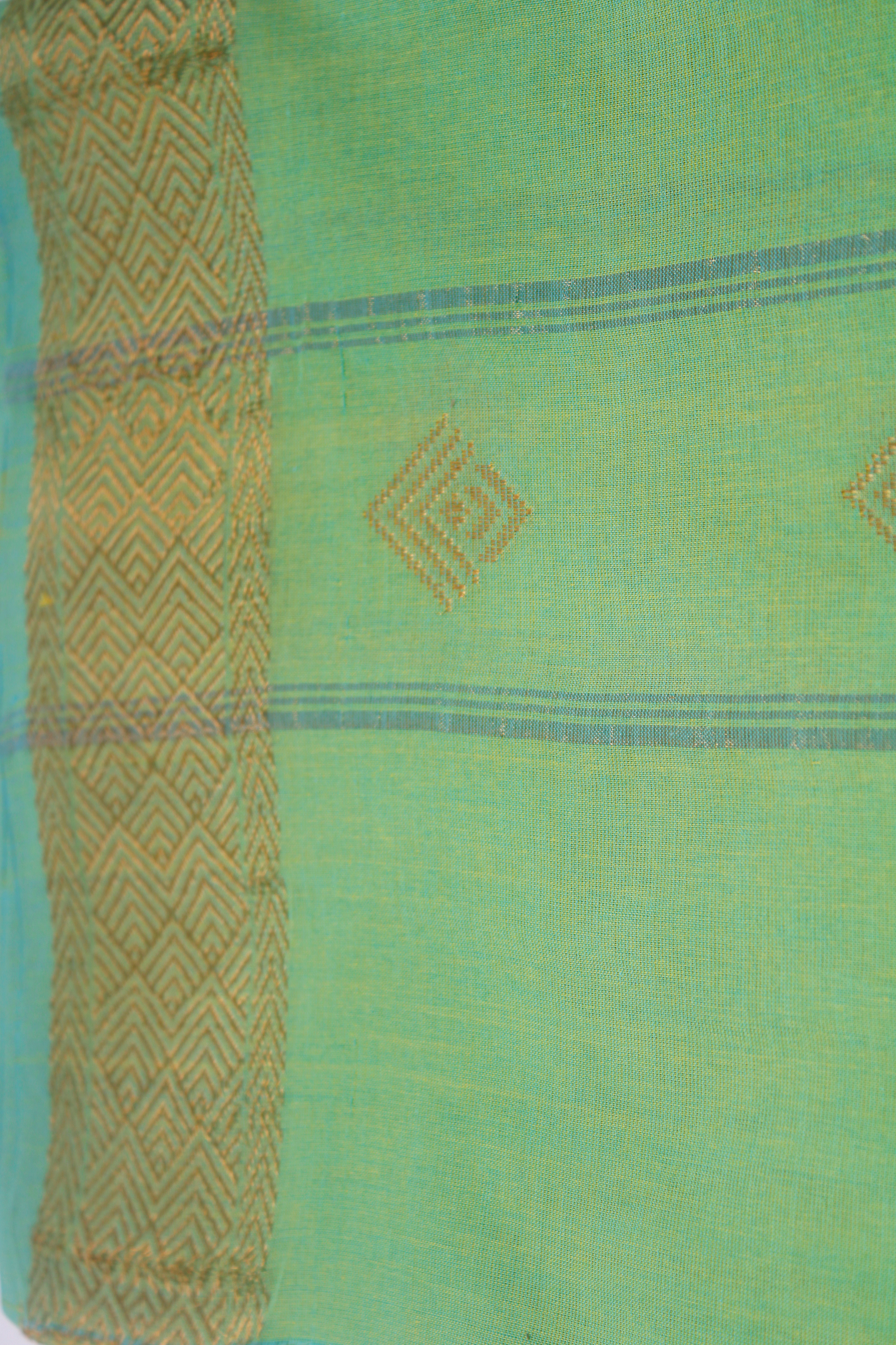 Green Dobby Couple Set with Golden Zari Border and Butis