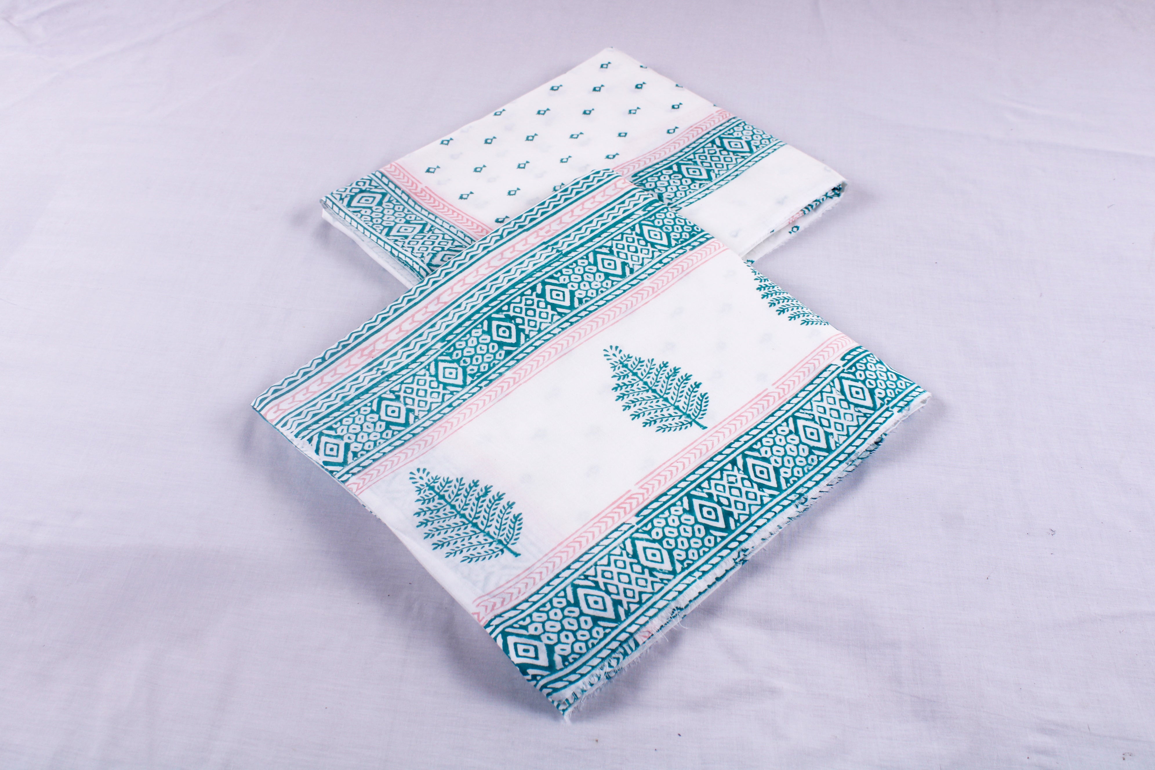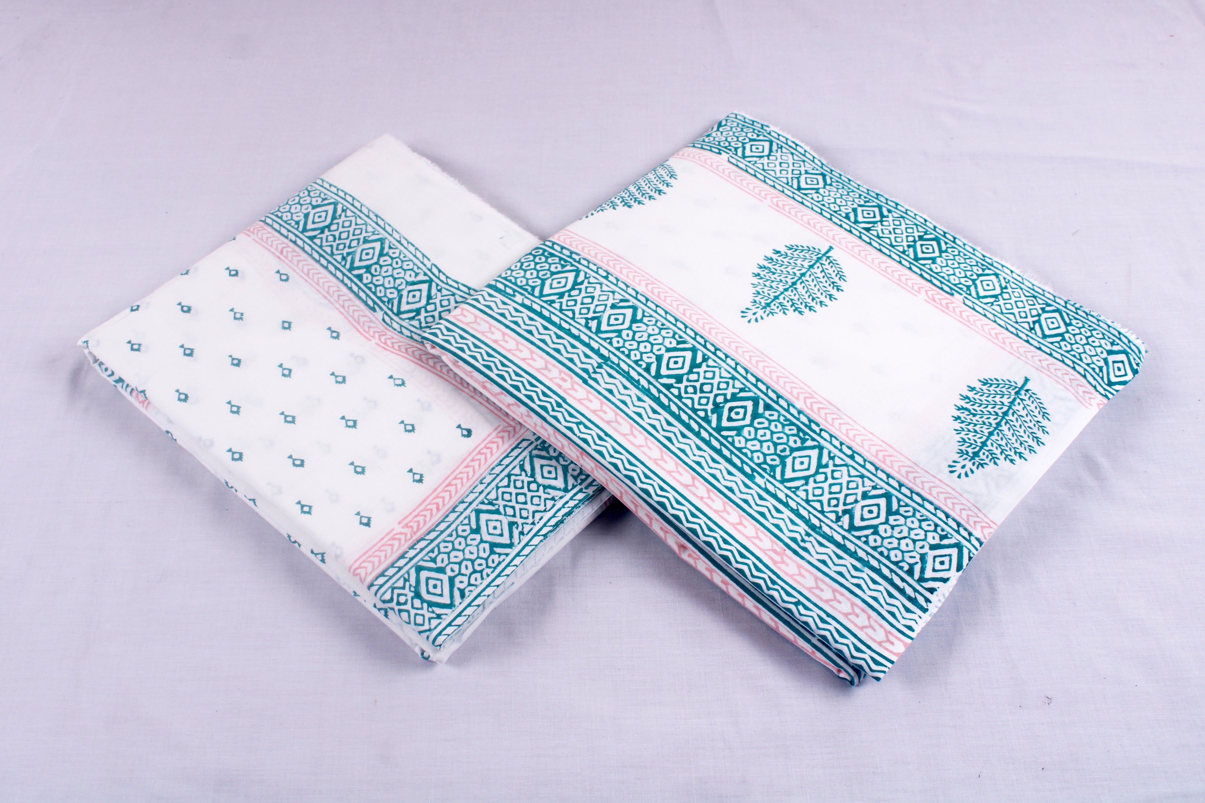 White, Blue and Red Sanganeri Hand Block Printed Couple Set