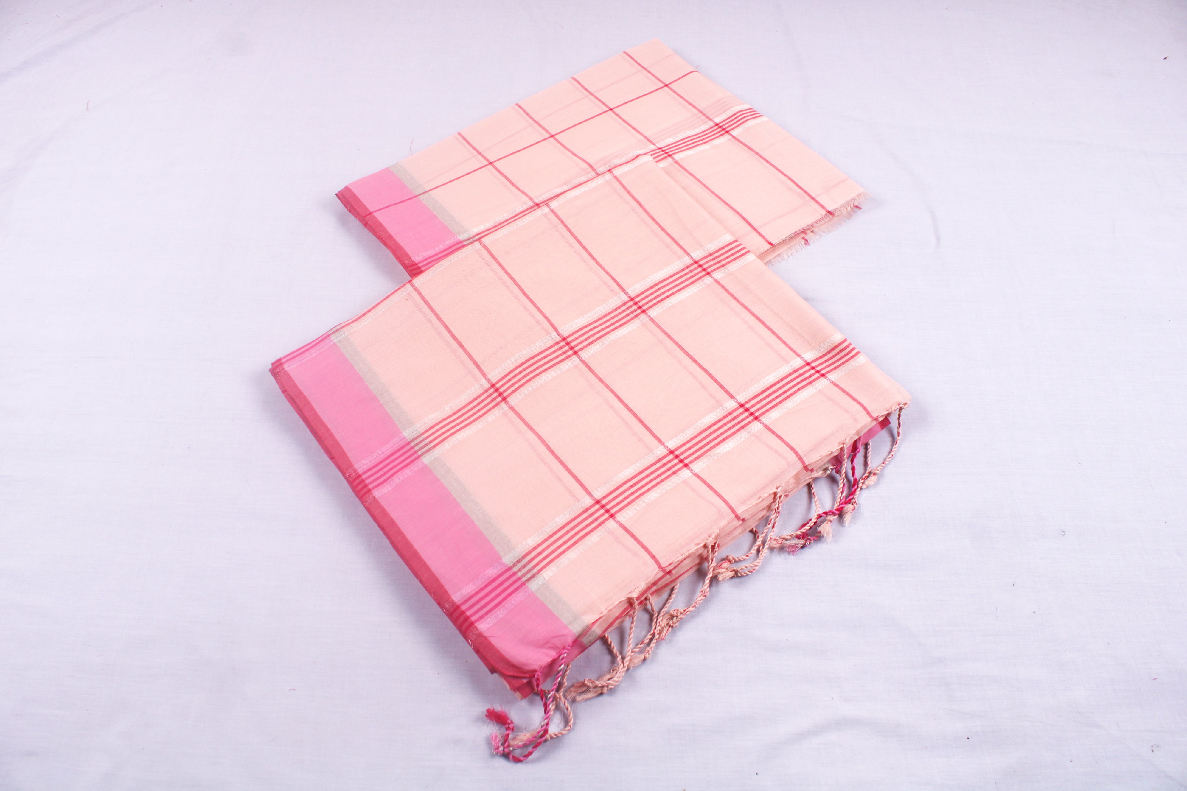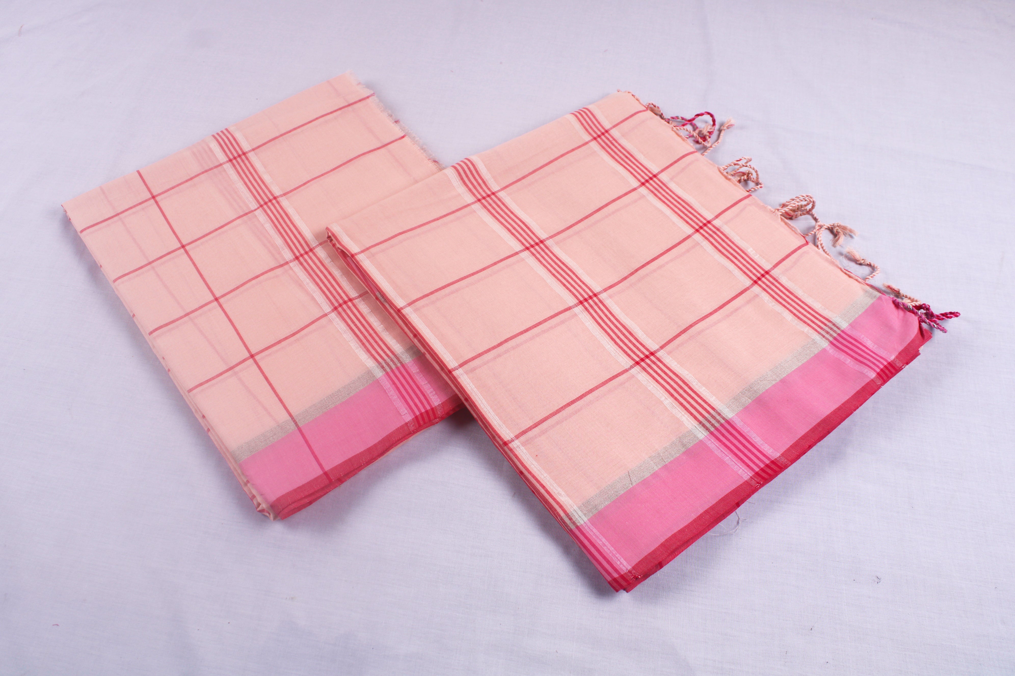 Peach Couple Set with Silver, Pink and Red Border and Checks