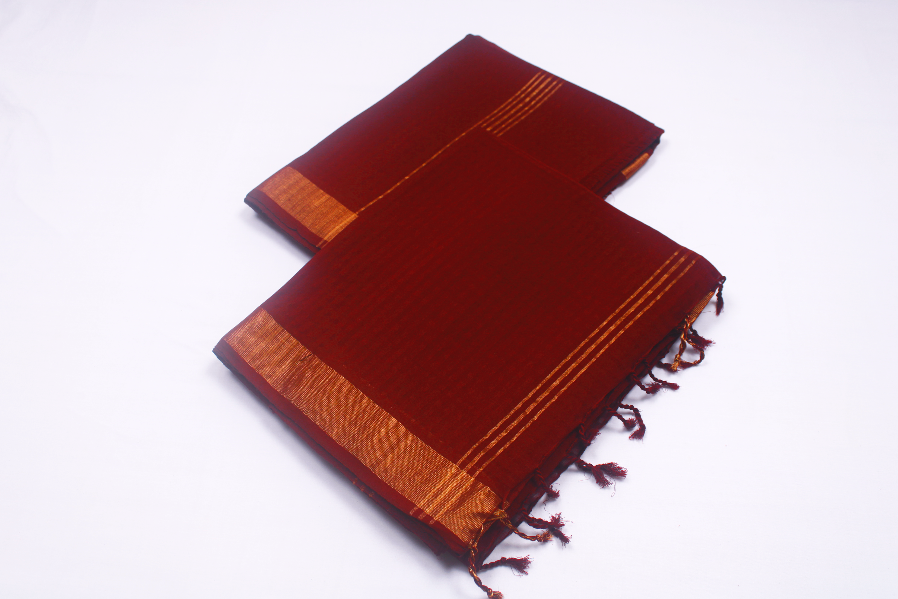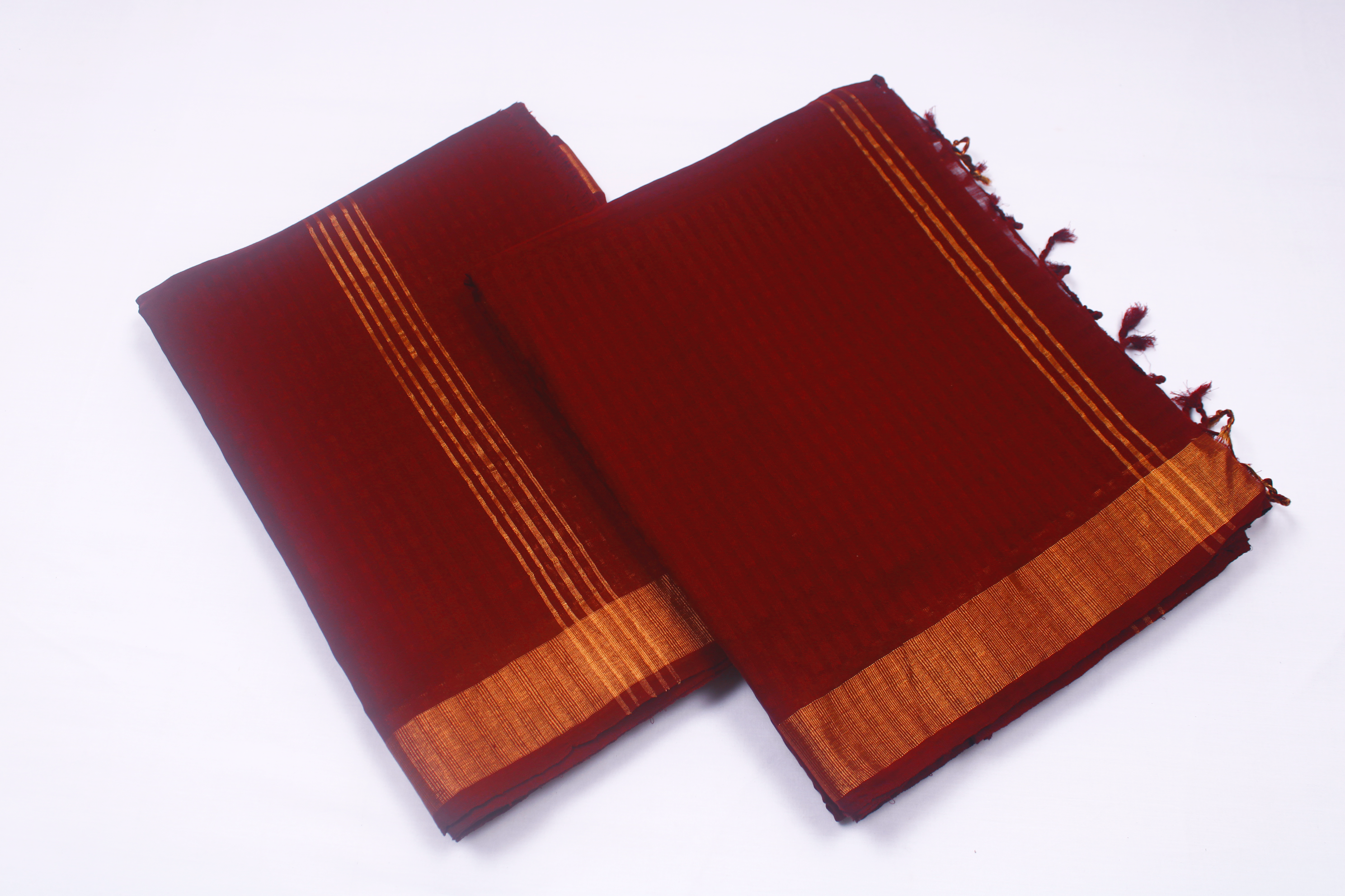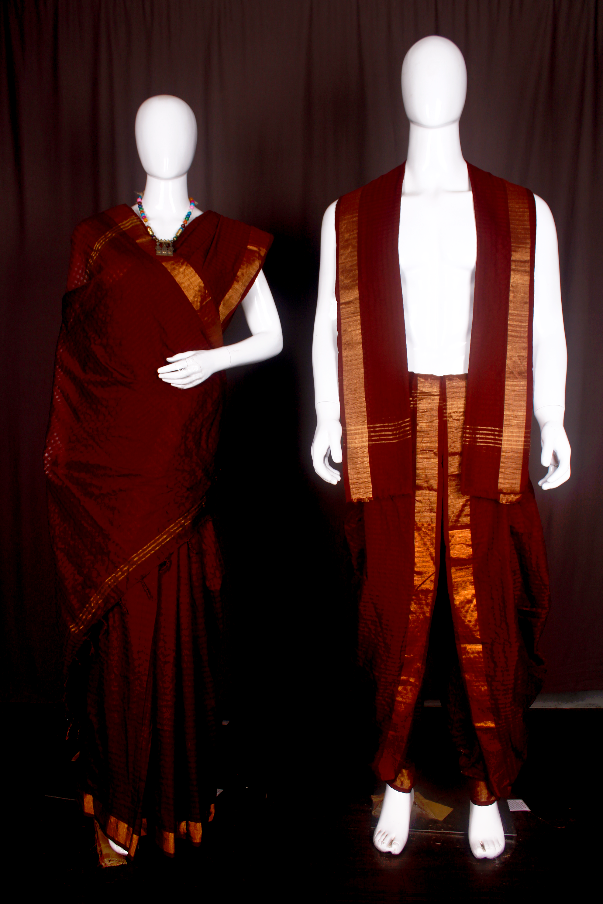 Maroon Self Check Couple Set with Golden Zari Border