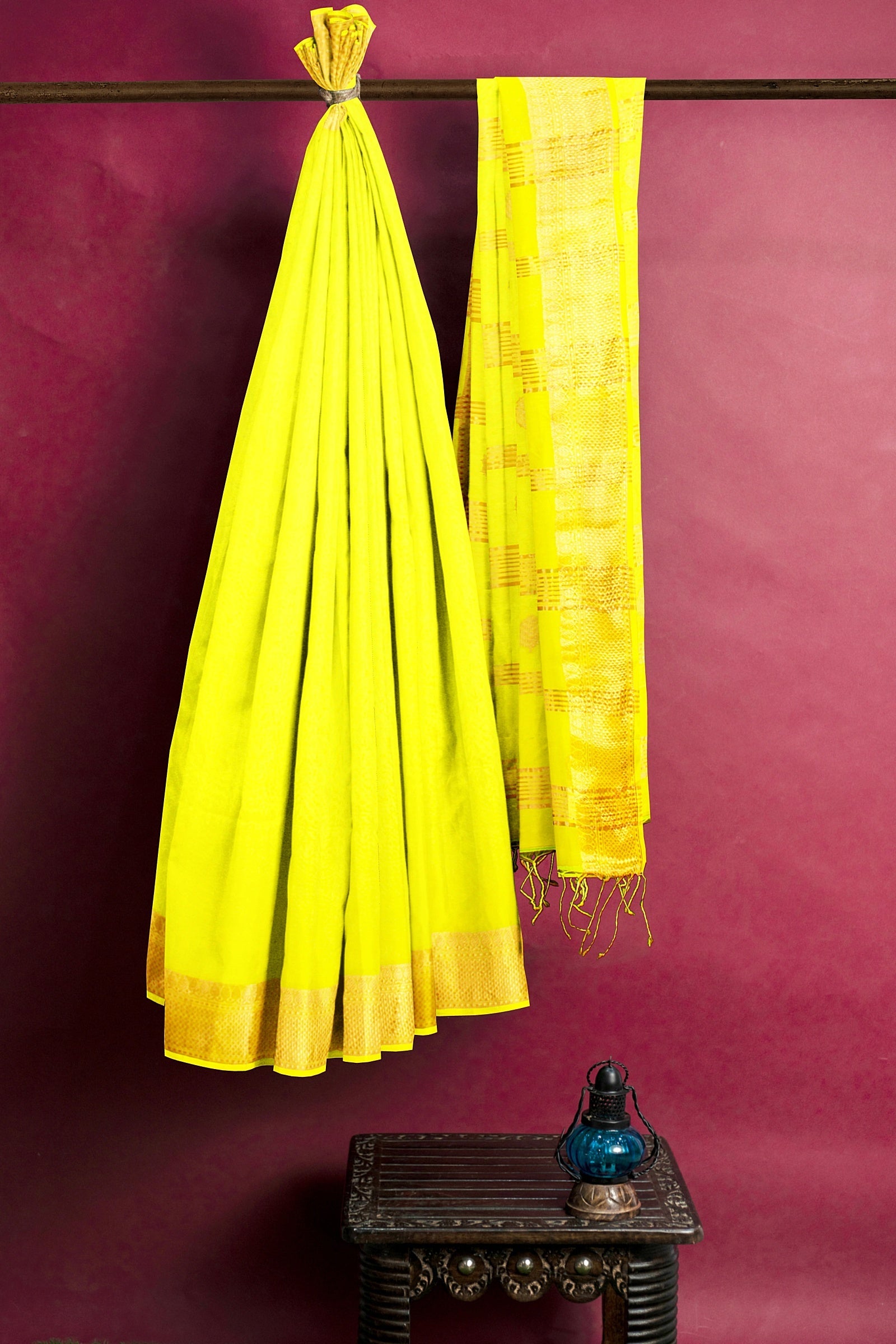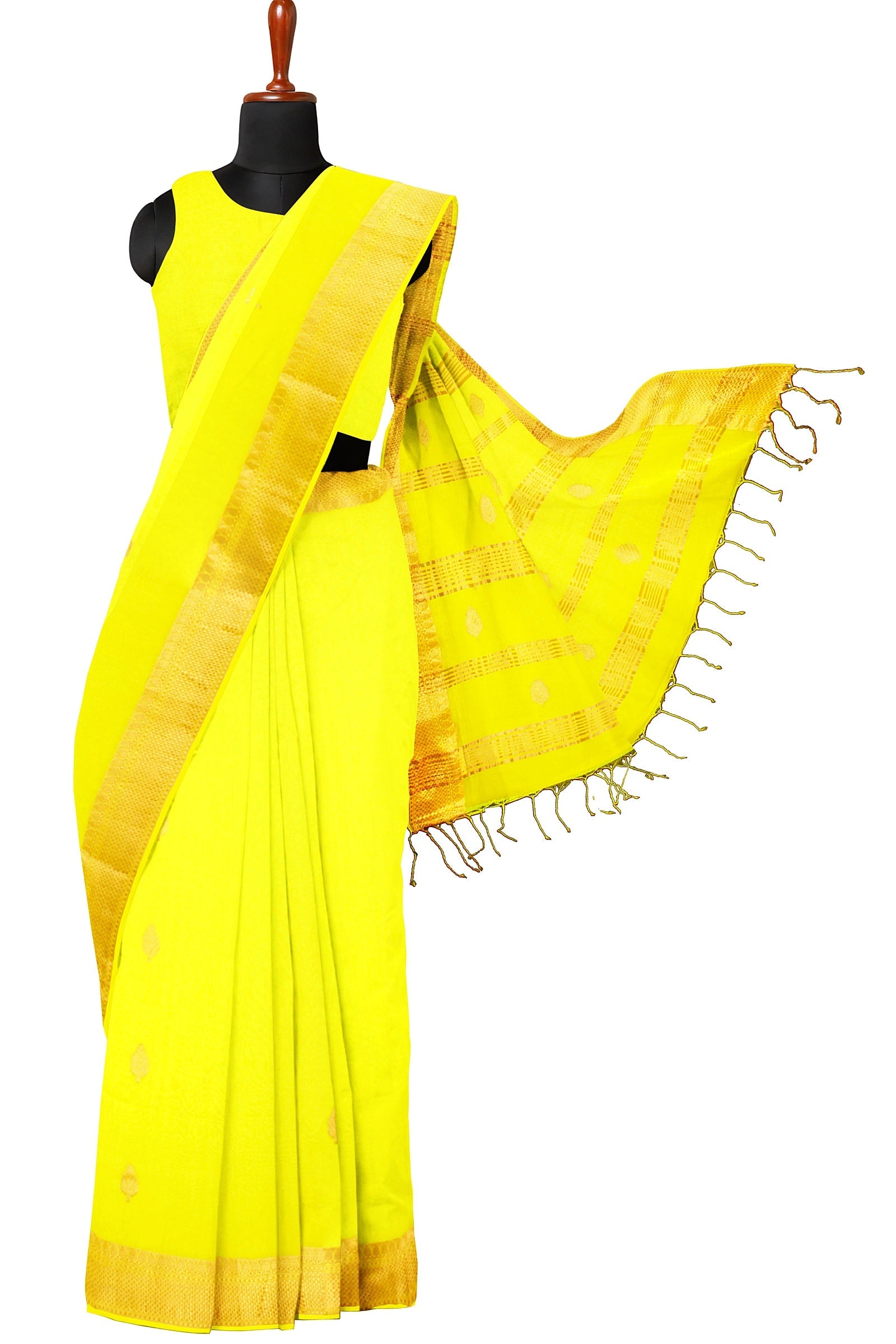 Yellow Dobby Saree with Golden Zari Border and Butis