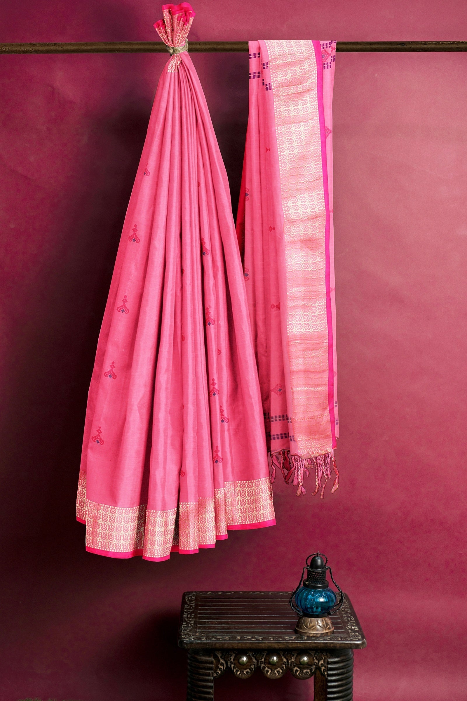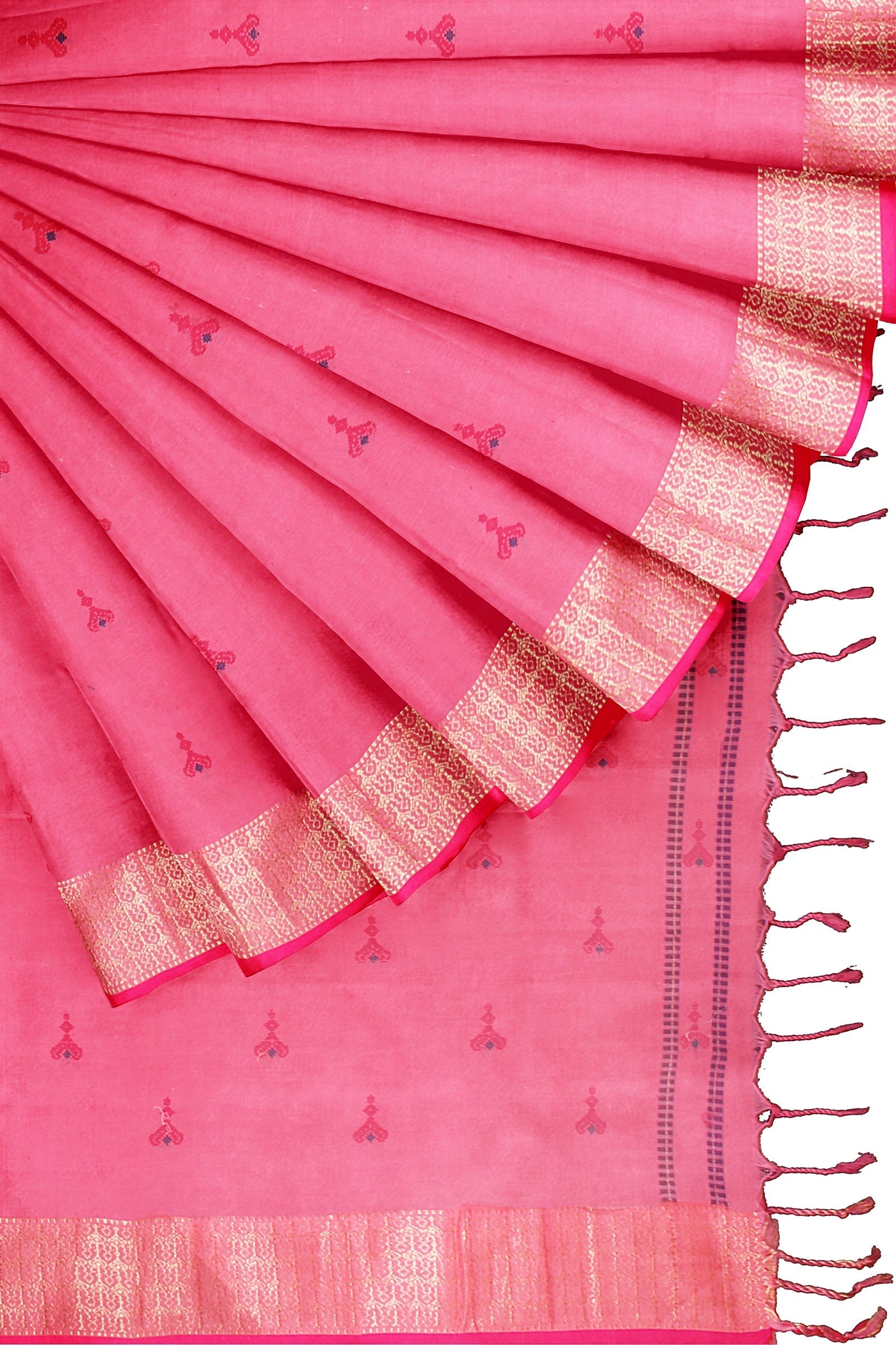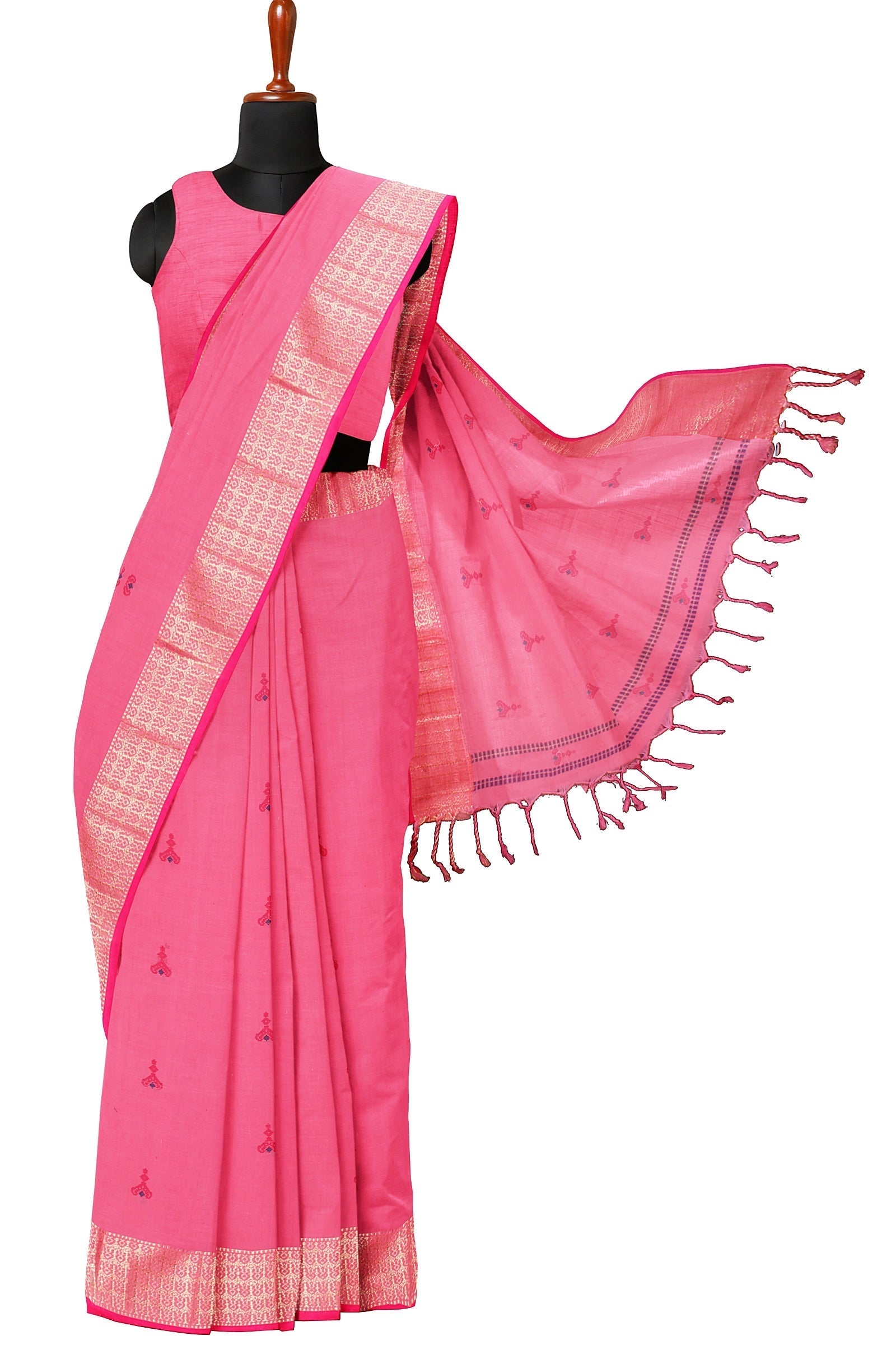 Red Dobby Saree with Purple, Golden Zari and Magenta Border and Butis
