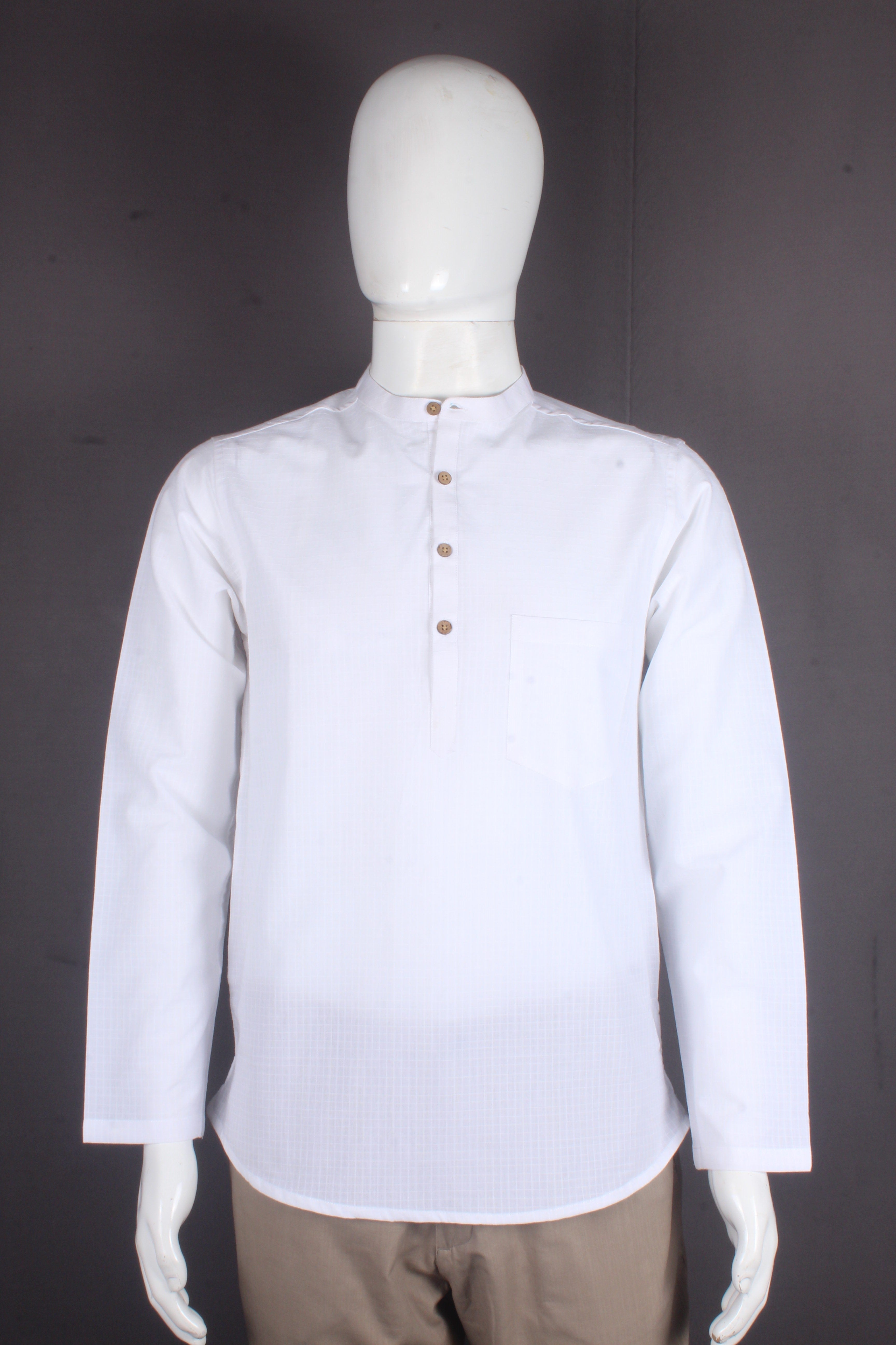 This classic men's short kurta is the perfect addition to your wardrobe. Crafted from premium cotton, it offers exceptional comfort and breathability, making it ideal for all seasons. The simple, yet elegant design with full sleeves ensures a timeless appeal.