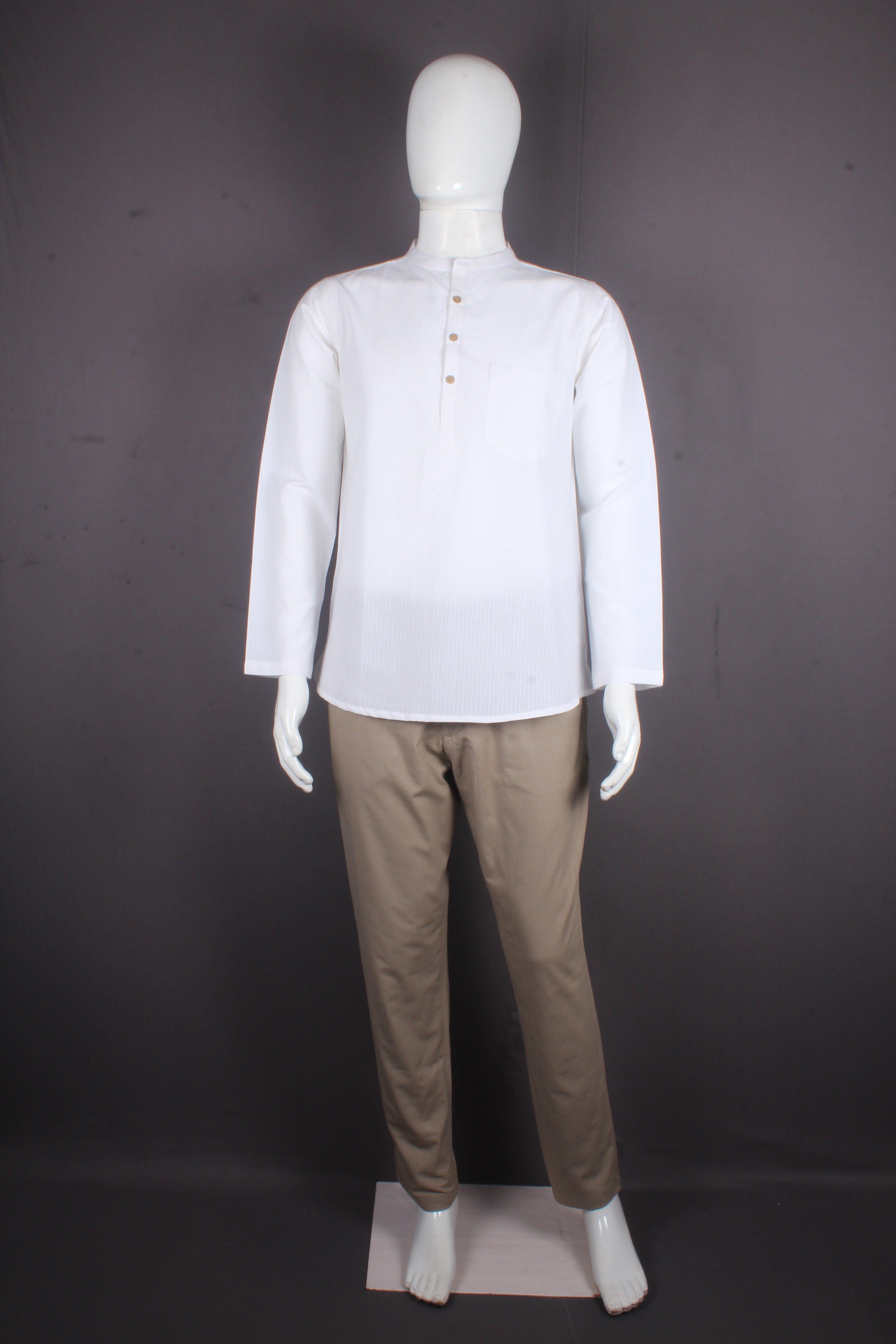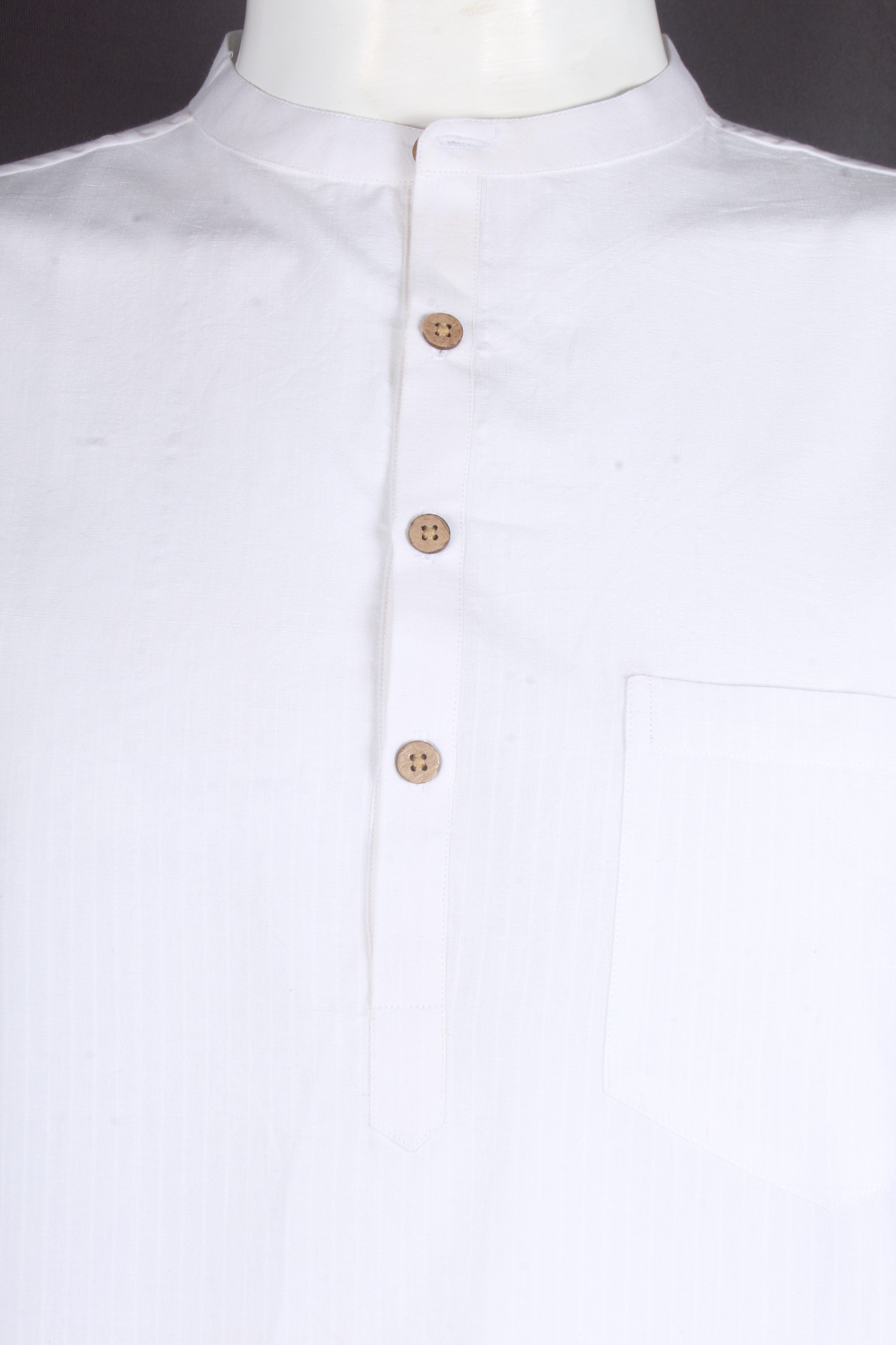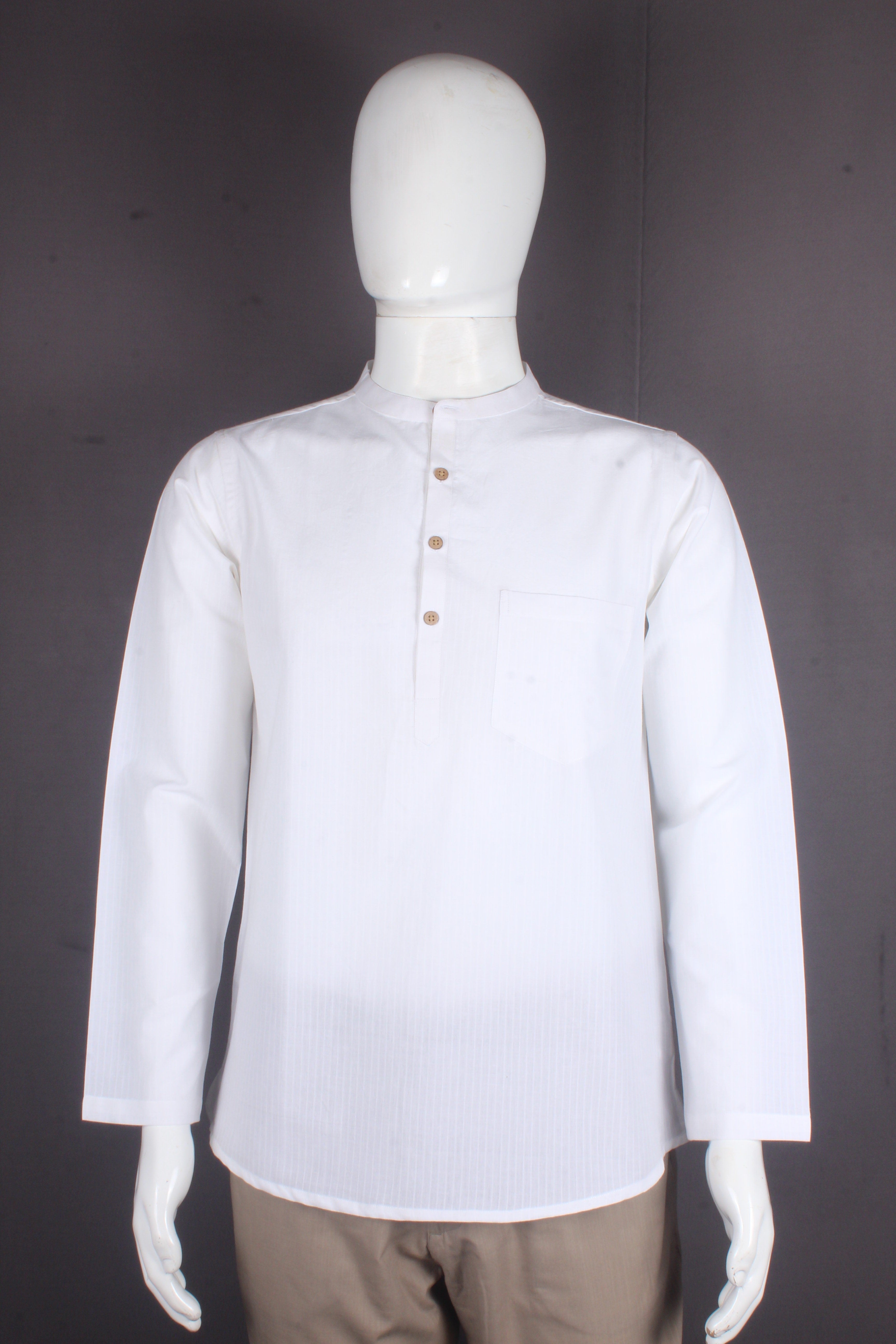 This classic men's short kurta is the perfect addition to your wardrobe. Crafted from premium cotton, it offers exceptional comfort and breathability, making it ideal for all seasons. The simple, yet elegant design with full sleeves ensures a timeless appeal.