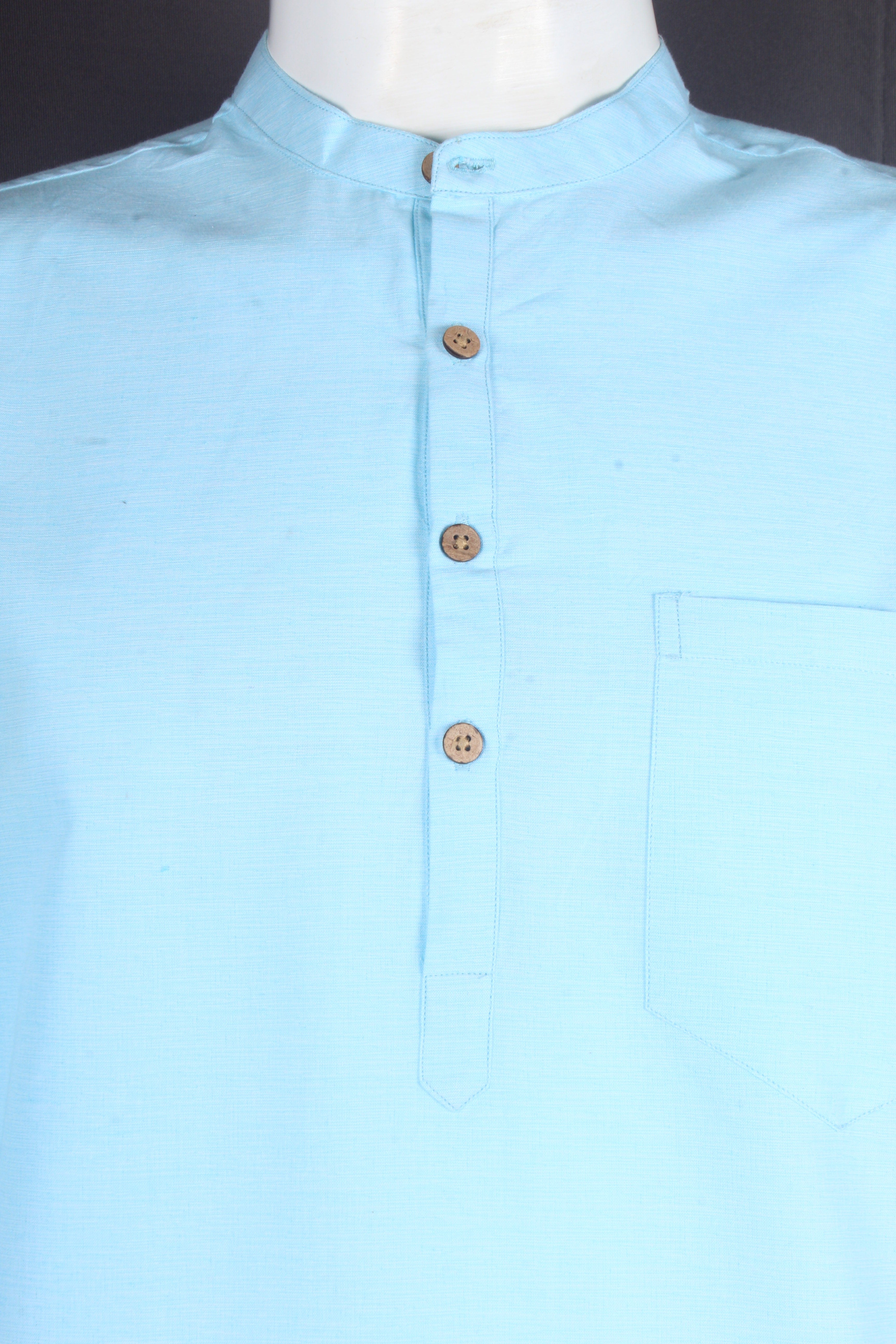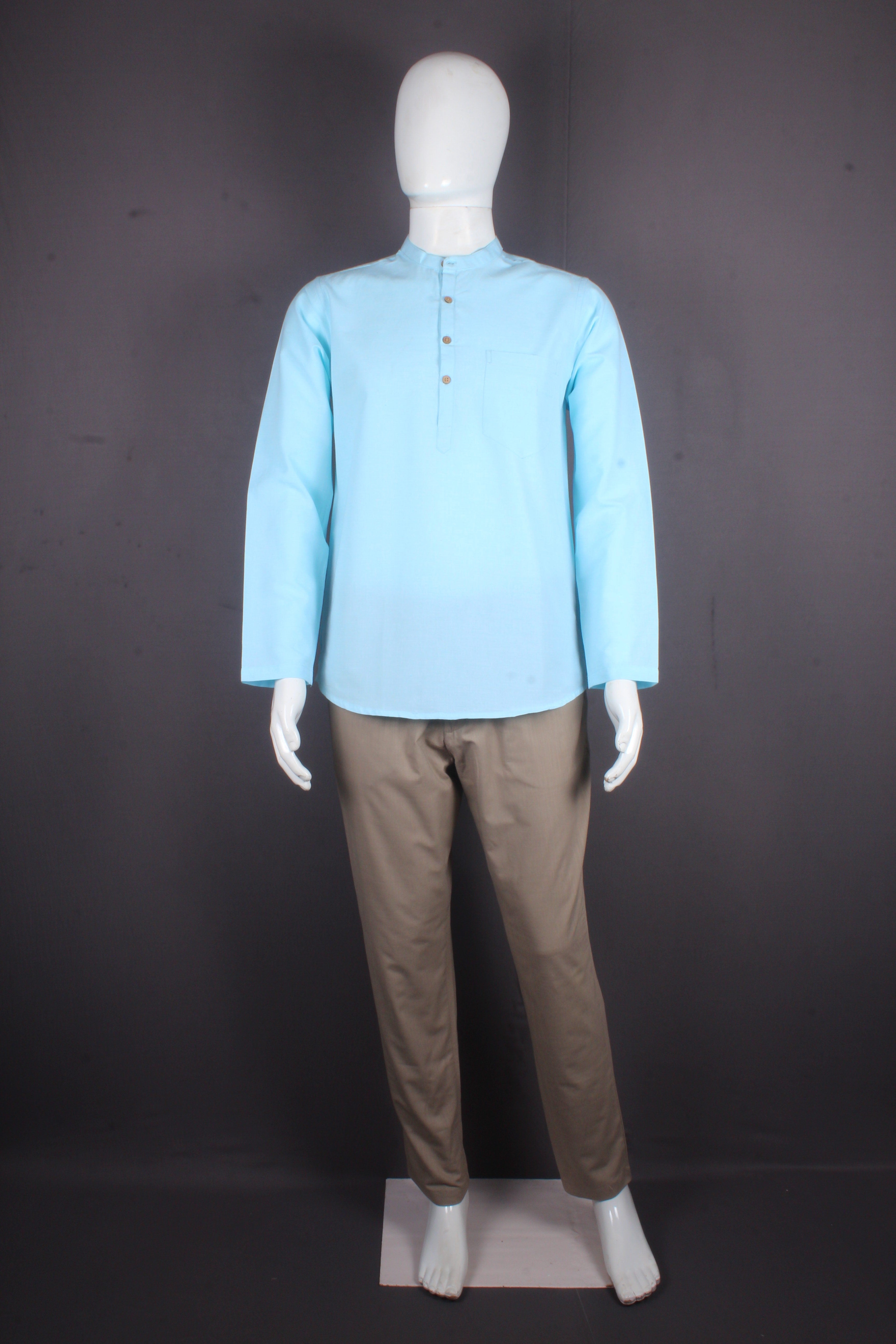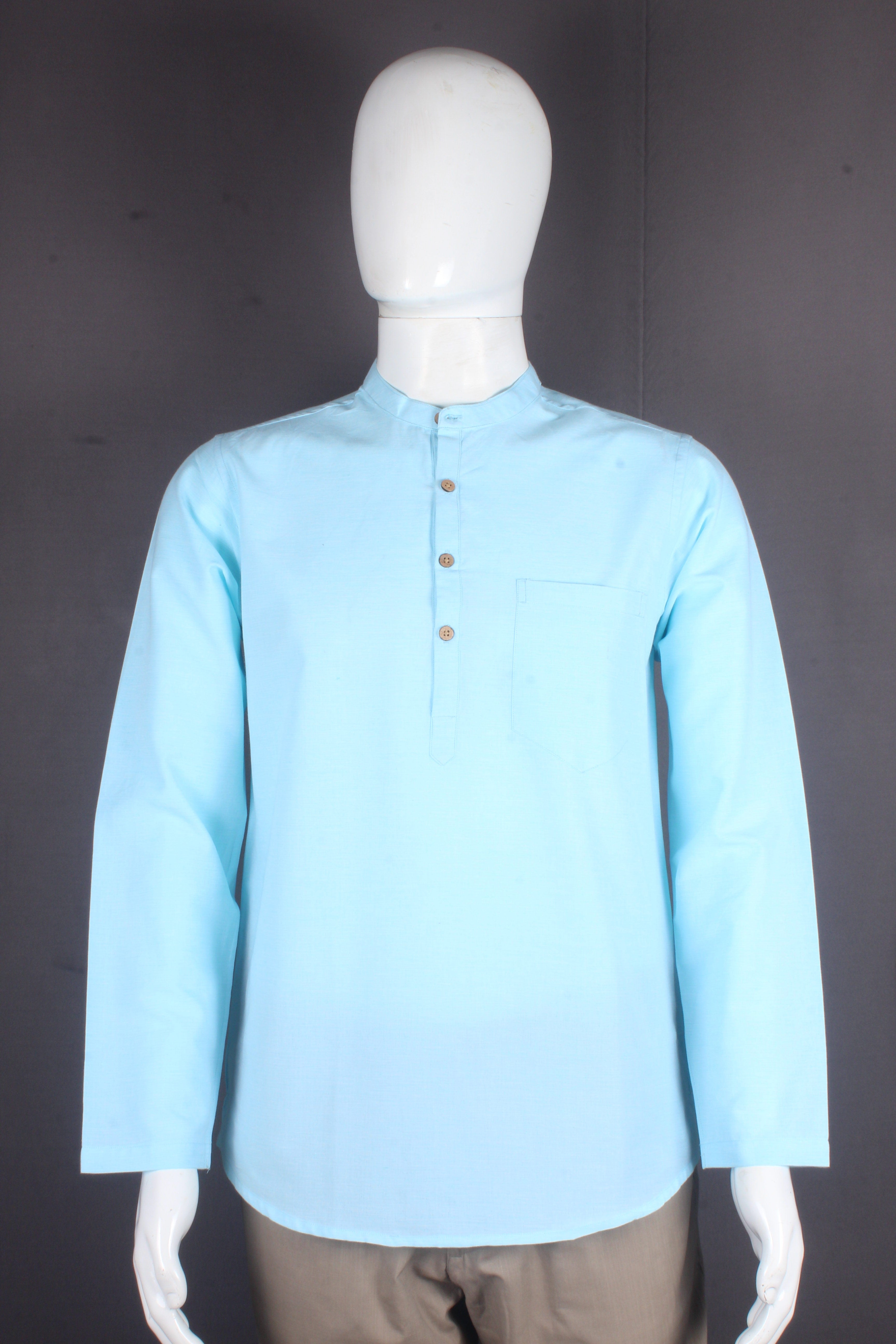 This classic men's short kurta is the perfect addition to your wardrobe. Crafted from premium cotton, it offers exceptional comfort and breathability, making it ideal for all seasons. The simple, yet elegant design with full sleeves ensures a timeless appeal.