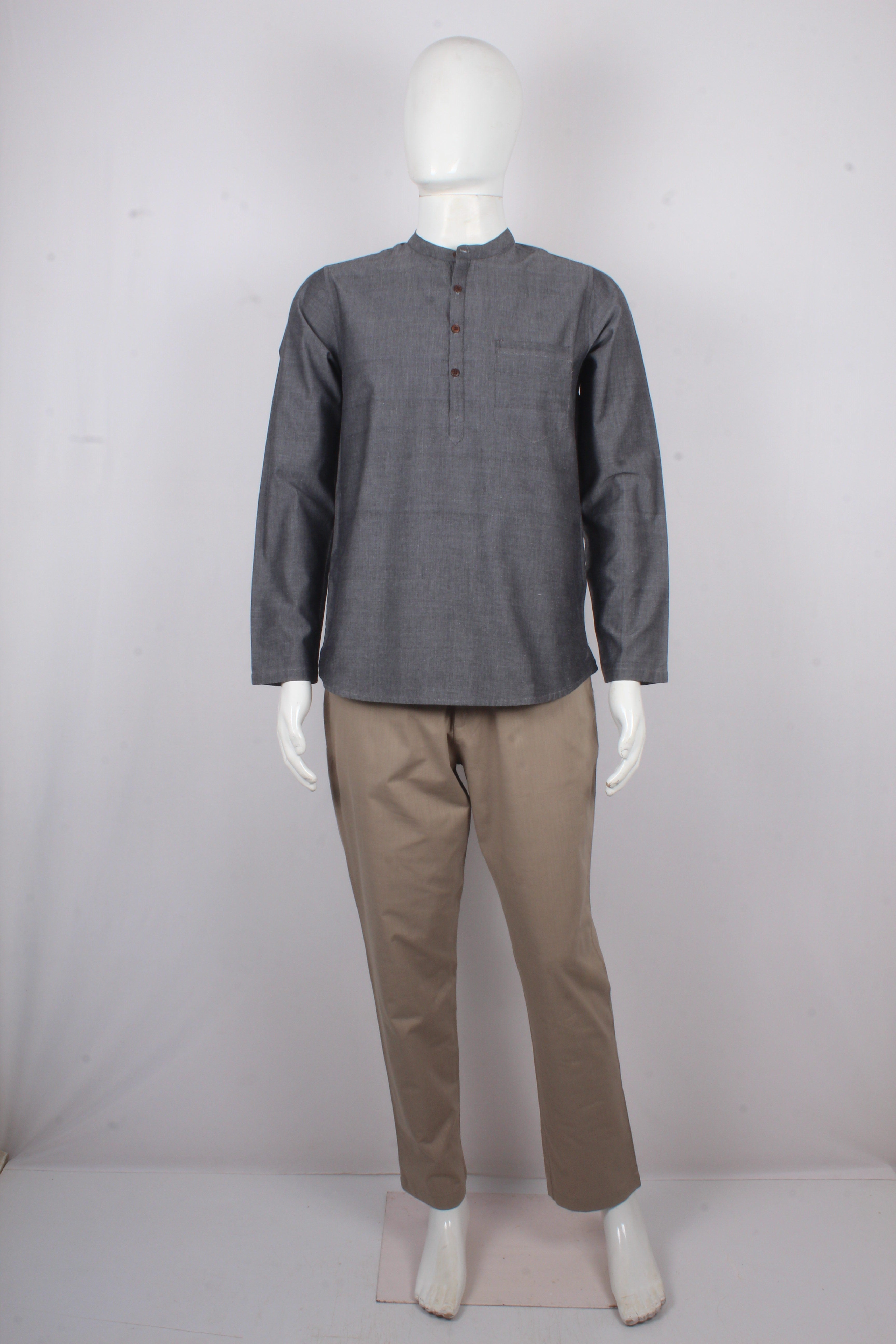 Beautiful Sleti Gray Full Sleeves Short Kurta.
