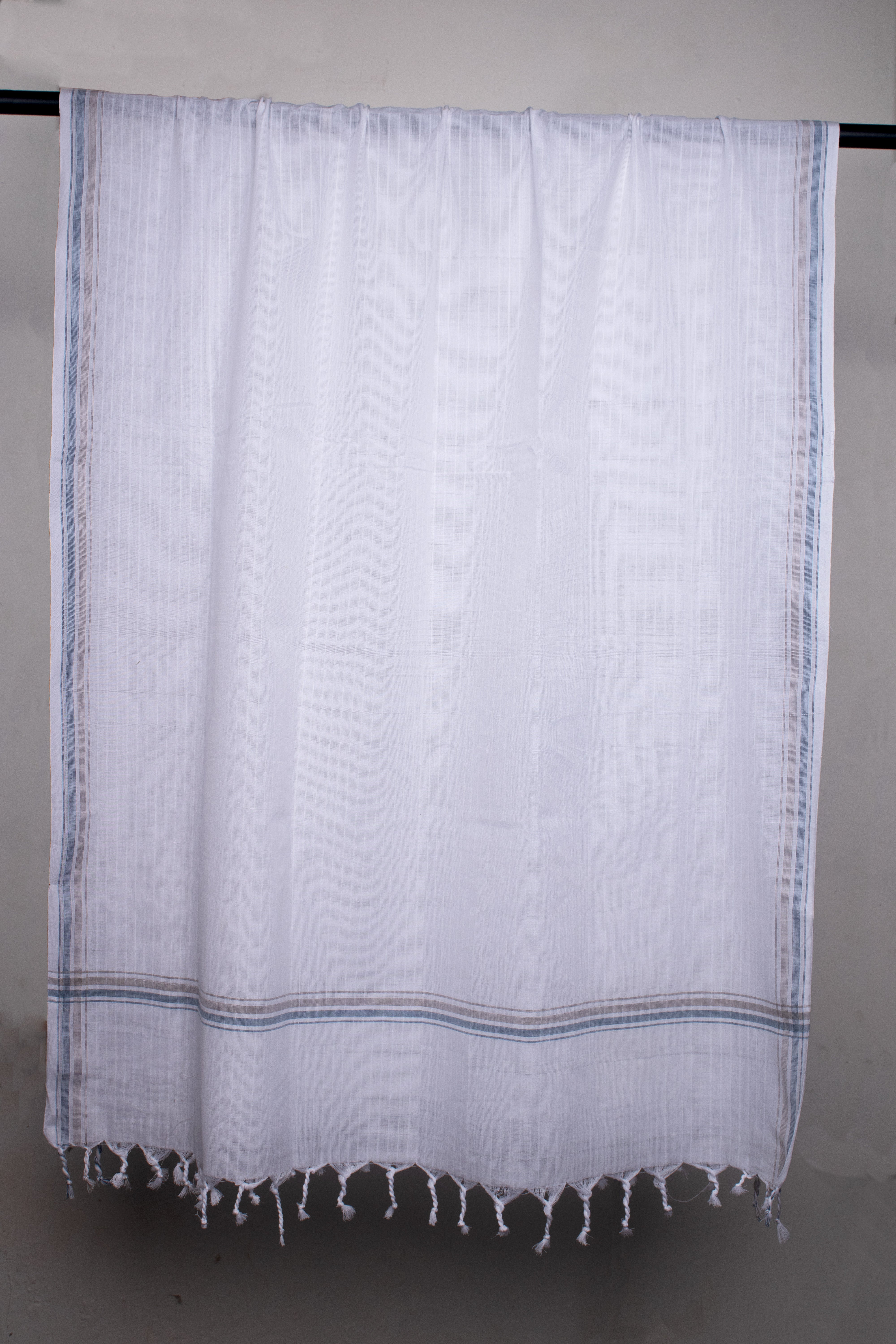 Indulge in the luxury of our handwoven Gamcha bath towel. Crafted from premium quality cotton, this towel offers exceptional softness, absorbency, and durability. The elegant striped border adds a touch of sophistication, while the fringed ends create a bohemian vibe.