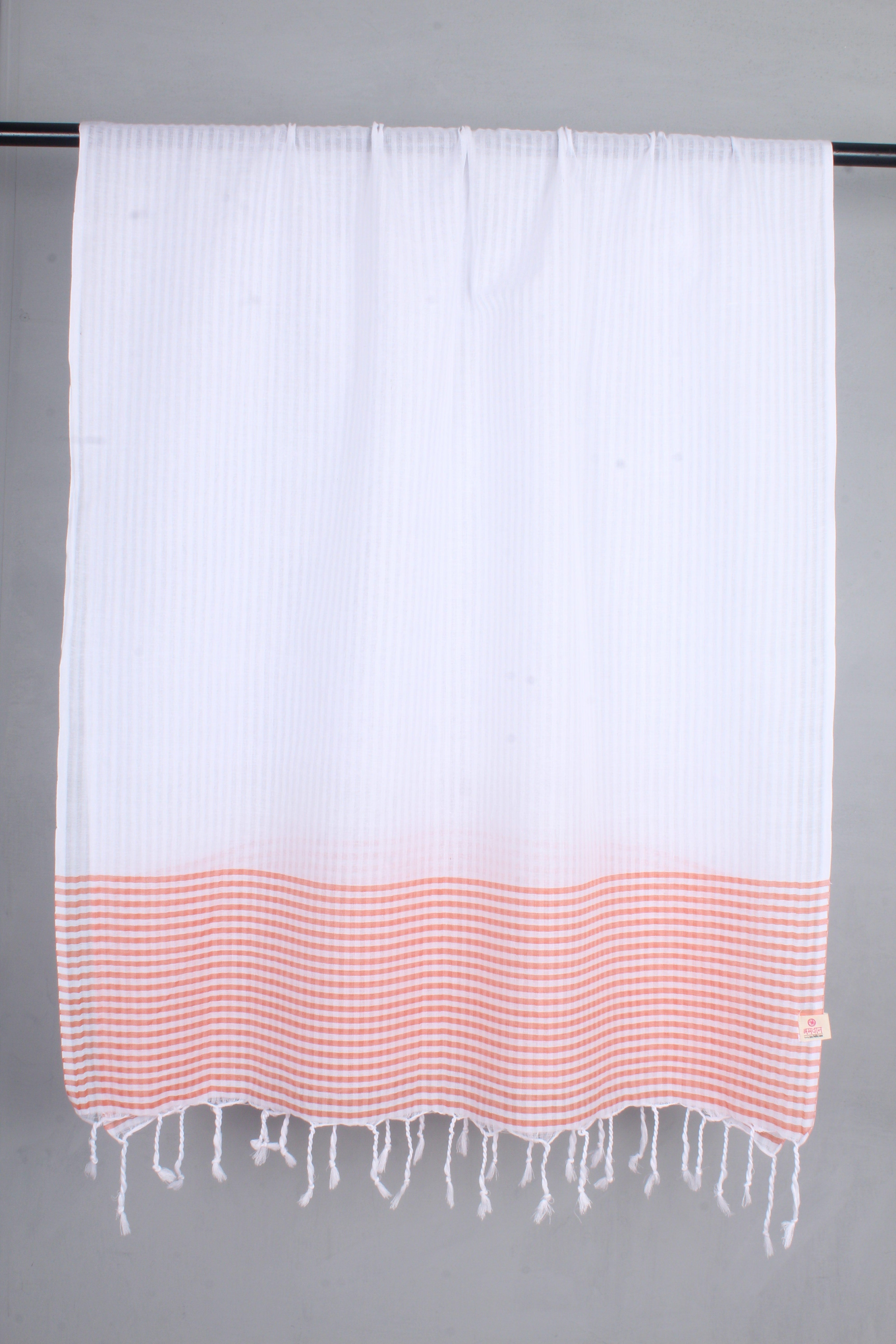 Indulge in the luxury of our handwoven Gamcha bath towel. Crafted from premium quality cotton, this towel offers exceptional softness, absorbency, and durability. The elegant striped border adds a touch of sophistication, while the fringed ends create a bohemian vibe.