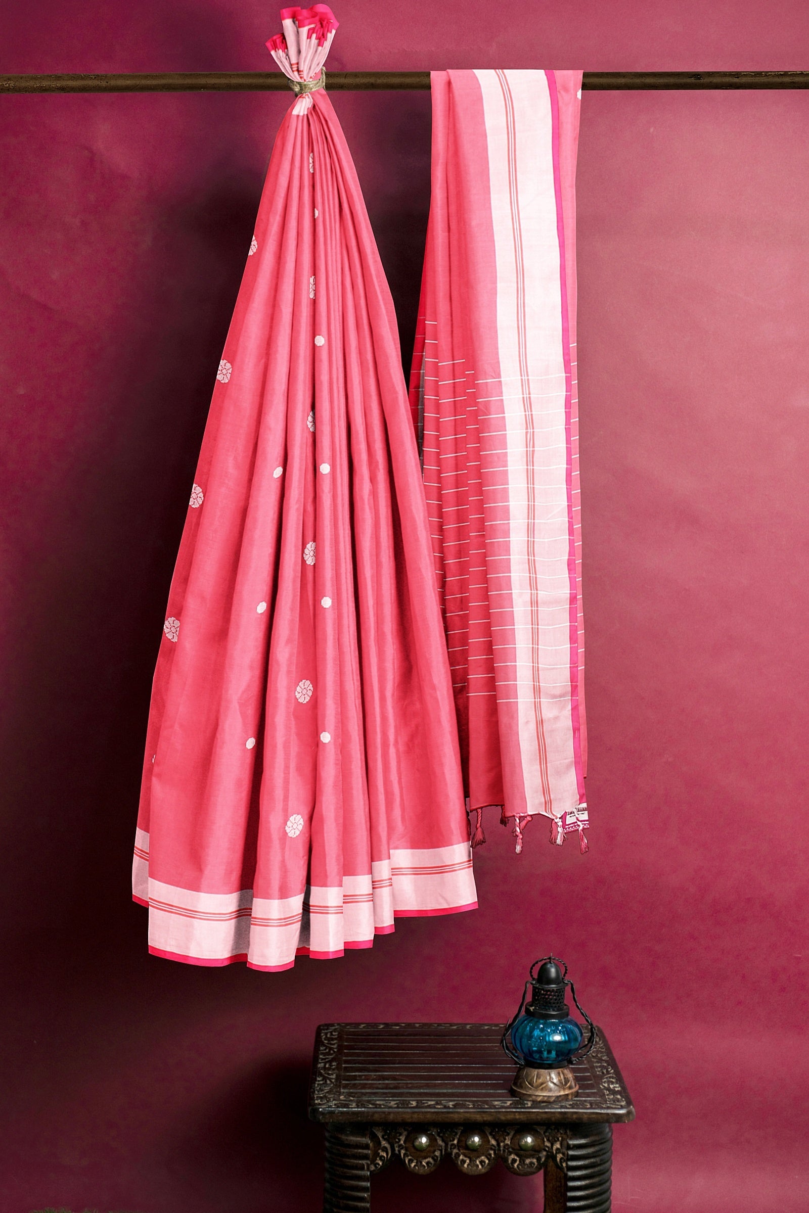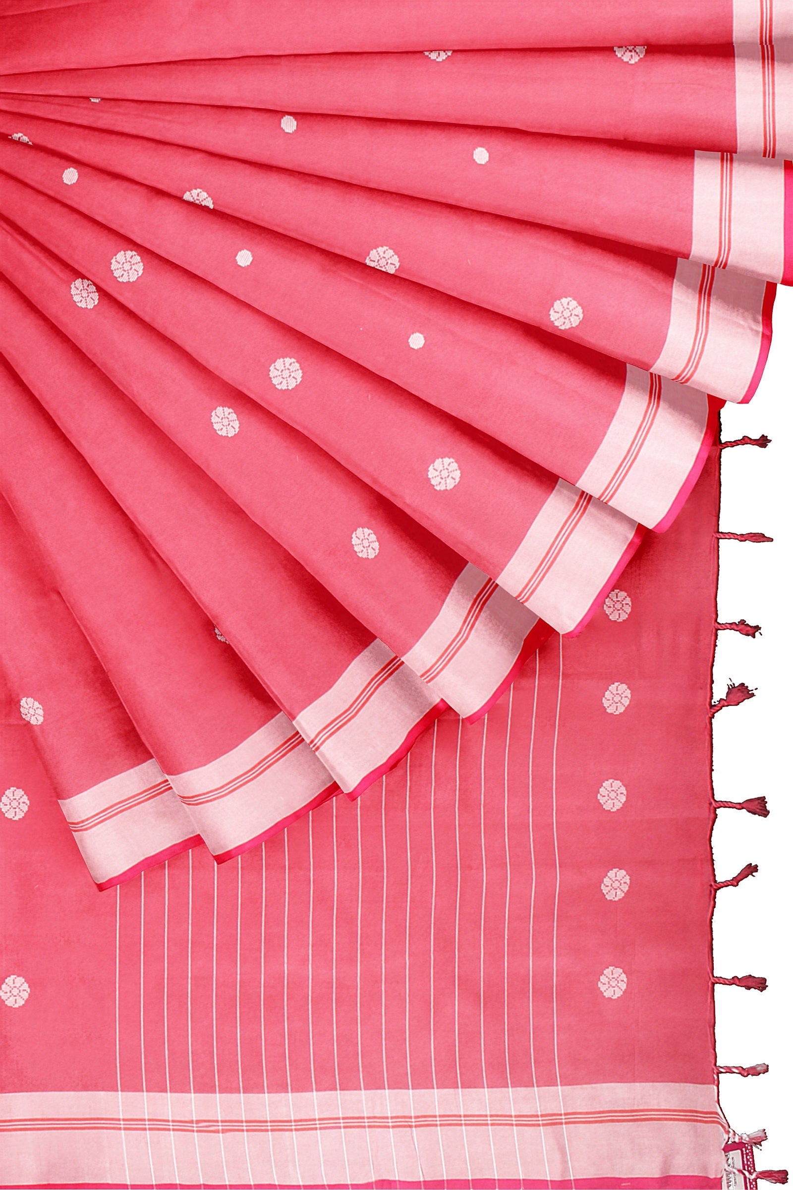 Red Saree with Magenta and White Border and Butis