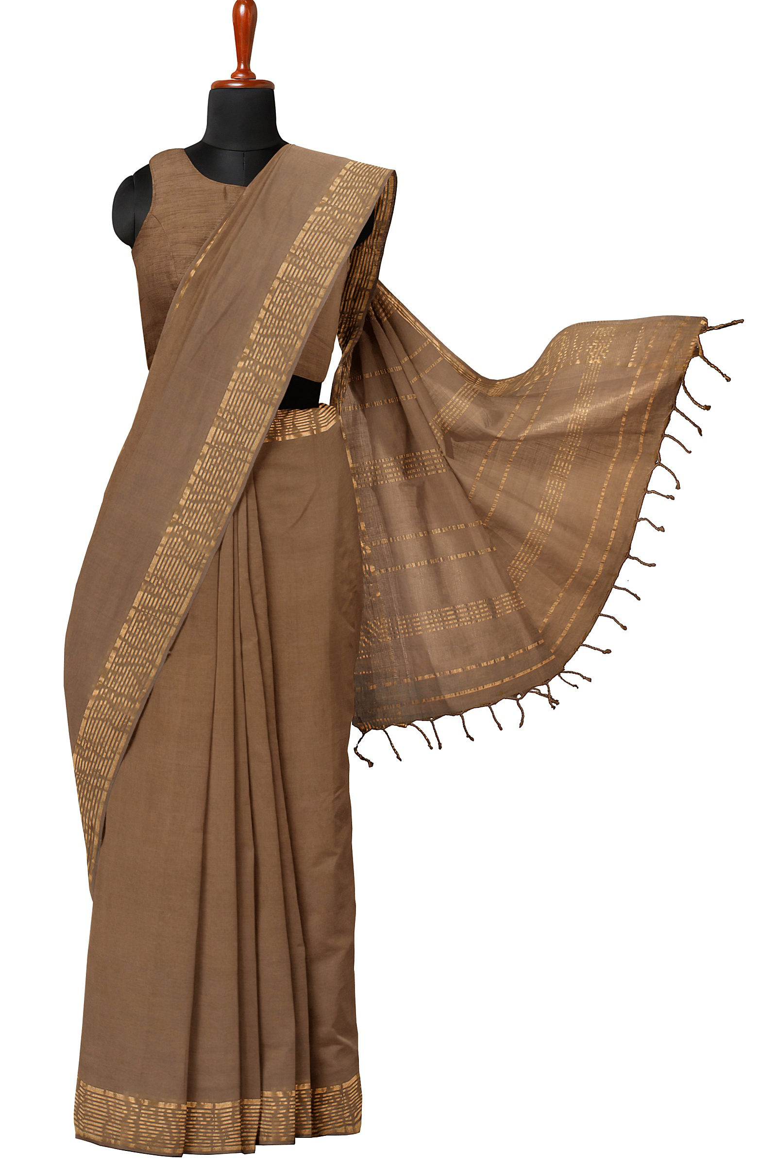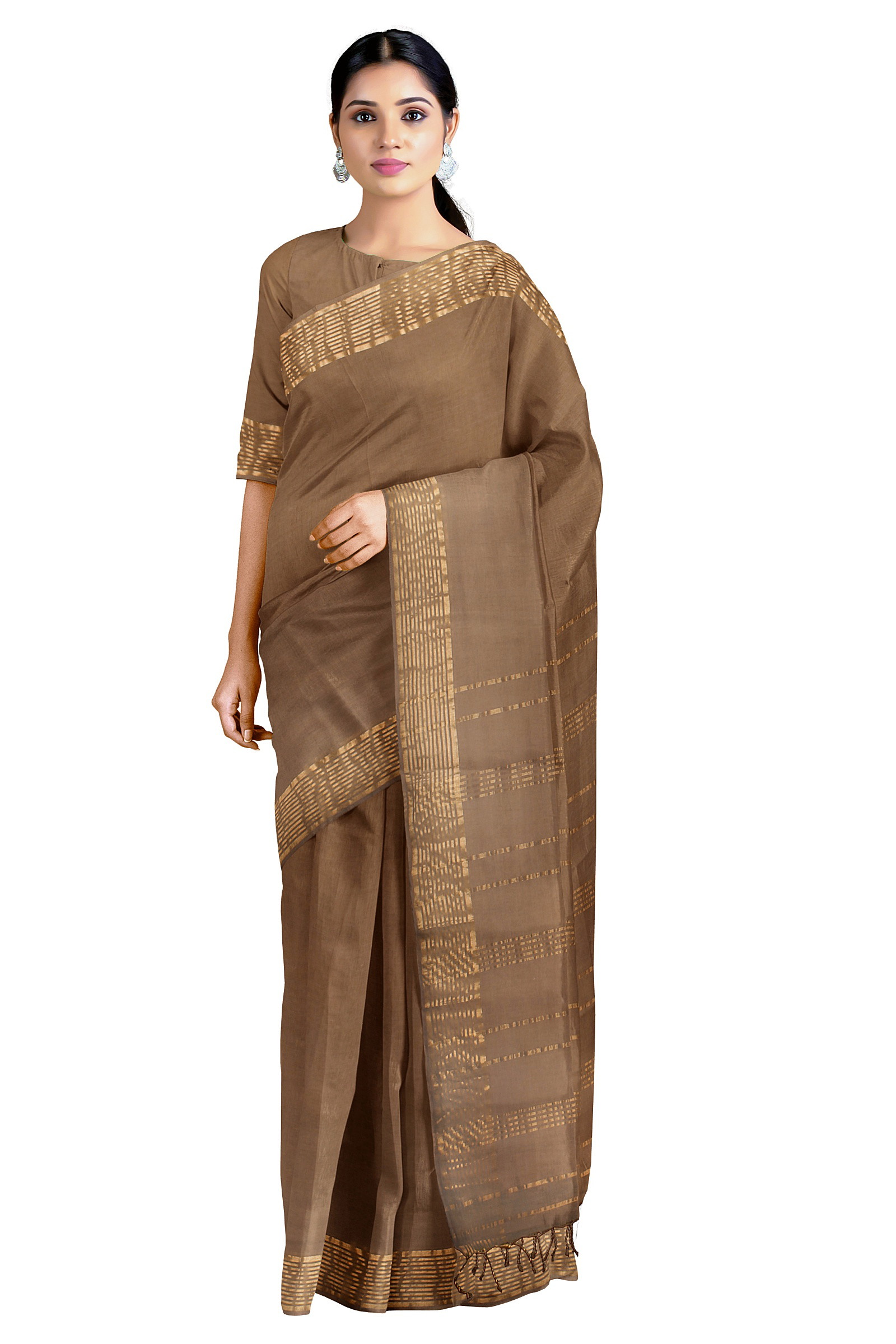 Brown Saree with Golden Zari Border