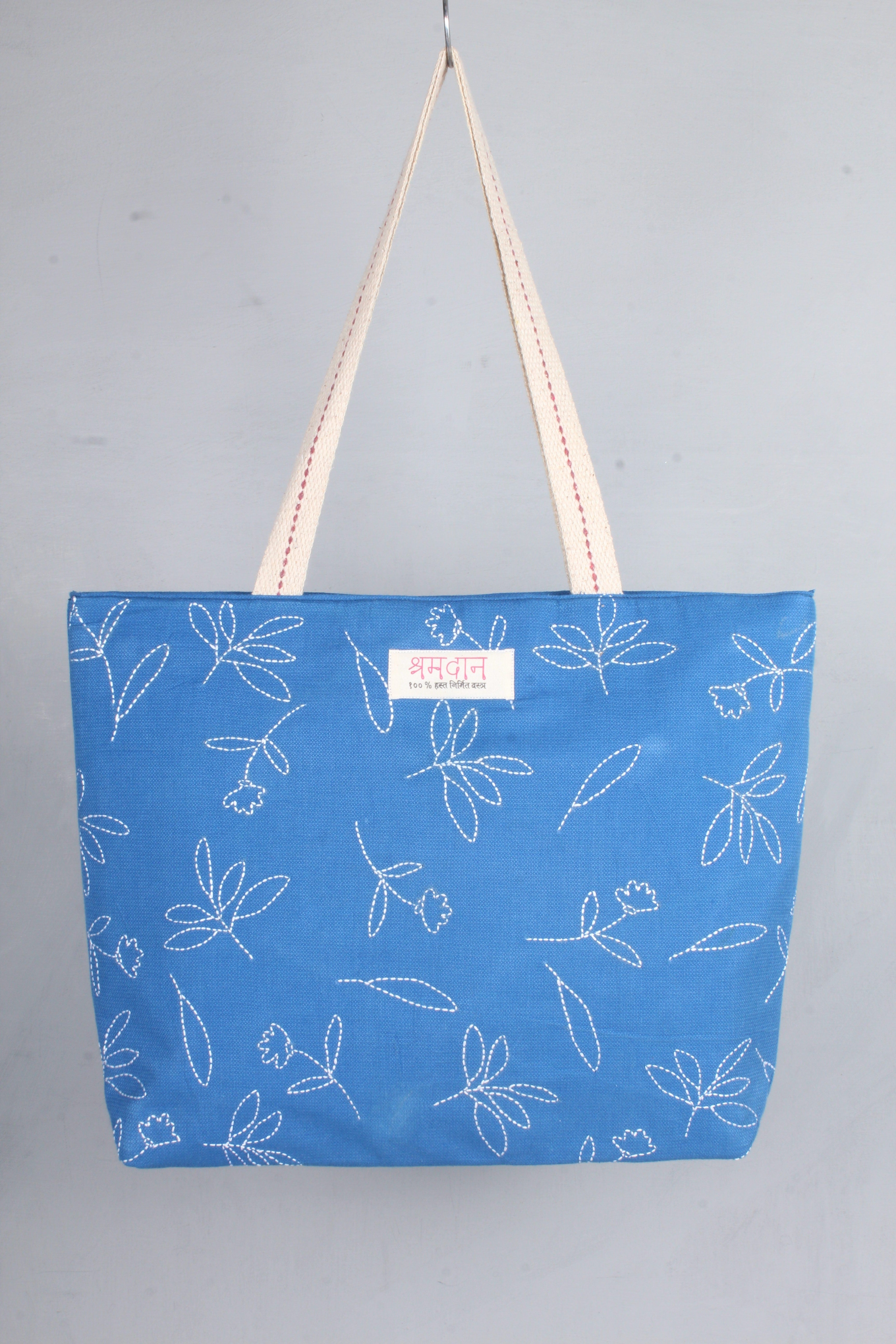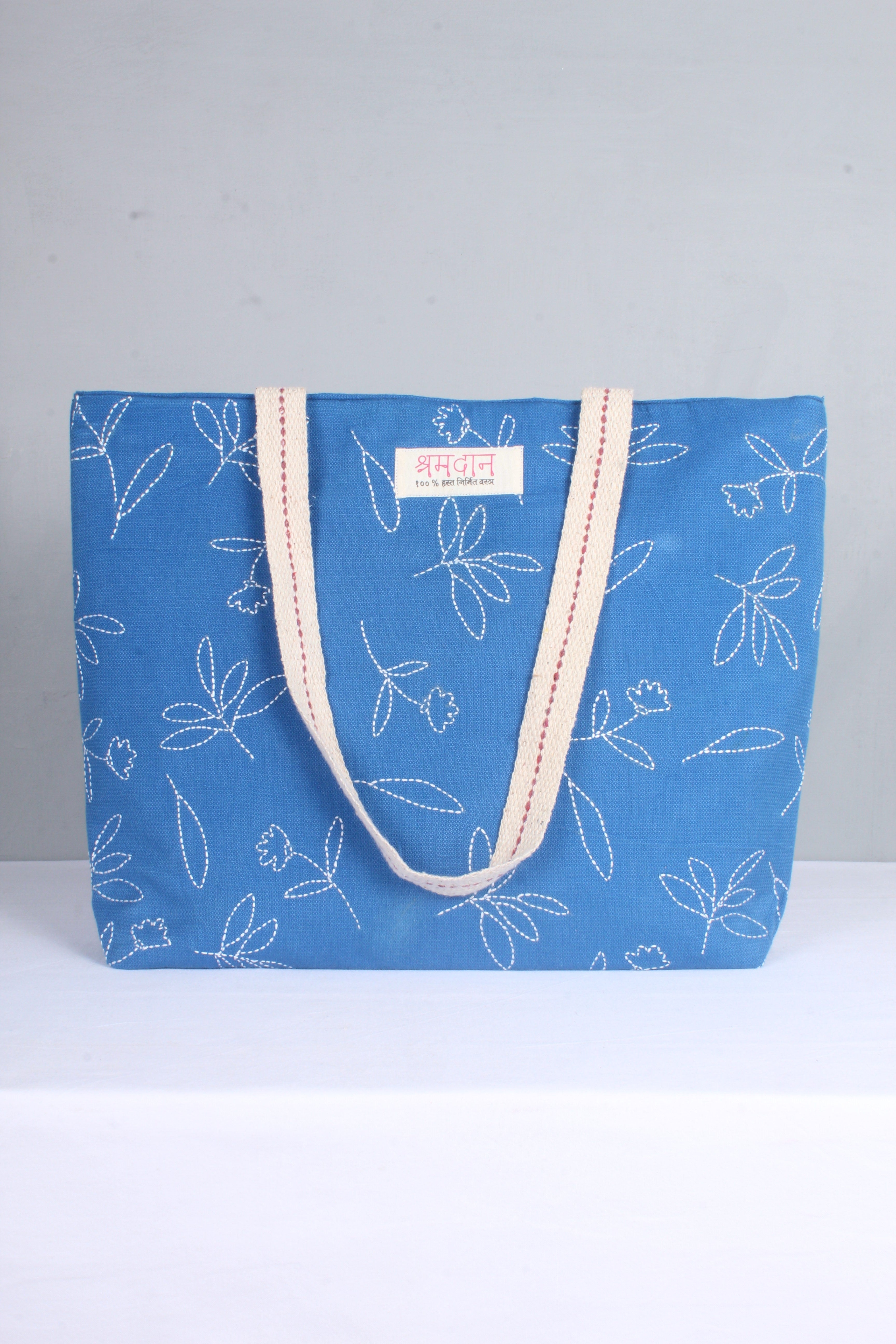 Sky Blue Hand Embroidery Tote Bag