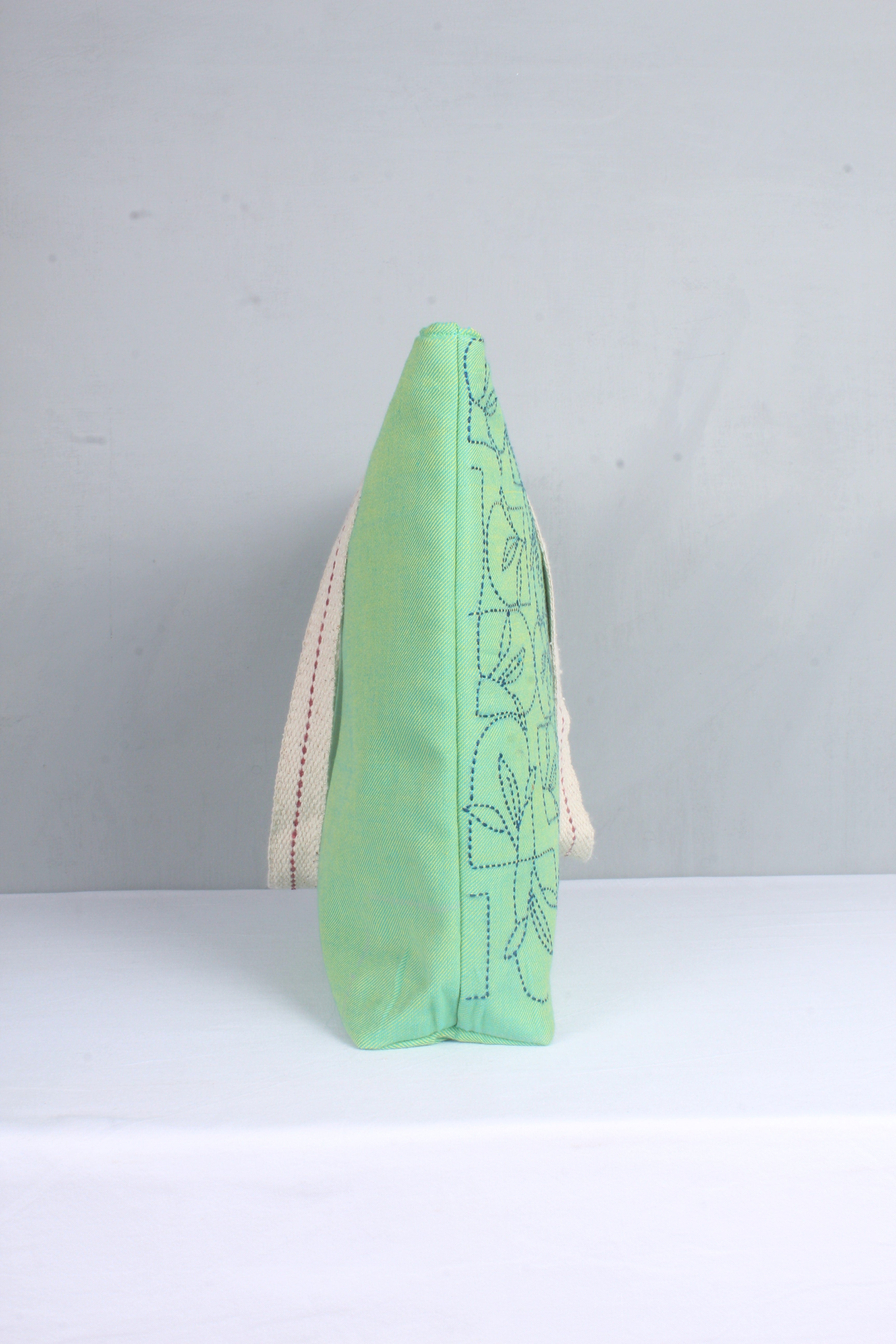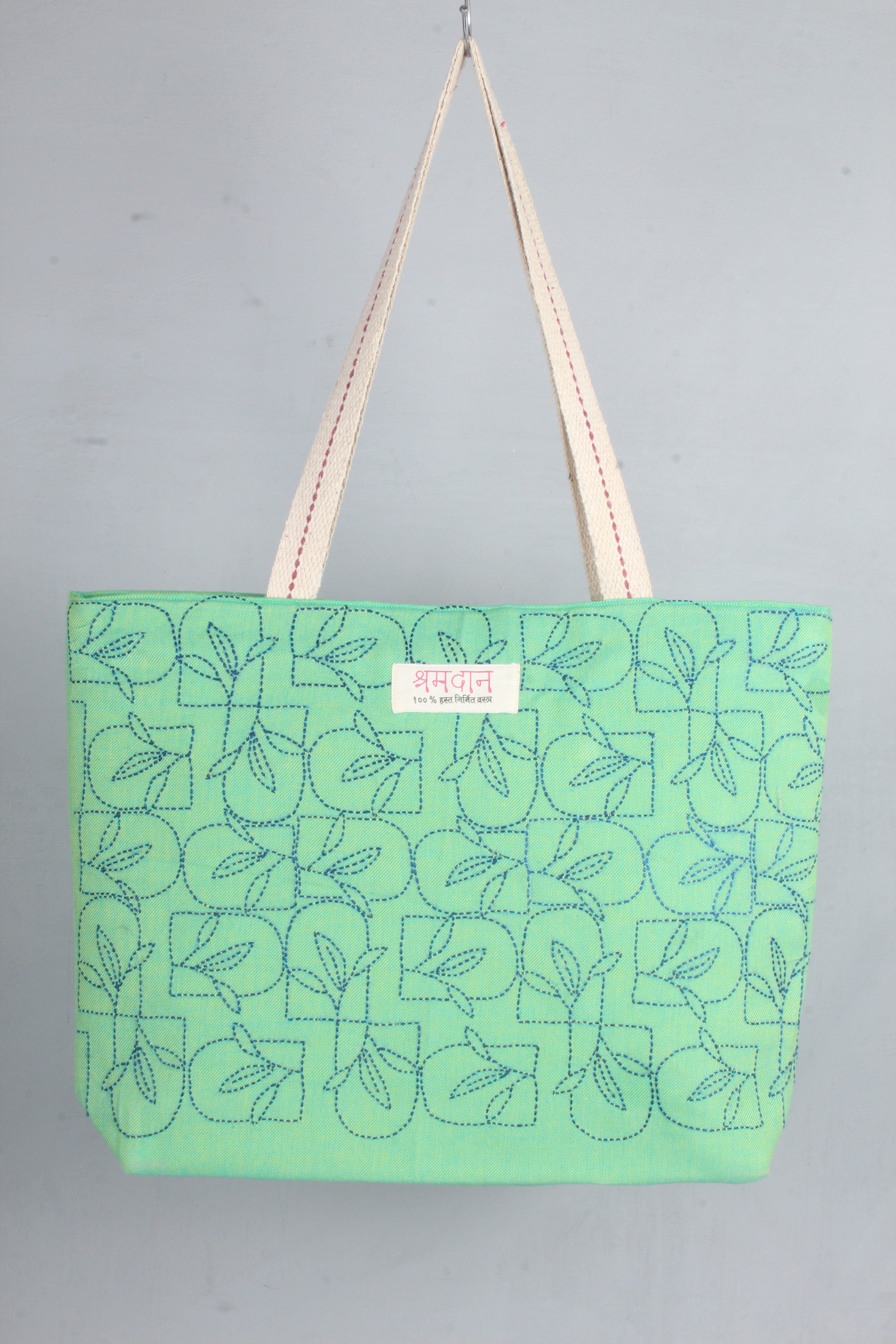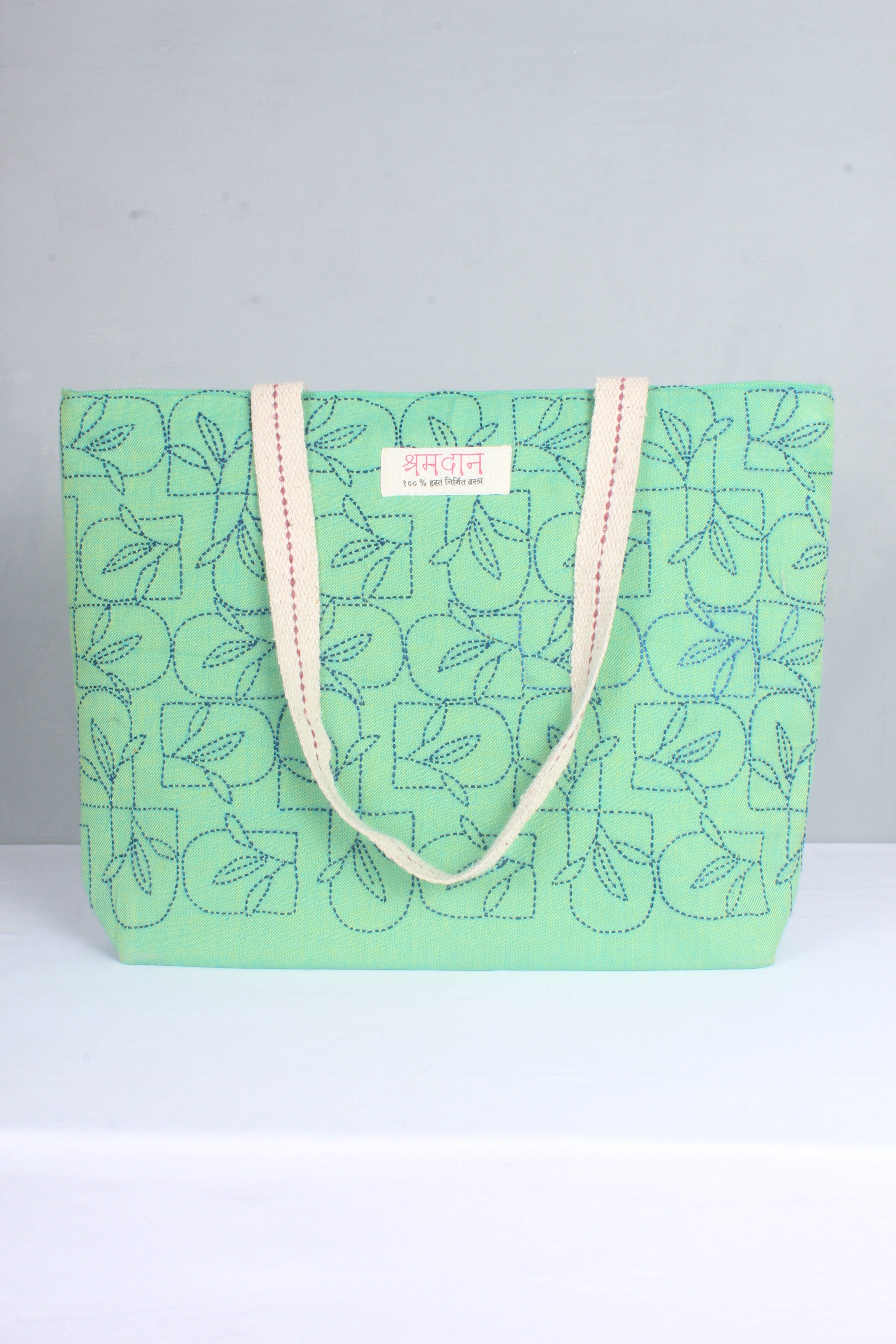 Sea Green Hand Embroidery Tote Bag