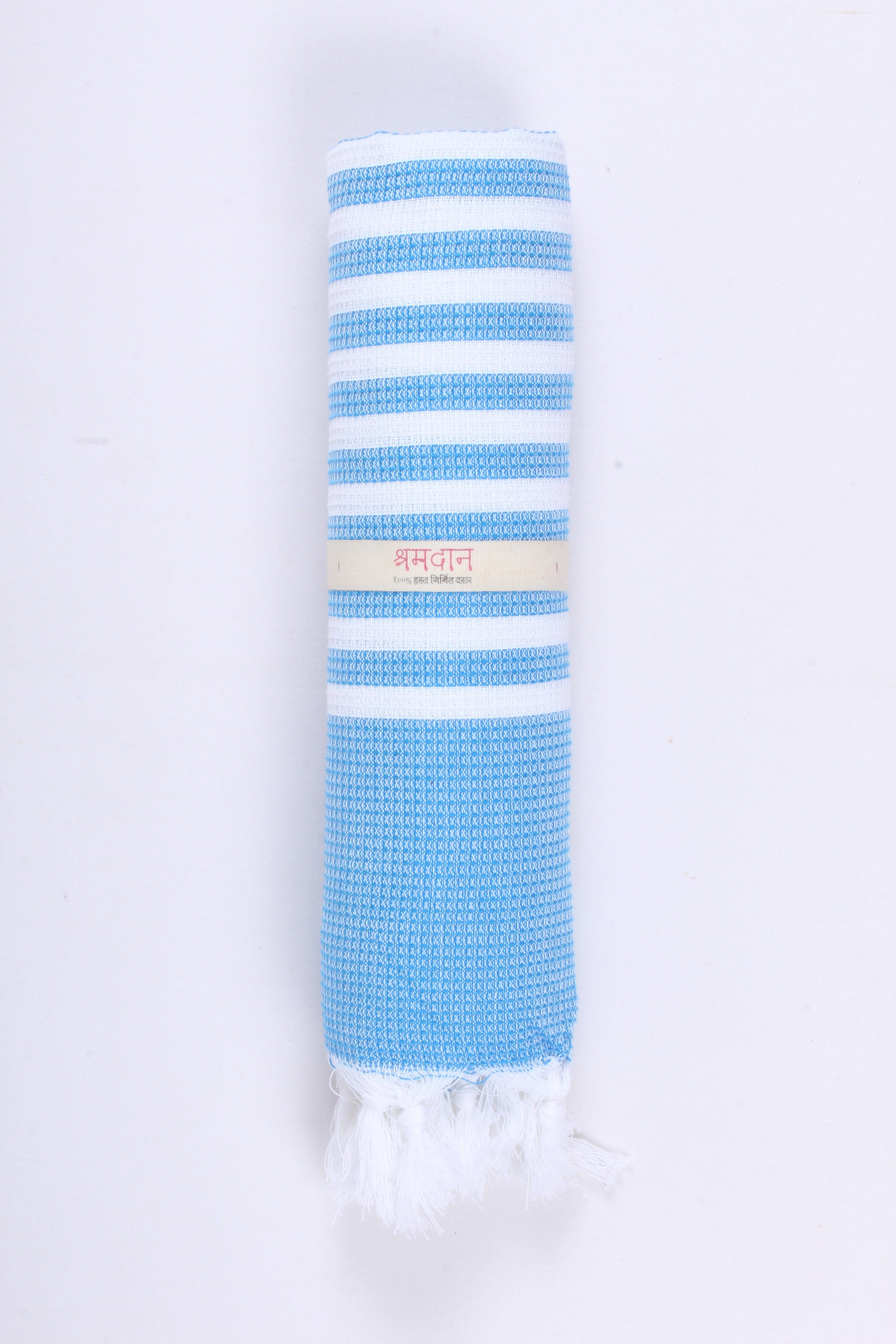 This towel isn't just a piece of fabric; it's a symbol of the spirit of Shramdaan and community effort. It hasn't been made by machines, but by hand. Every thread, every weave, tells a story of the hard work, dedication, and selfless service of the volunteers who invested their time and energy into creating it.