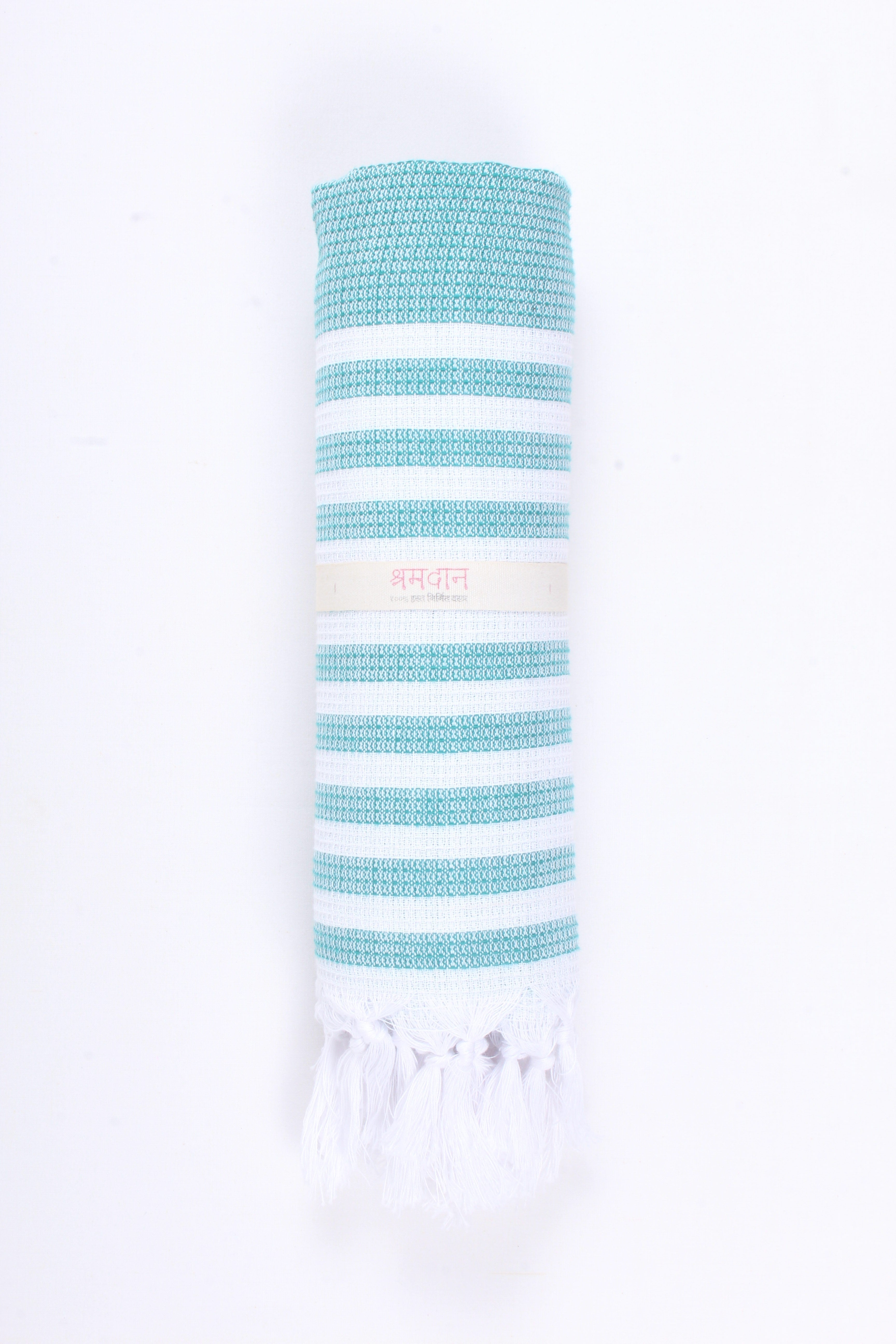 Pine Green Ultra Soft Bath Towel with White Stripes