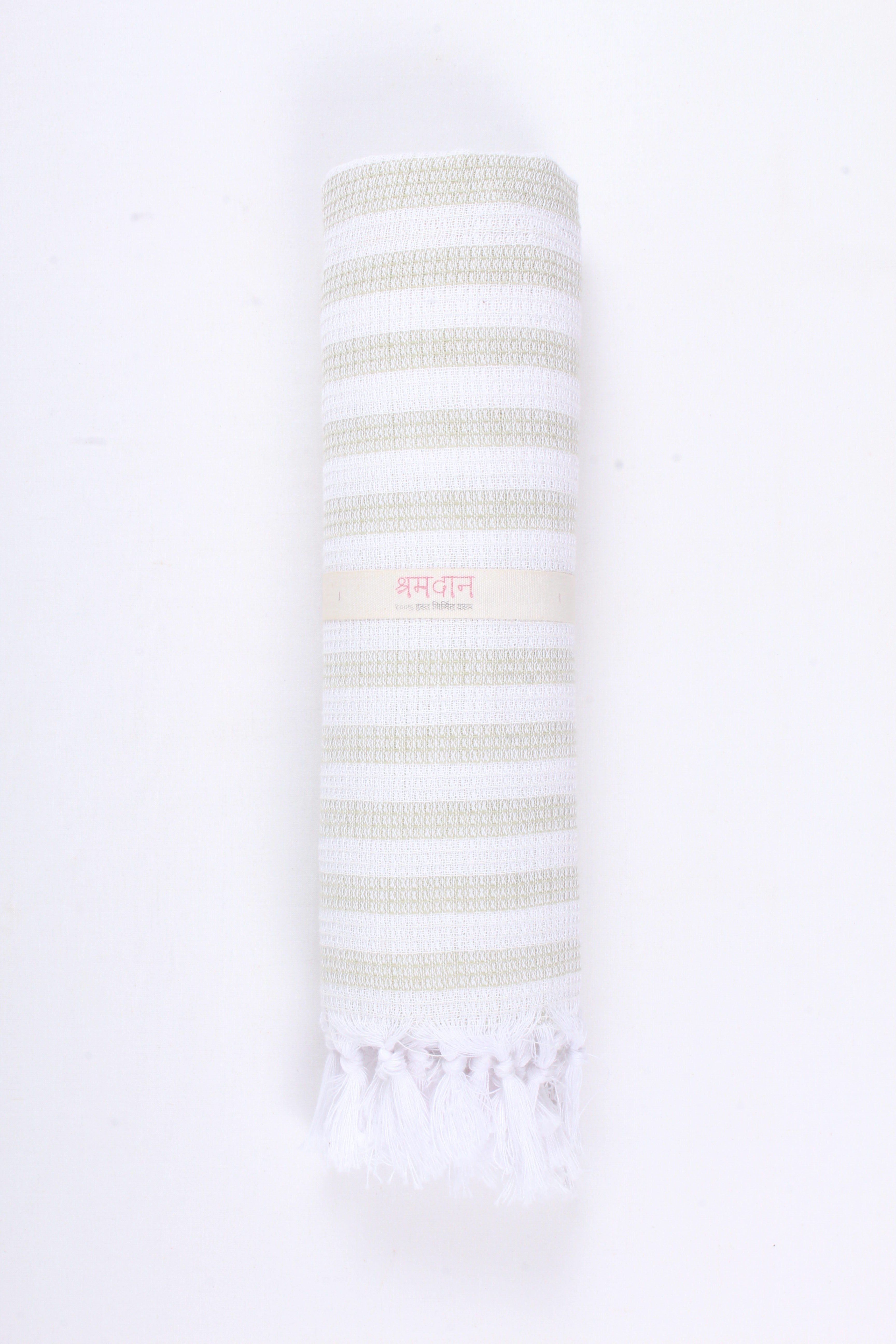 Moss Green Ultra Soft Bath Towel with White Stripes