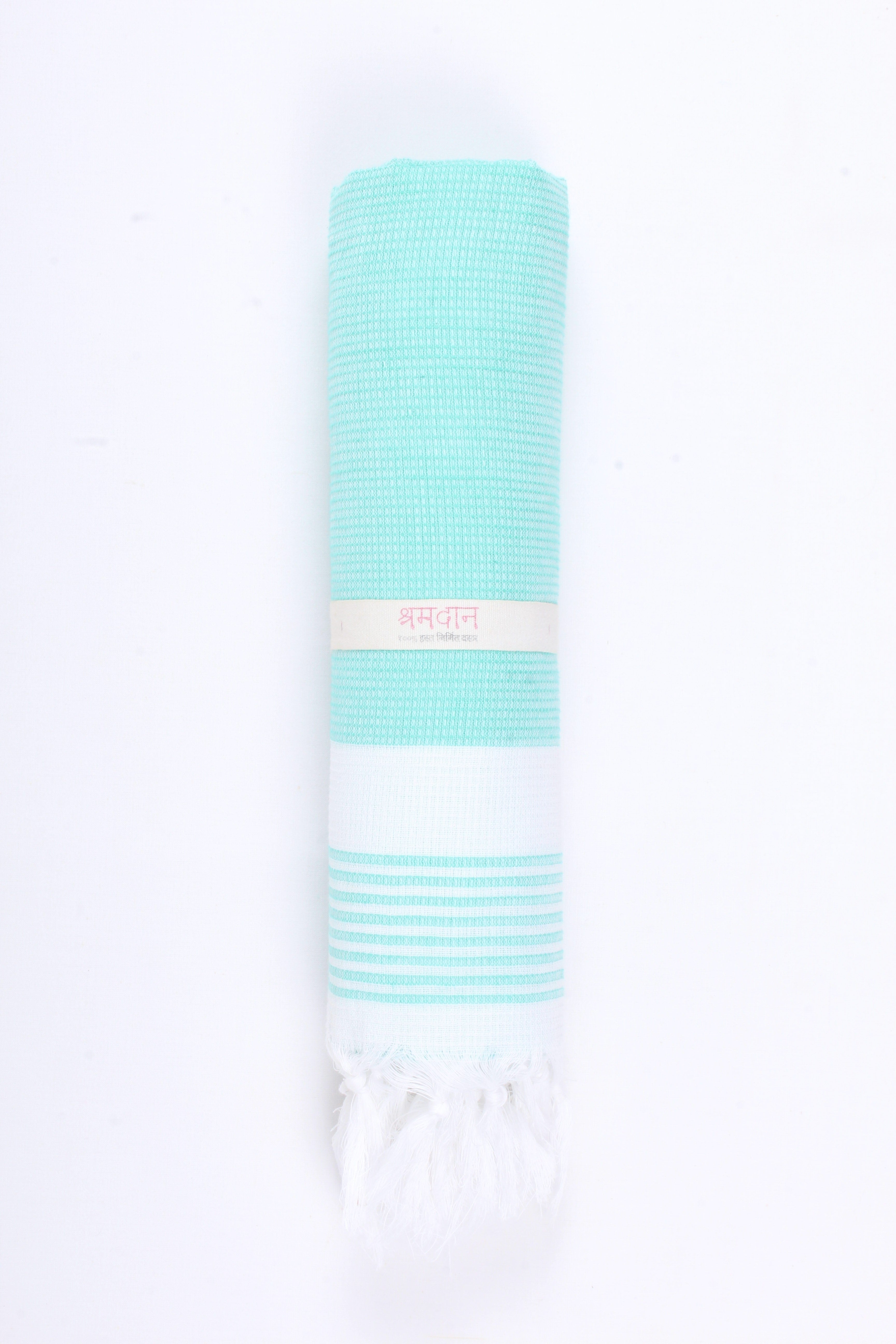 Sea Green Ultra Soft Bath Towel with White Stripes