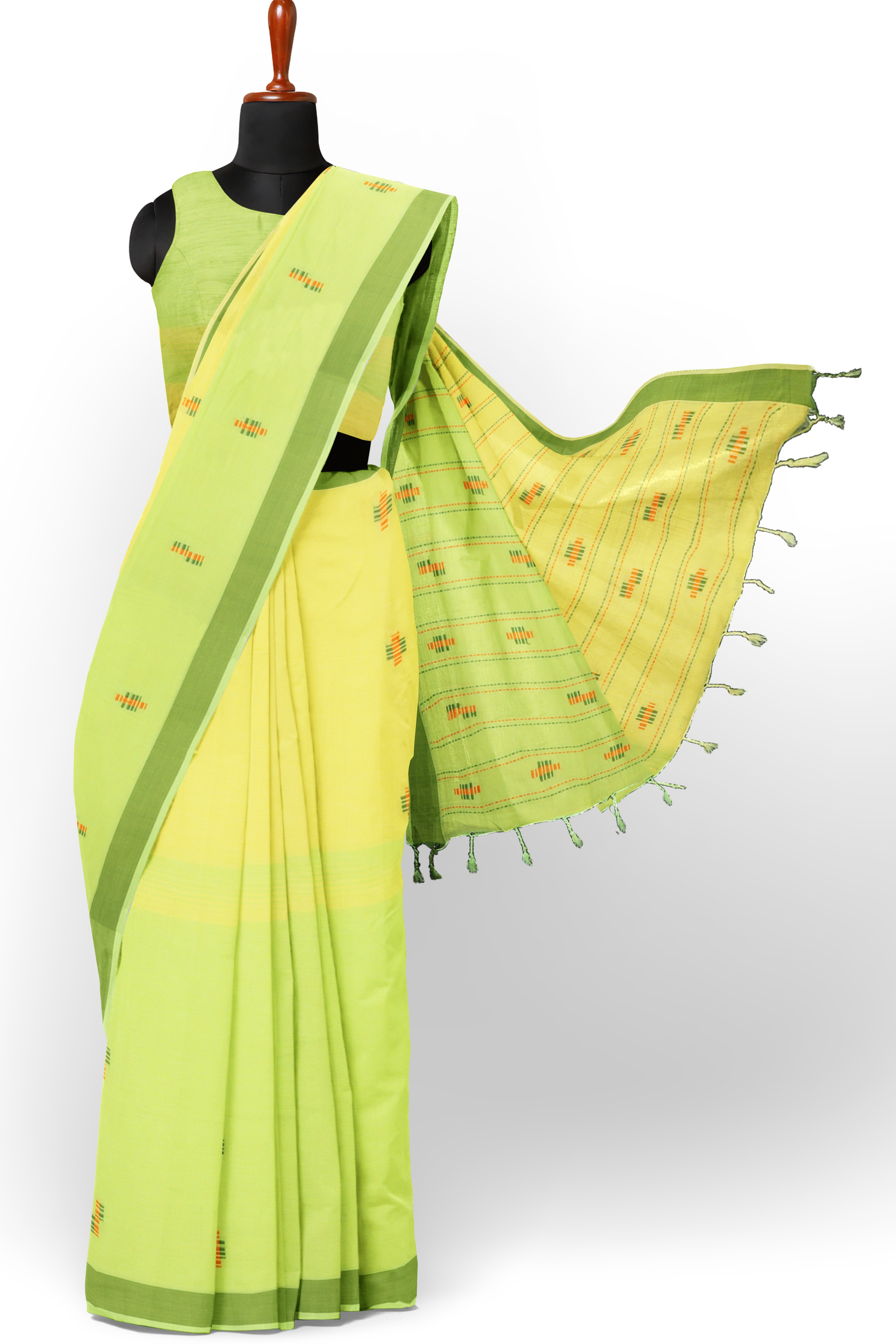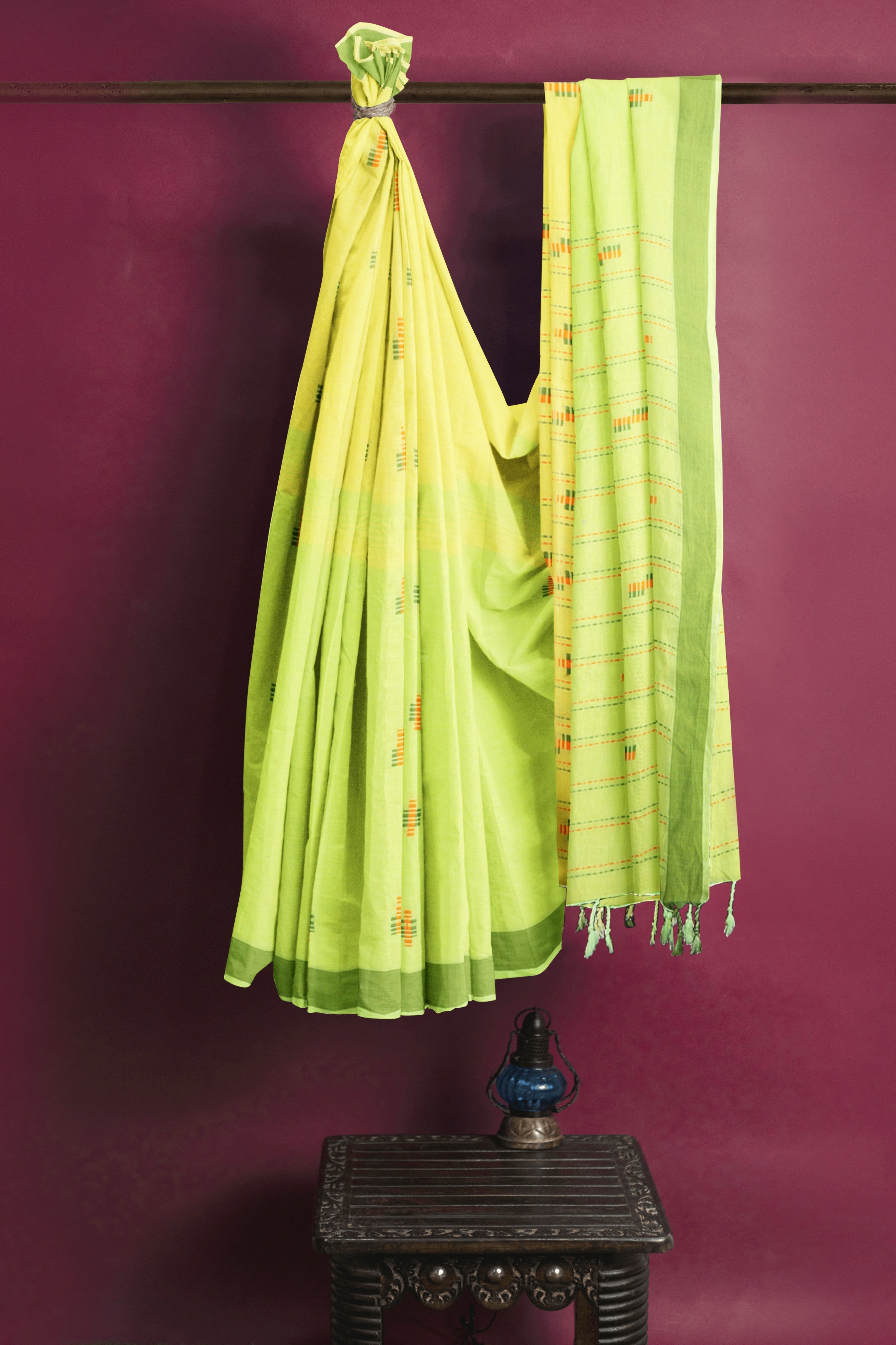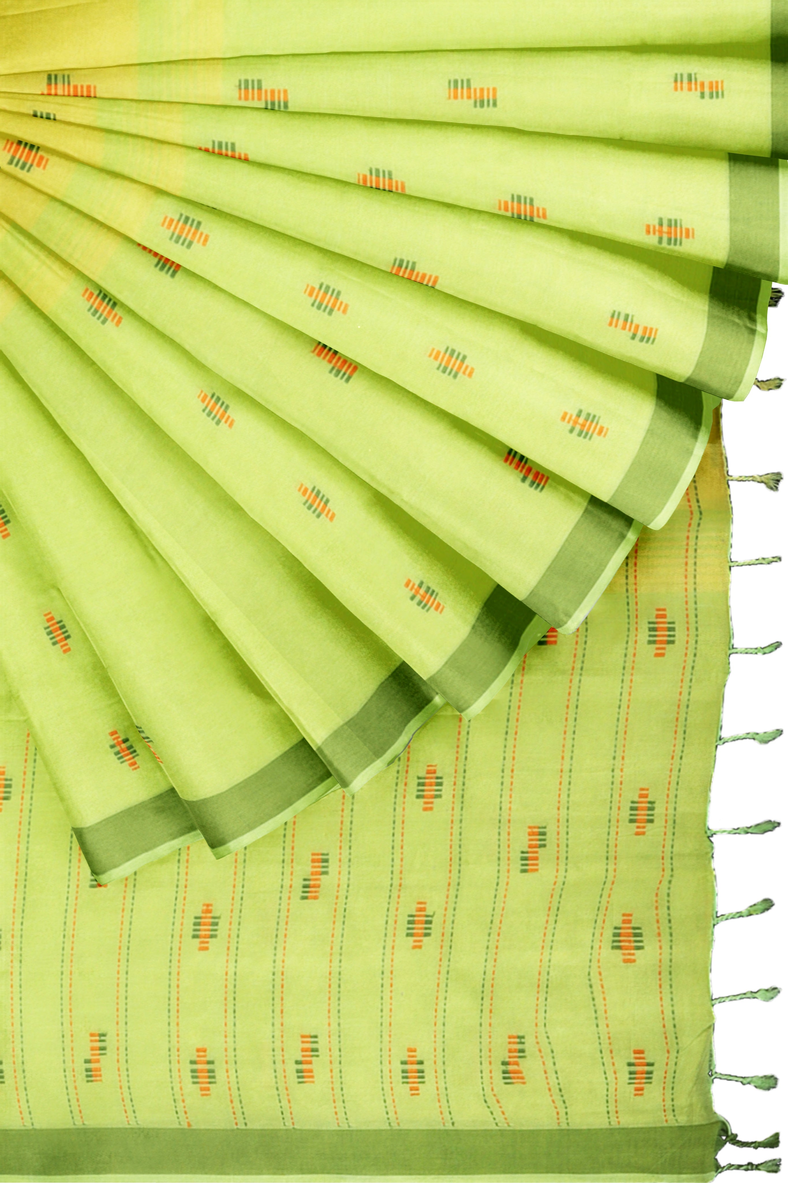 Lime Green and Yellow Saree with Butis and Green Border